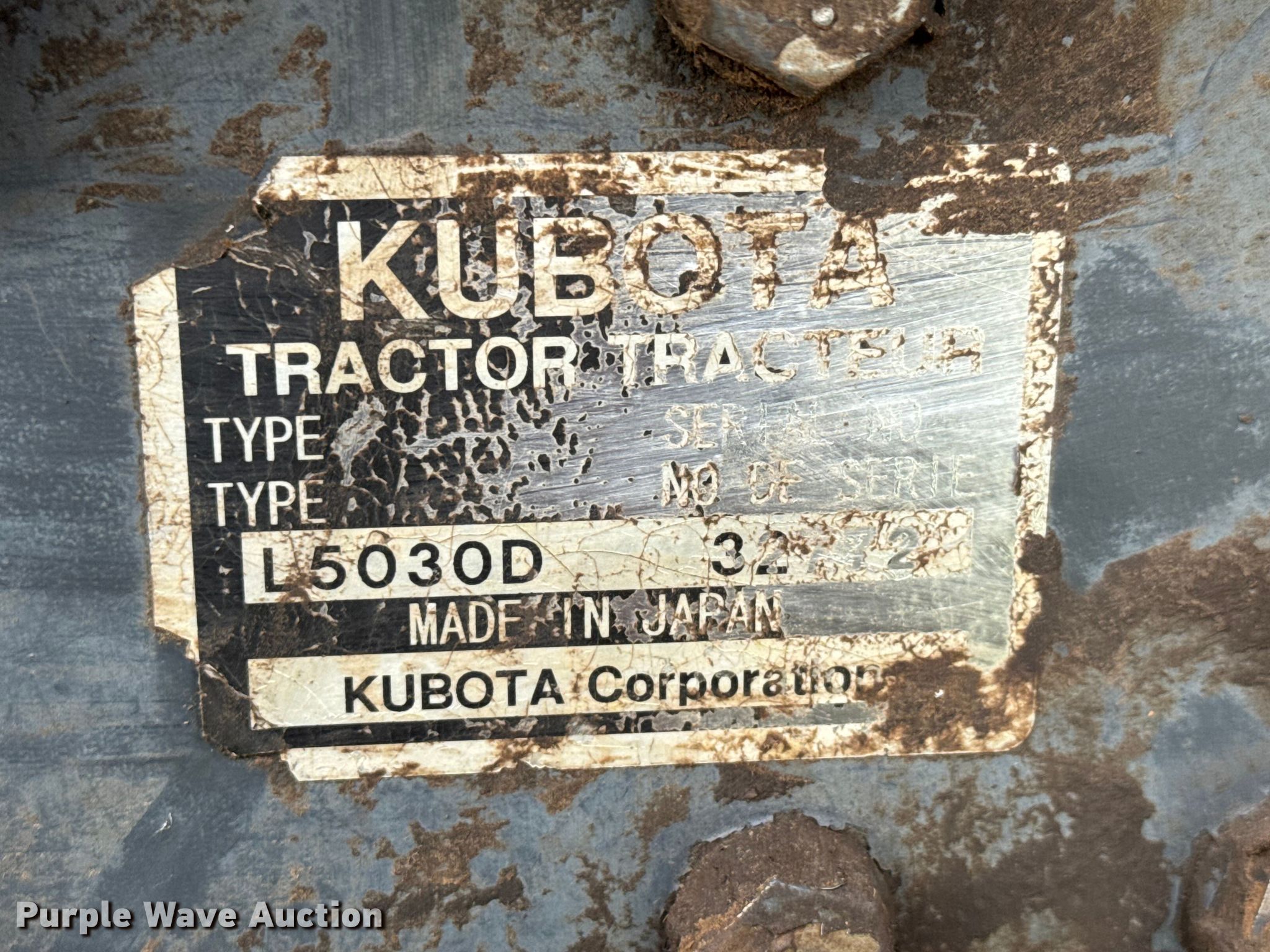 Purple Wave is selling a used Tractor in Kansas. This item is a 2004 Kubota L5030D MFWD tractor with the following: Hours: 4,779 on meter, Serial: 32772