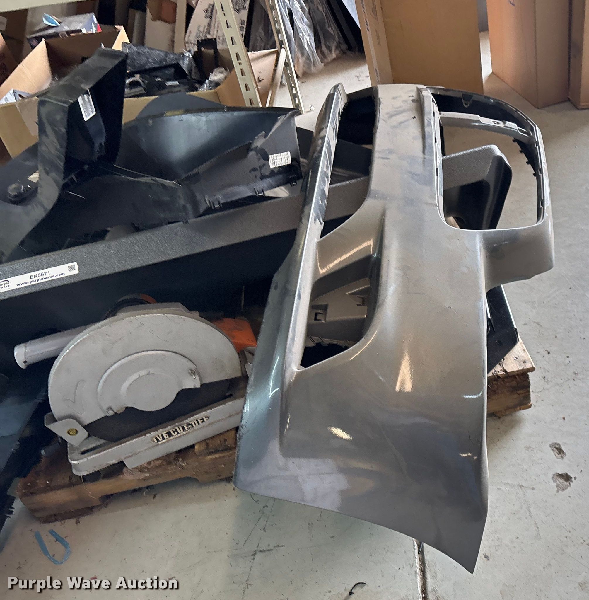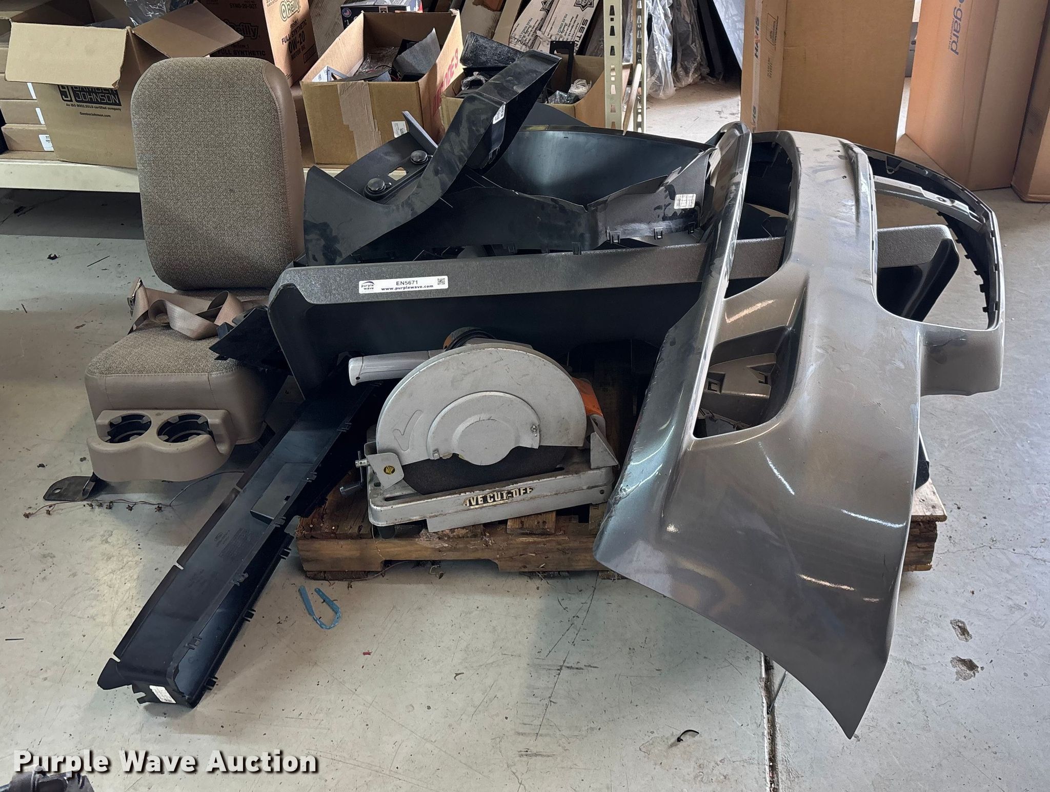 Purple Wave is selling a used Automotive Parts or Acces. in Missouri. This item is a Automotive parts with the following: Front bumper, Center console, Removed from a Dodge Charger, (2) rear seats, Removed from Chevrolet Tahoe, Rear seat, Removed from a Ford Explorer, Center seat, Chop saw, Non-operational unit