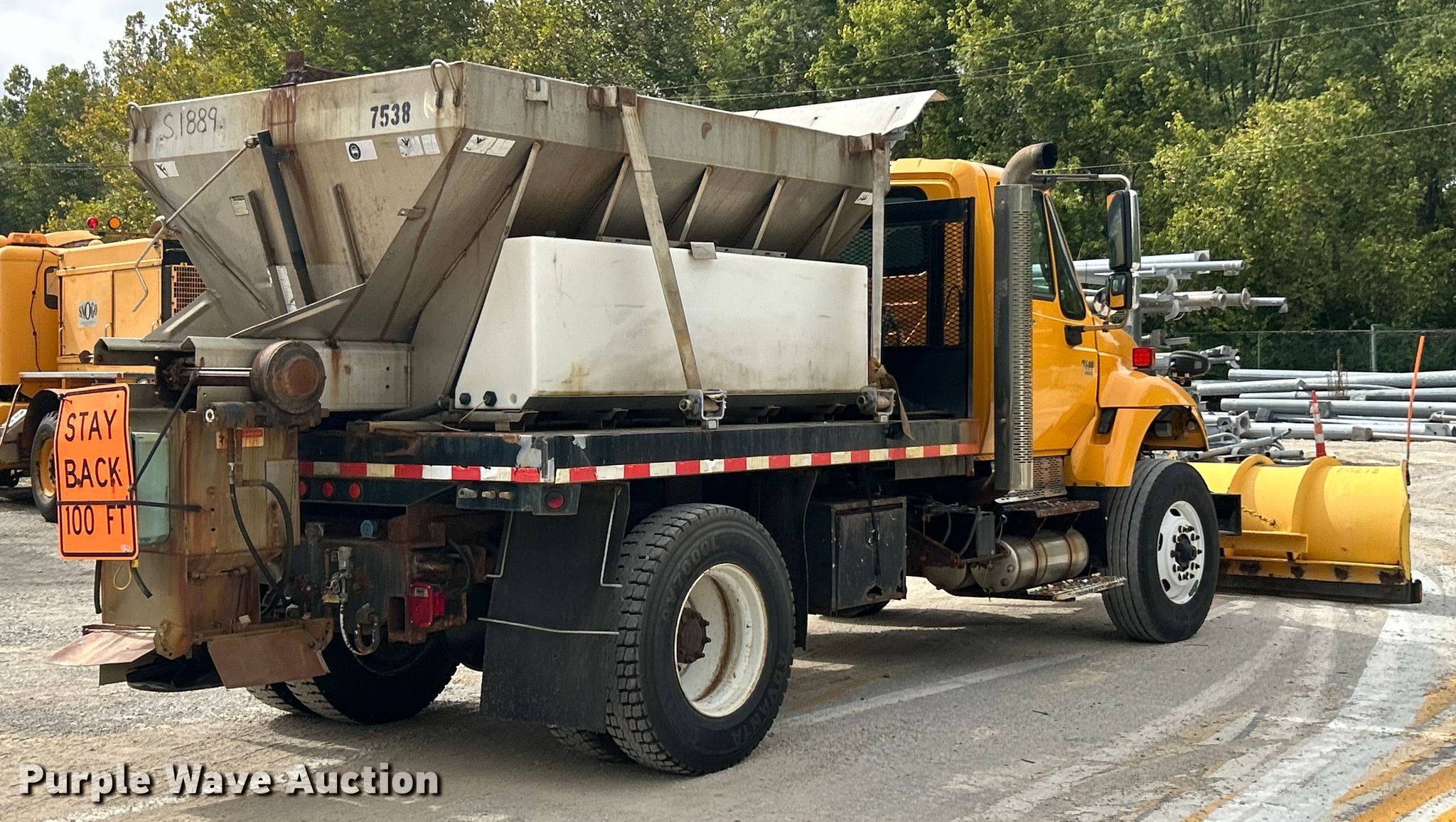 2005 International 7400 flatbed truck. Miles: 143,217 on odometer, Hours: 12,582 on meter, VIN: 1HTWDAAR25J144364, Unit #: 7538. Engine International DT466, Displacement: 7.64L, Cylinders: 6, Fuel type: Diesel. Transmission Automatic. Chassis Axles: Single, Suspension: Spring, Brakes: Air, PTO, GVWR: 37,000 lbs FAWR: 16,000 lbs, RAWR: 21,000 lbs. Interior AC, Heat, Heated mirrors, Power windows, Cruise control. Features Bed Flatbed, Length: 10', Width: 96", Bed type: Steel, Spreader Swenson, Plow Width: 144". Tires Front: 315/80R22.5, Rear: 11R22.5. Notes Tailgate not included, Dash warning indicator: ABS. Missouri title. Title distribution may be delayed up to 14 days from verification of funds. Missouri Dept. of Transportation - District 6. Ballwin, MO 63021