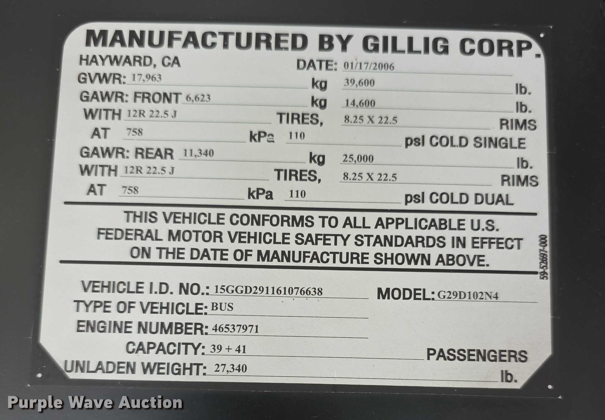 Take a look at this used 2006 Gillig G29D102N4 coach bus being sold on November 4th, 2025 in the Tuesday November 04 Government Auction made by Gillig. Take a look at all of the item information below or take a look at similar auctions for Transit Vehicles.