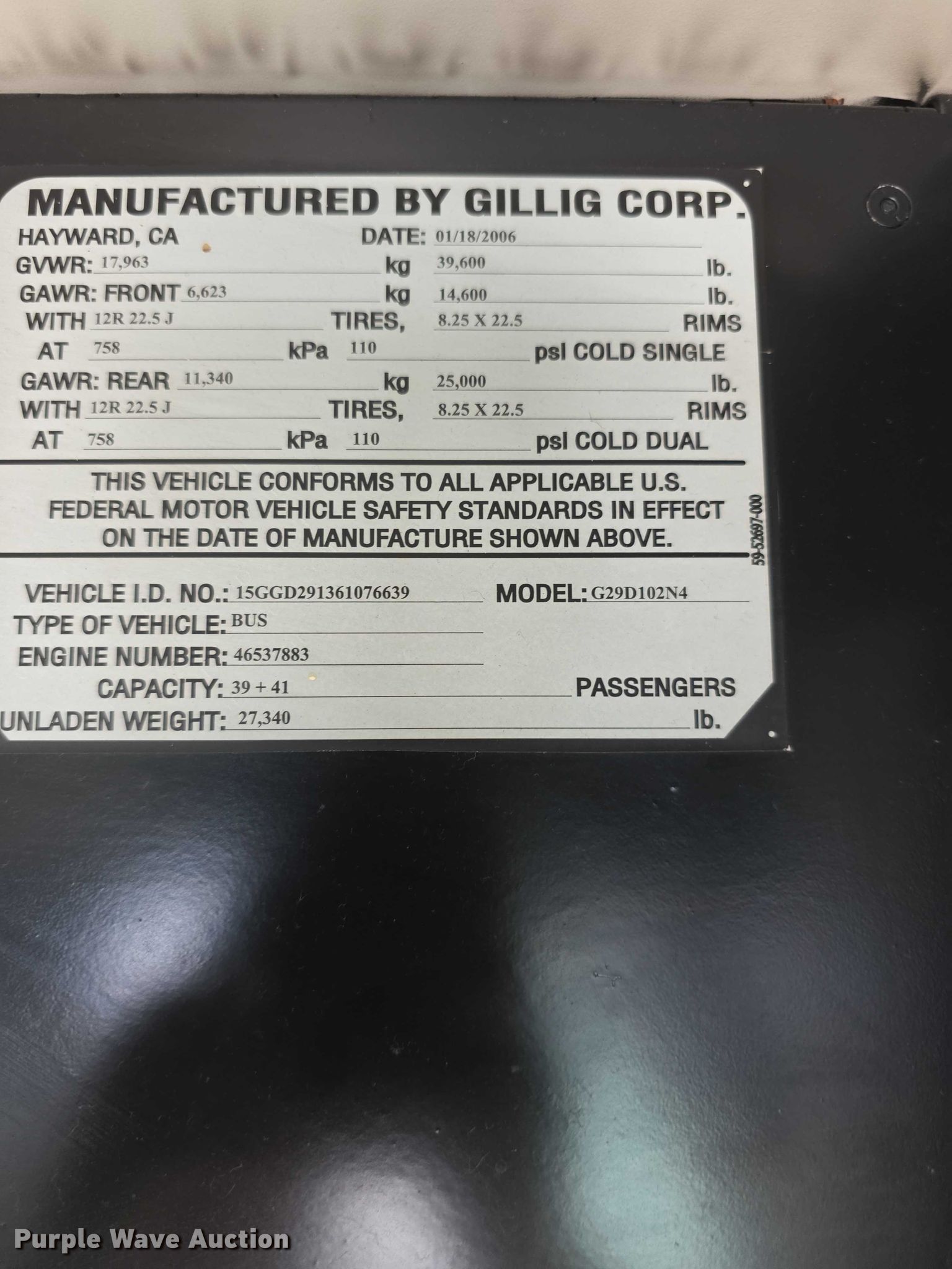 2006 Gillig G29D102N4 shuttle bus | Tuesday November 04 Government Auction