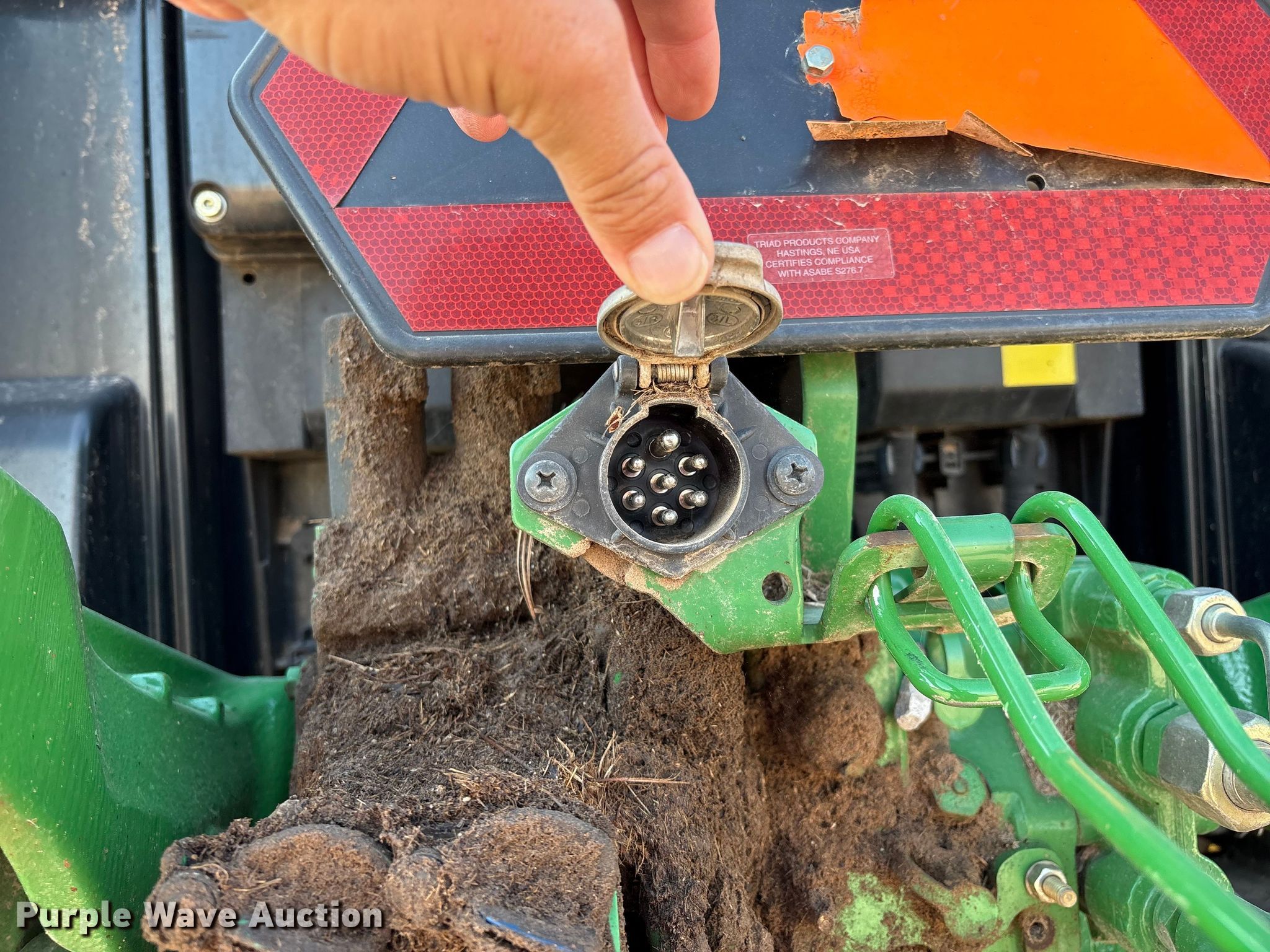 2016 John Deere 6120M MFWD tractor. Hours: 1,514 on meter, Serial: 1L06120MLGG858842. Engine Cylinders: 6, Fuel type: Diesel. Transmission Powershift, 24F - 23R, Differential lock. Operators station AC, Heat. Features PTO: 540, 1000, Top link, Seven pin outlet, Hydraulic remote sets Rear: 2. Tires Front: 16.9-24, Rear: 480/70r38. Pottawatomie County, OK. Maud, OK 74854