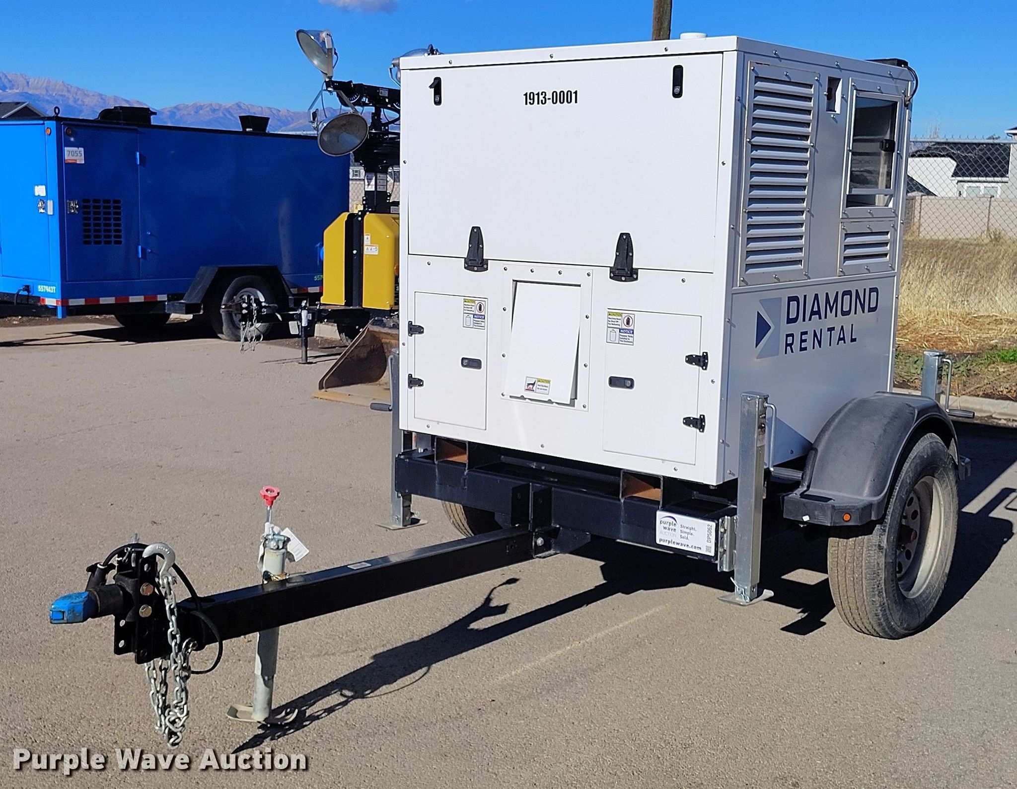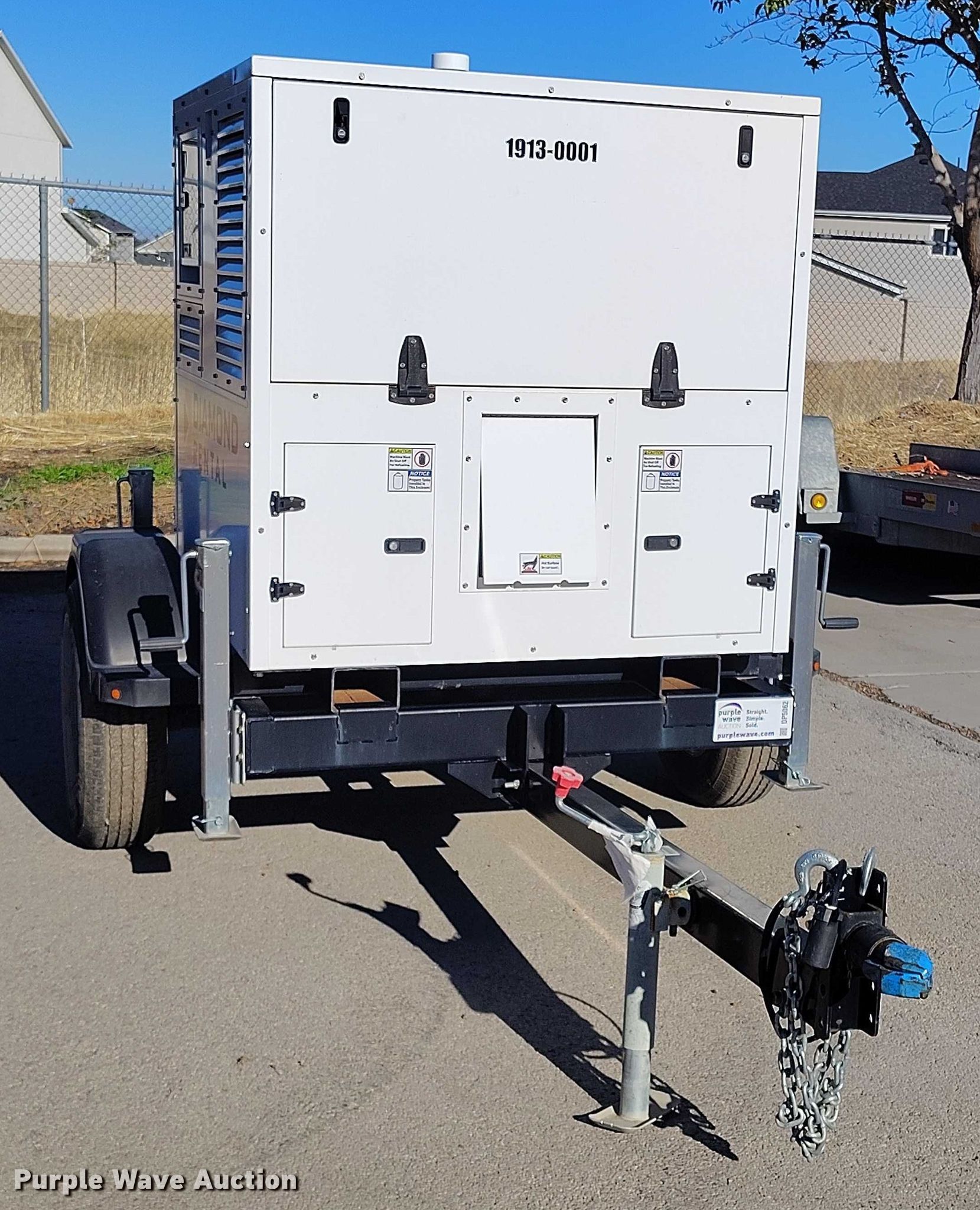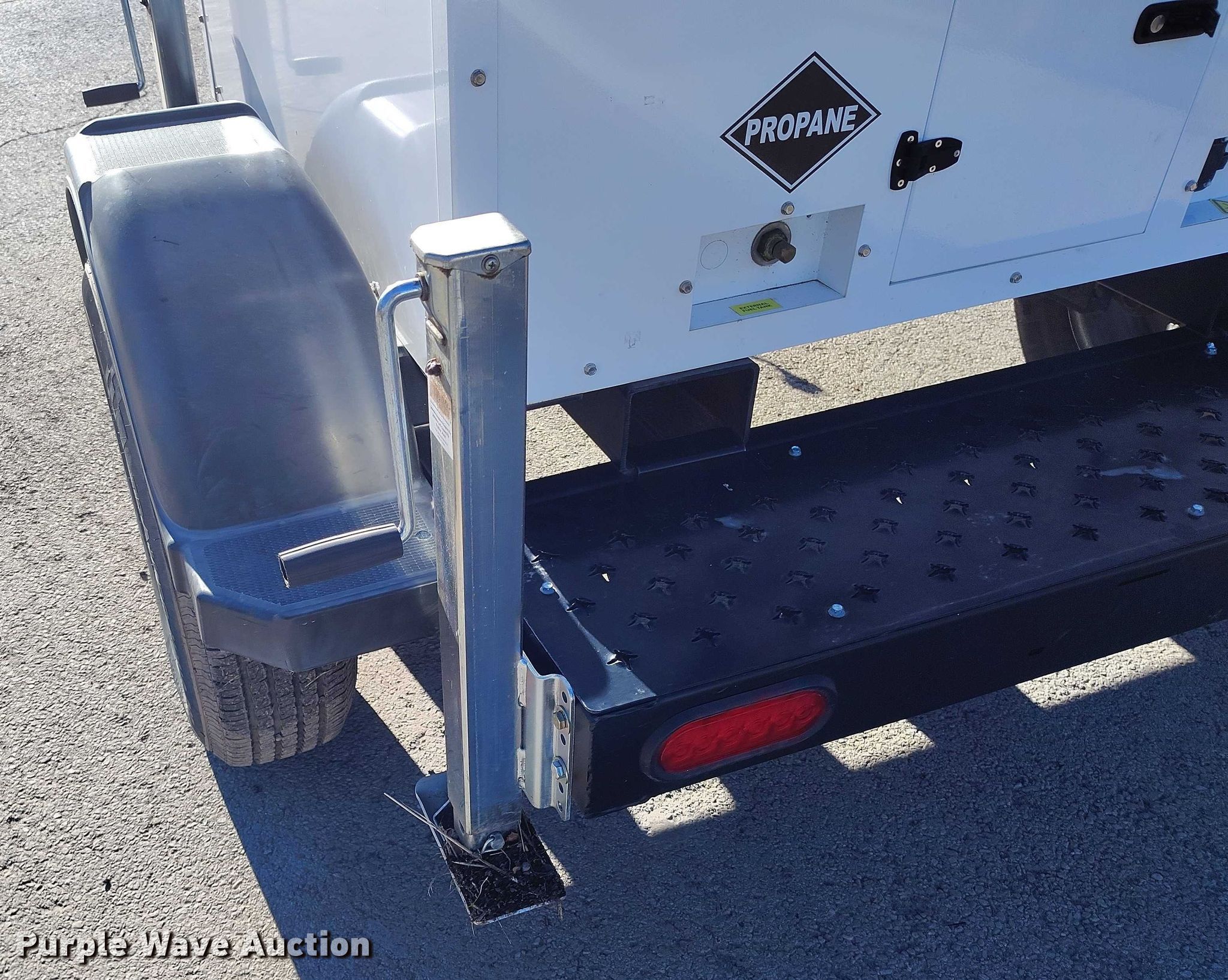 2021 Evergreen Mobile Power Juice Box 25LPG generator. Hours: 155 on meter, Serial: 21-040168. Engine Briggs & Stratton, Cylinders: 2, Fuel type: LPG LP bottle: Included. Features Generator Linz, kVA: 26, kW: 25, Phase: Three, Electric start. Trailer 11' L x 72" W, Ball hitch size: 2", Suspension: Torsion, Brakes: Electric, Axles: Single, Tire size: 225/75R15. Notes Jump start required during on-site data collection. This is worksite support equipment and will not come with a title. Transfer of ownership documentation will be a bill of sale. Wheeler Cat Rental. Tooele, UT 84074