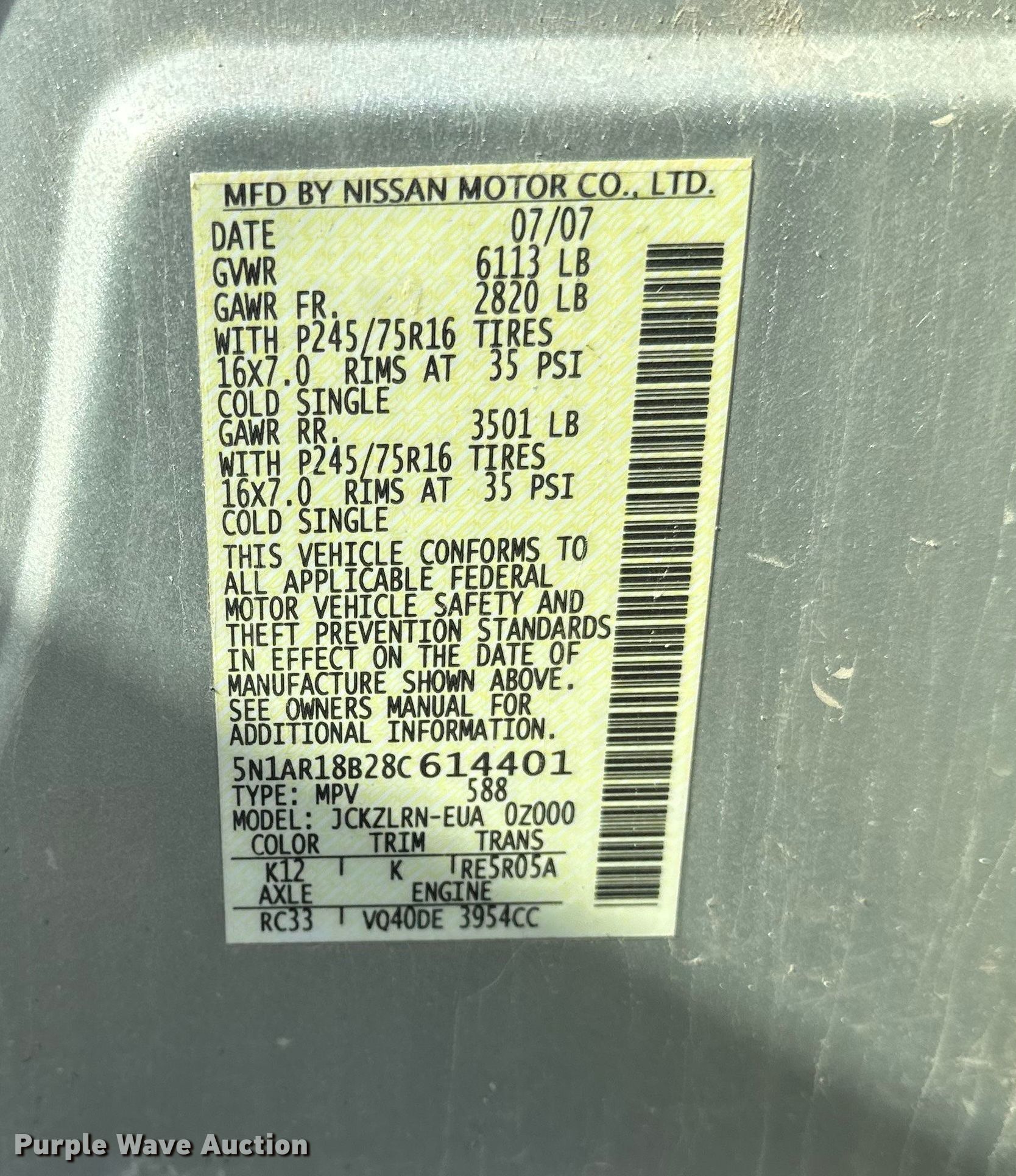Take a look at this used 2008 Nissan Pathfinder SUV being sold on November 5th, 2025 in the Wednesday November 05 Vehicles and Equipment Auction made by Nissan. Take a look at all of the item information below or take a look at similar auctions for Passenger Vehicles.