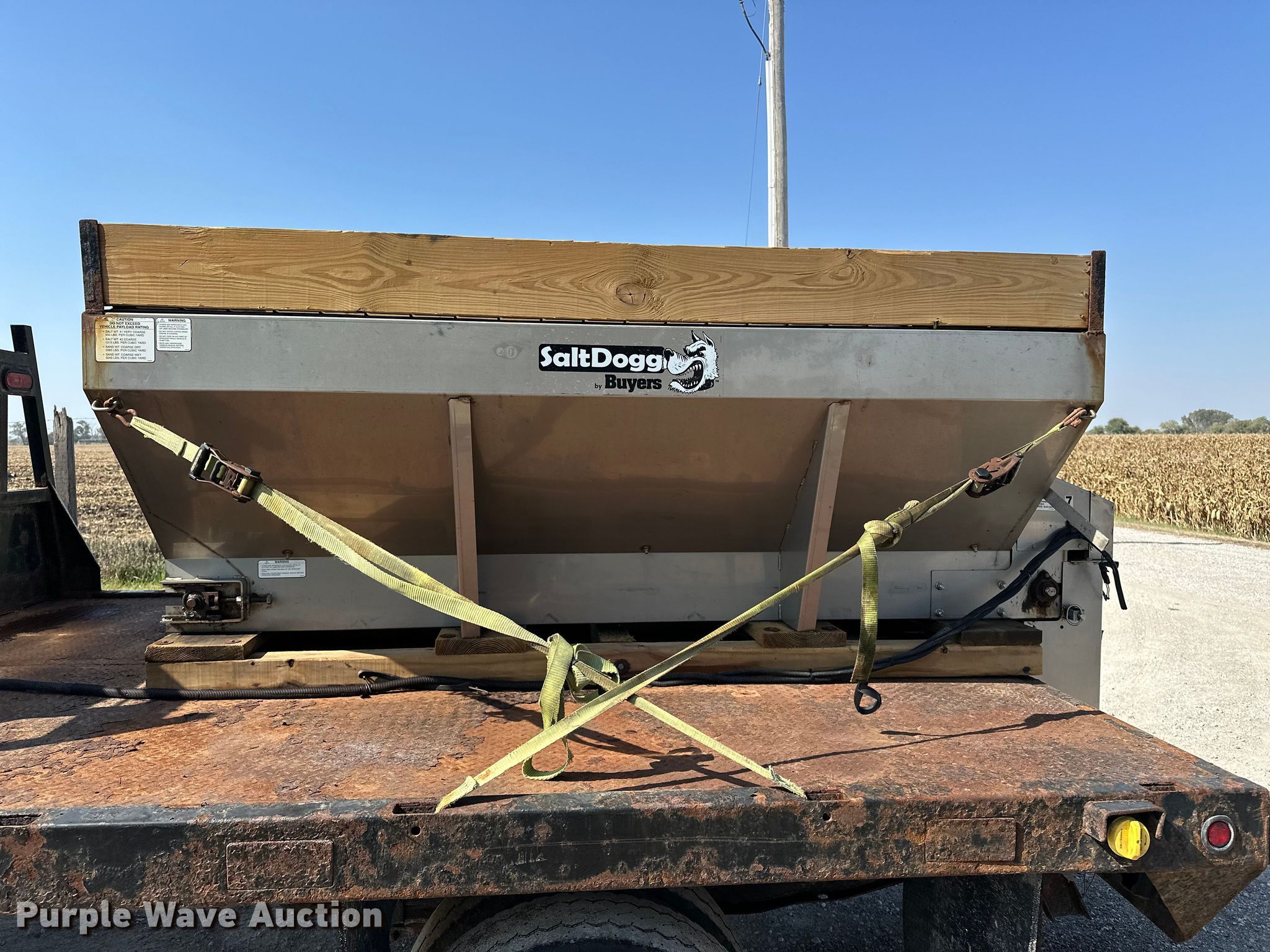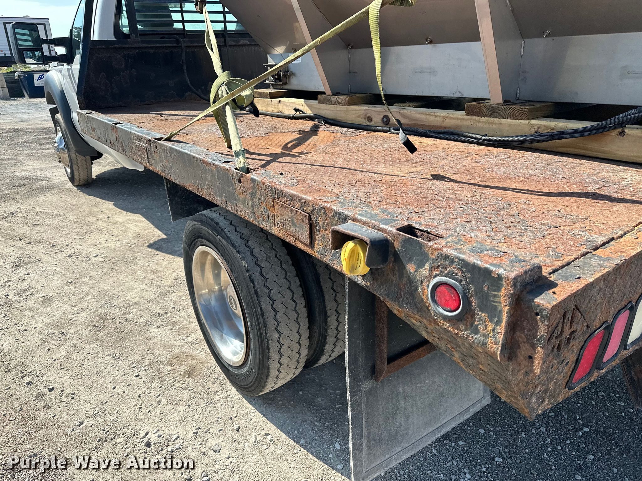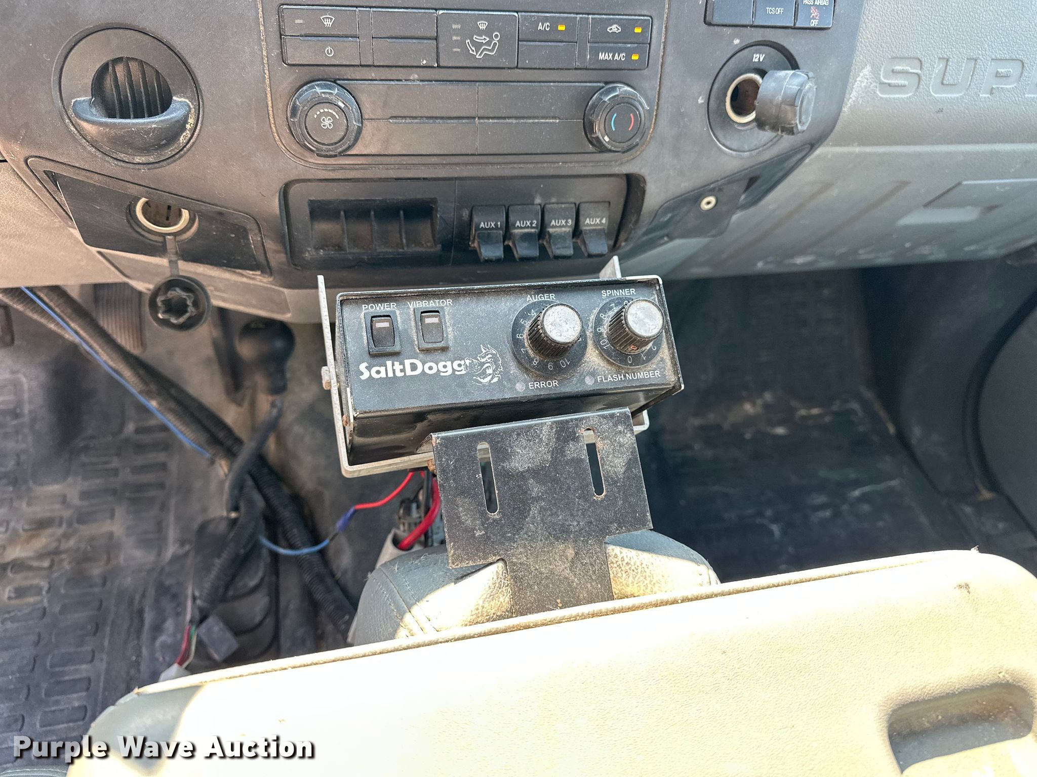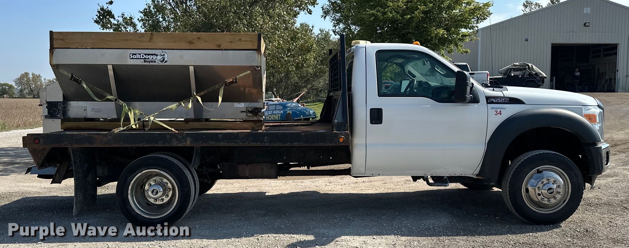 2012 Ford F550 flatbed truck. Miles: 149,312 on odometer, VIN: 1FDUF5HY1CEB44859. Engine Displacement: 6.8L, Cylinders: 10, Fuel type: Gas, HP: 362. Transmission Automatic. Chassis Four wheel drive, Axles: Single, Suspension: Spring, Brakes: Hydraulic, GVWR: 19,500 lbs. Interior AC, Heat, Cruise control. Features Bed Flatbed, Length: 11' 2", Width: 96", Salt Dogg spreader. Tires Size: 225/70R19.5. Notes Dash warning indicator: ABS, Front passenger tire side wall damaged. Nebraska title. Title distribution may be delayed up to 14 days from verification of funds. Waterloo, NE 68069