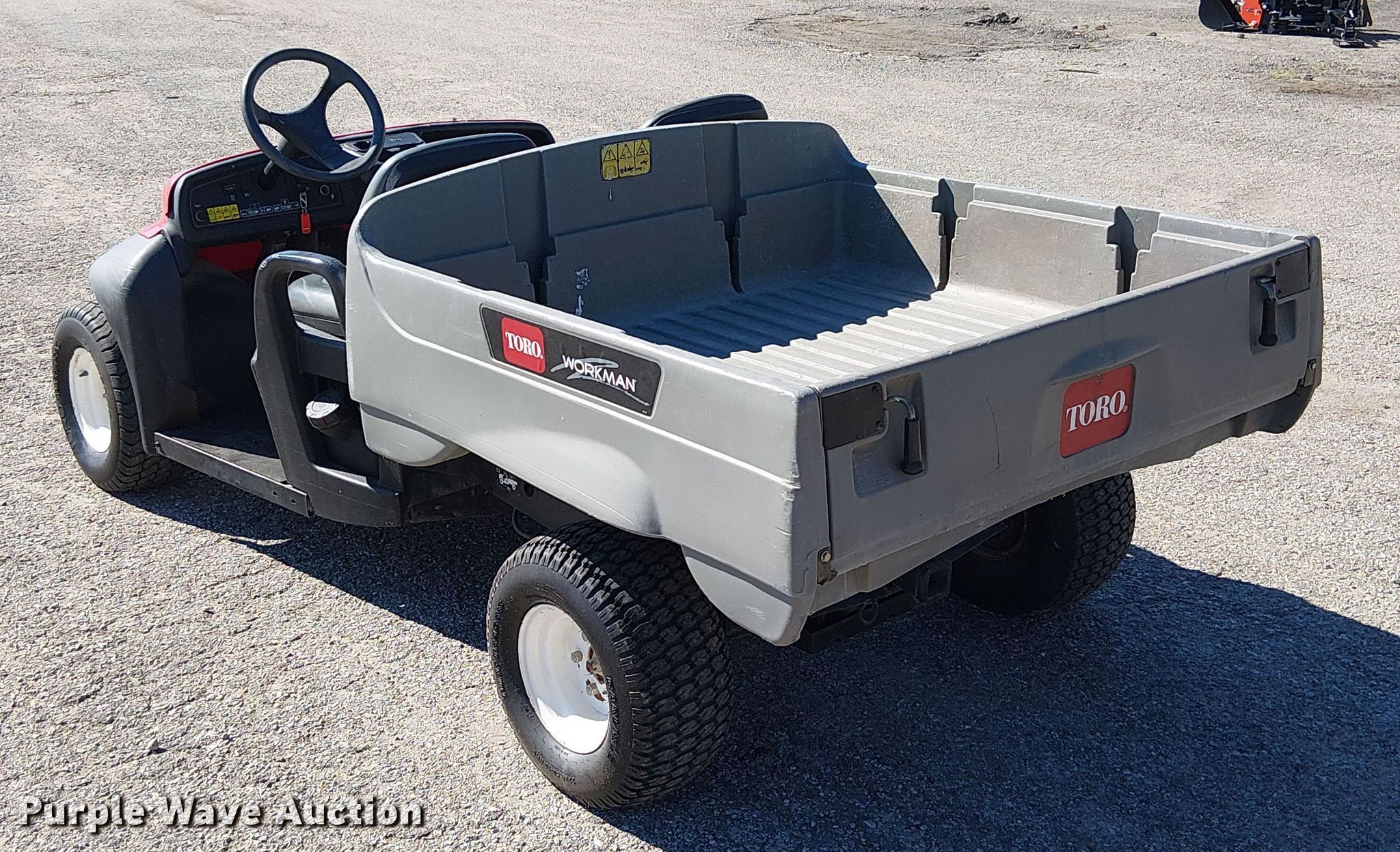 Toro Workman utility vehicle. Hours: 1,463 on meter, Serial: 270000591. Engine Kohler, Cylinders: 1, Fuel type: Gas, Electric start. Transmission Automatic. Features Receiver hitch, Dump bed 46" L x 49" W, Dump bed type: Electric/ Hydraulic. Tires Size: 22x9.50-10. Transfer of ownership documentation will be a bill of sale. NERD'S Hardware. Lexington, MO 64067