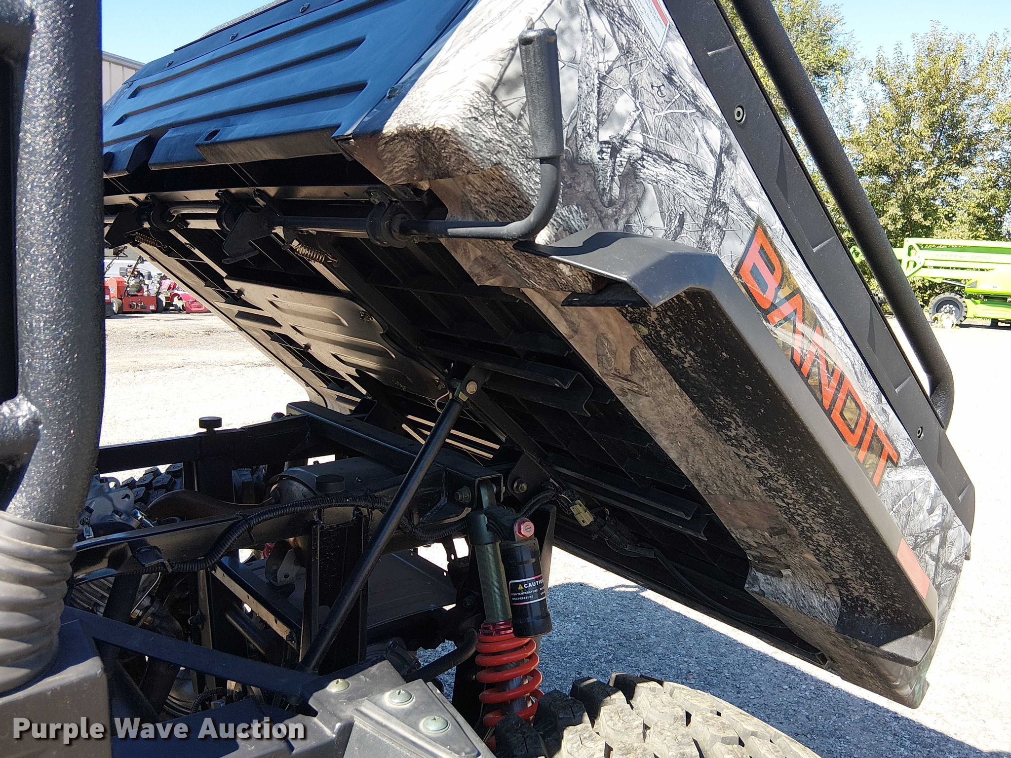 2023 Bad Boy Bandit 750 utility vehicle. Hours: 6 on meter, VIN: A6HMDWZ0APB000875. Engine Cylinders: 1, Fuel type: Gas, Electric start. Transmission Automatic. Chassis Four wheel drive/ All wheel drive. Operators station Canopy. Features Grille guard, Receiver hitch, Dump bed 35" L x 45" W, Dump bed type: Manual. Tires Front: 27x9.00R14, Rear: 27x11.00R14. Notes Dash warning indicator: Check engine. NERD'S Hardware. Lexington, MO 64067