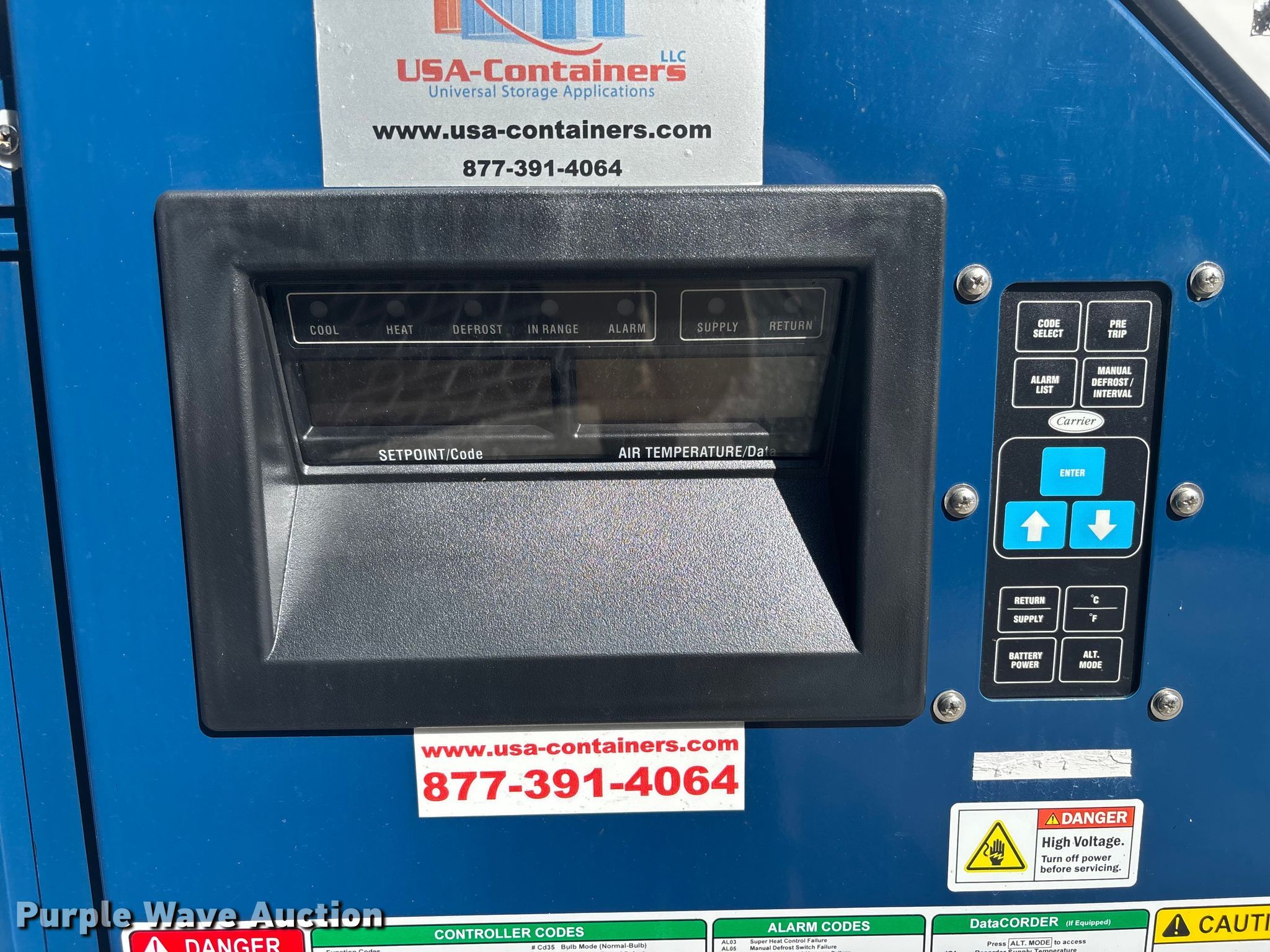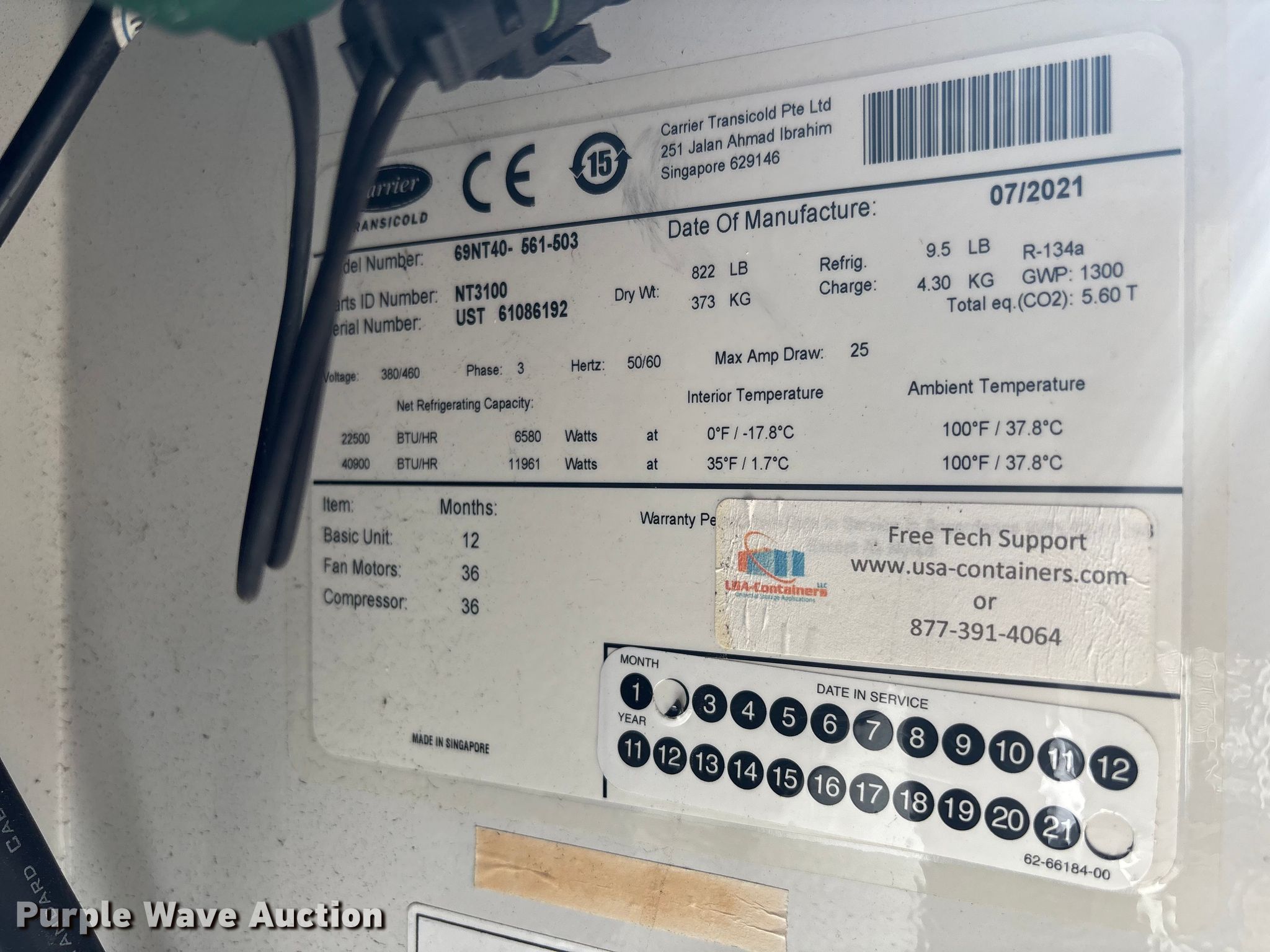 2022 USA-Containers refrigerated shipping container. Dimensions. Overall Length: 40', Width: 96", Height: 111". Refrigeration unit Carrier 69NT40-561-503 Serial: UST 61086192, Volts: 380/460, Phase: Three. Smart Warehousing. Orlando, FL 32806