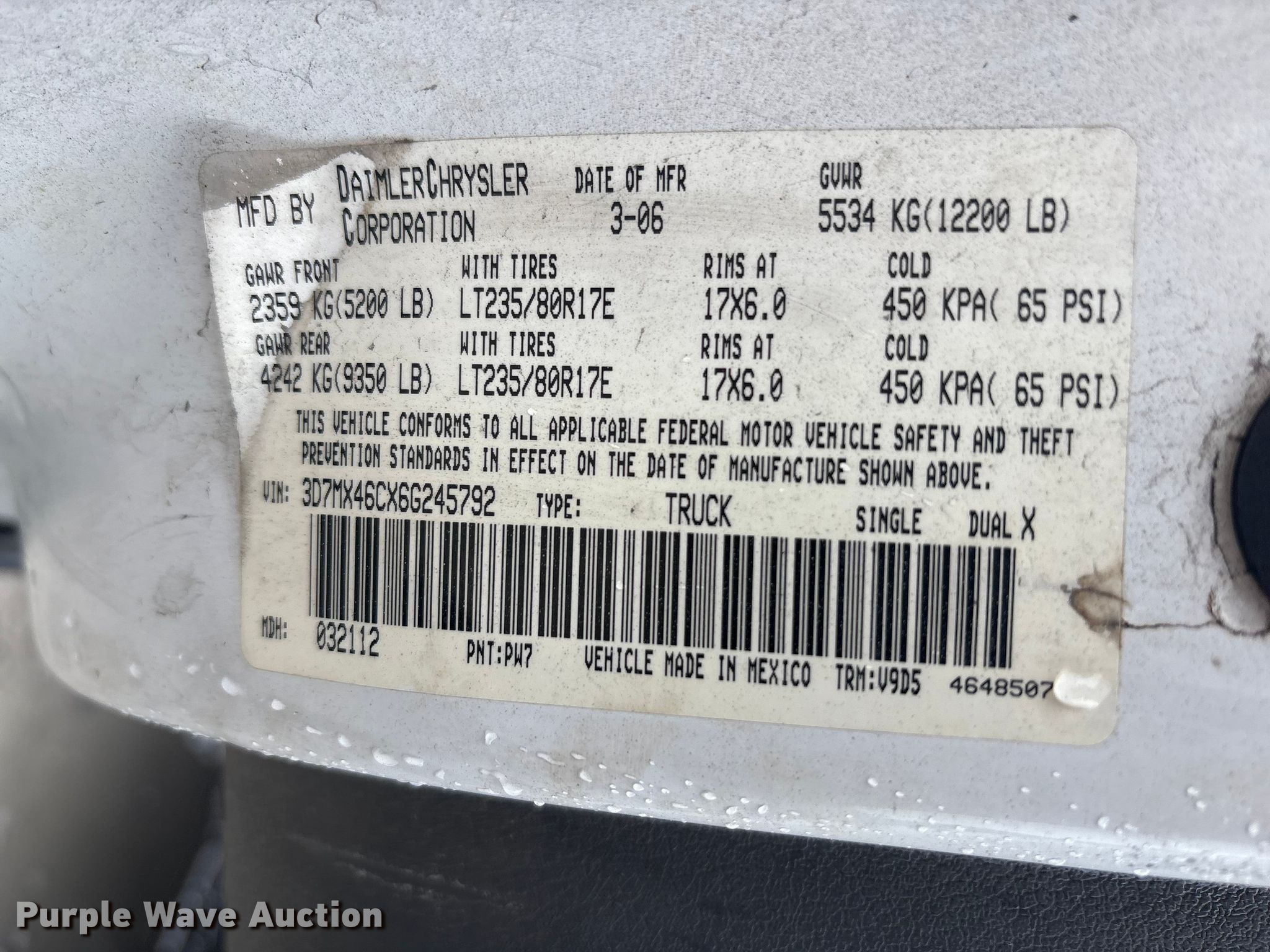Take a look at this used 2006 Dodge Ram 3500 flatbed pickup truck being sold on November 5th, 2025 in the SOLD! November 05 Vehicles and Equipment Auction made by Dodge. Take a look at all of the item information below or take a look at similar auctions for Pickups and Vans.