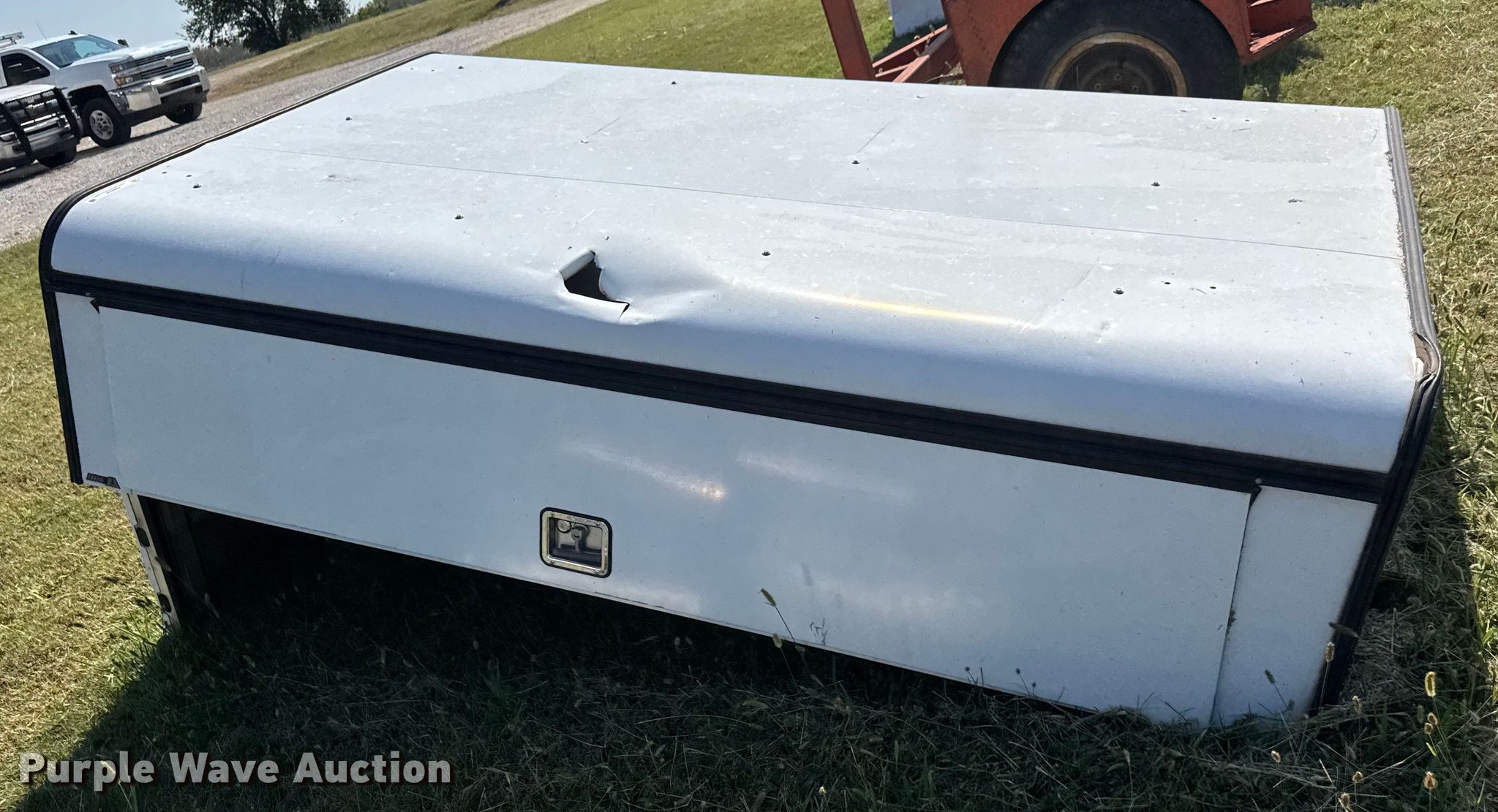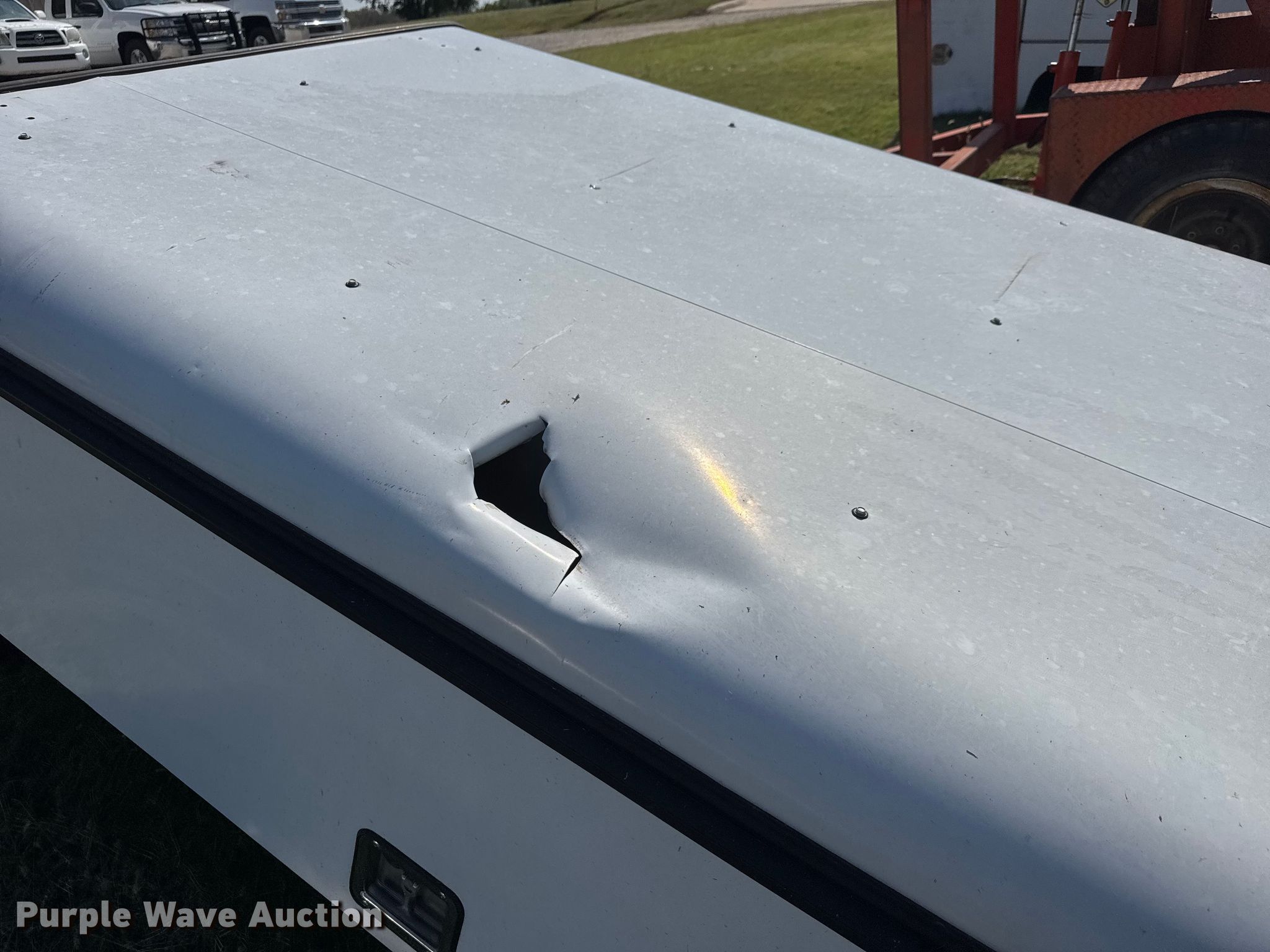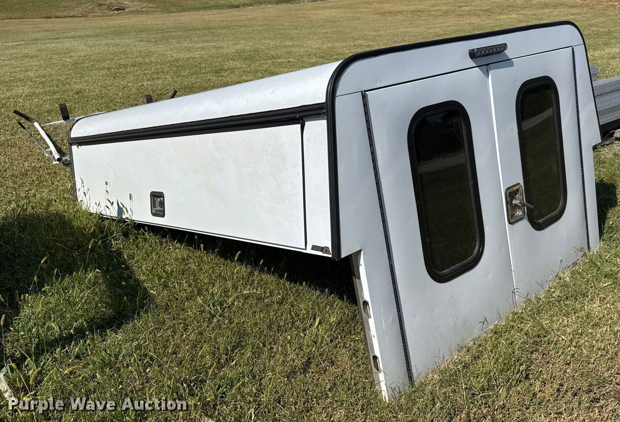Purple Wave is selling a used Automotive Parts or Acces. in Kansas. This item is a ARE pickup truck topper with the following: Hole in roof, ErgoRack ladder rack