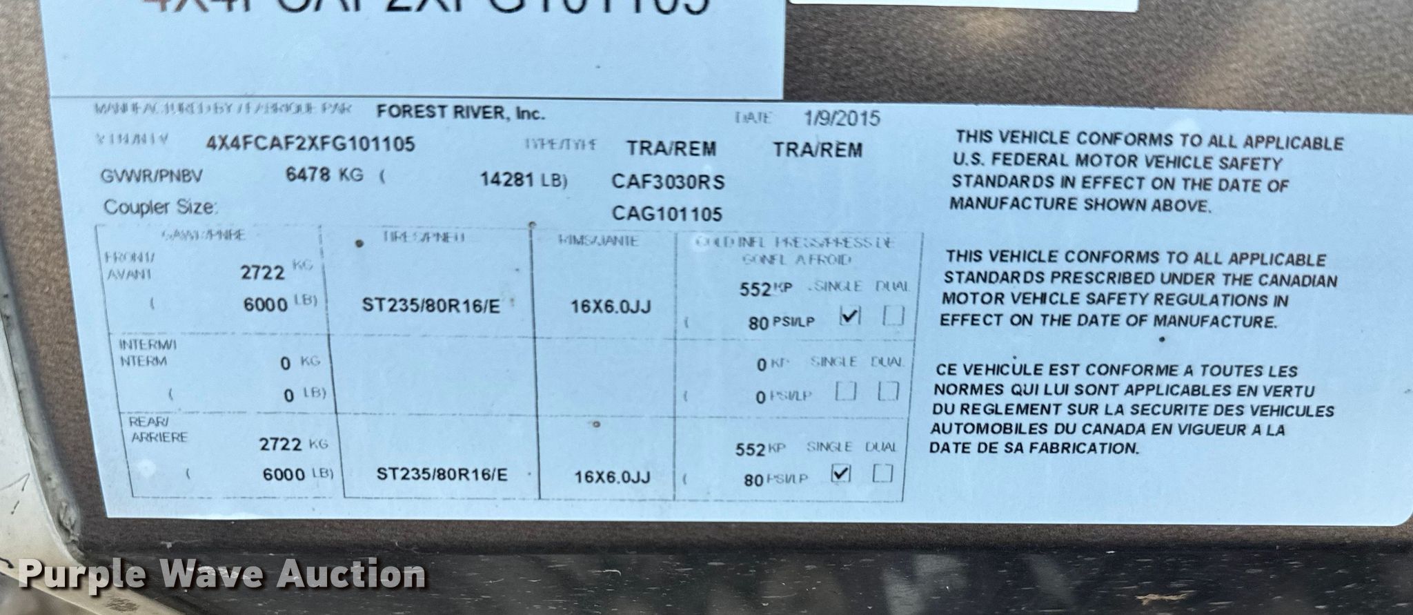 Purple Wave is selling a used RV or Camper in Kansas. This item is a 2015 Forest River Cardinal camper with the following: Camper length: 36', VIN: 4X4FCAF2XFG101105
