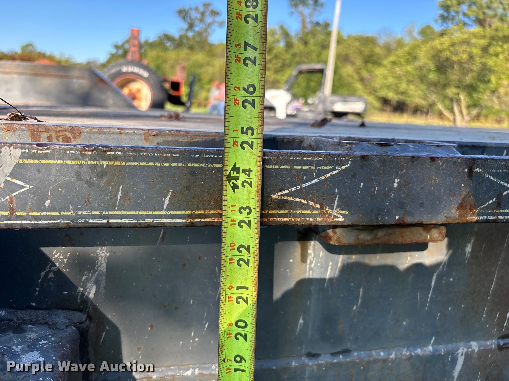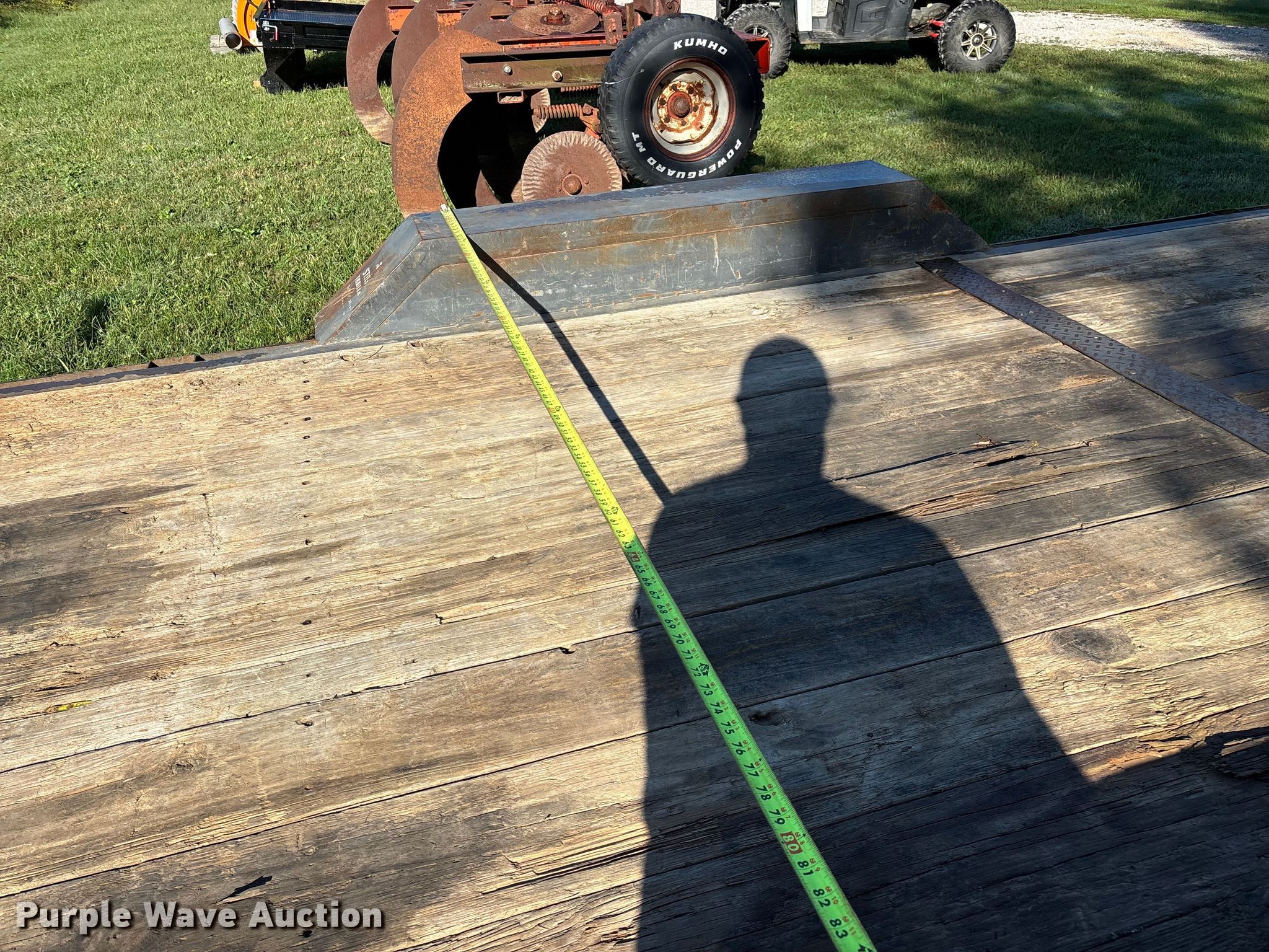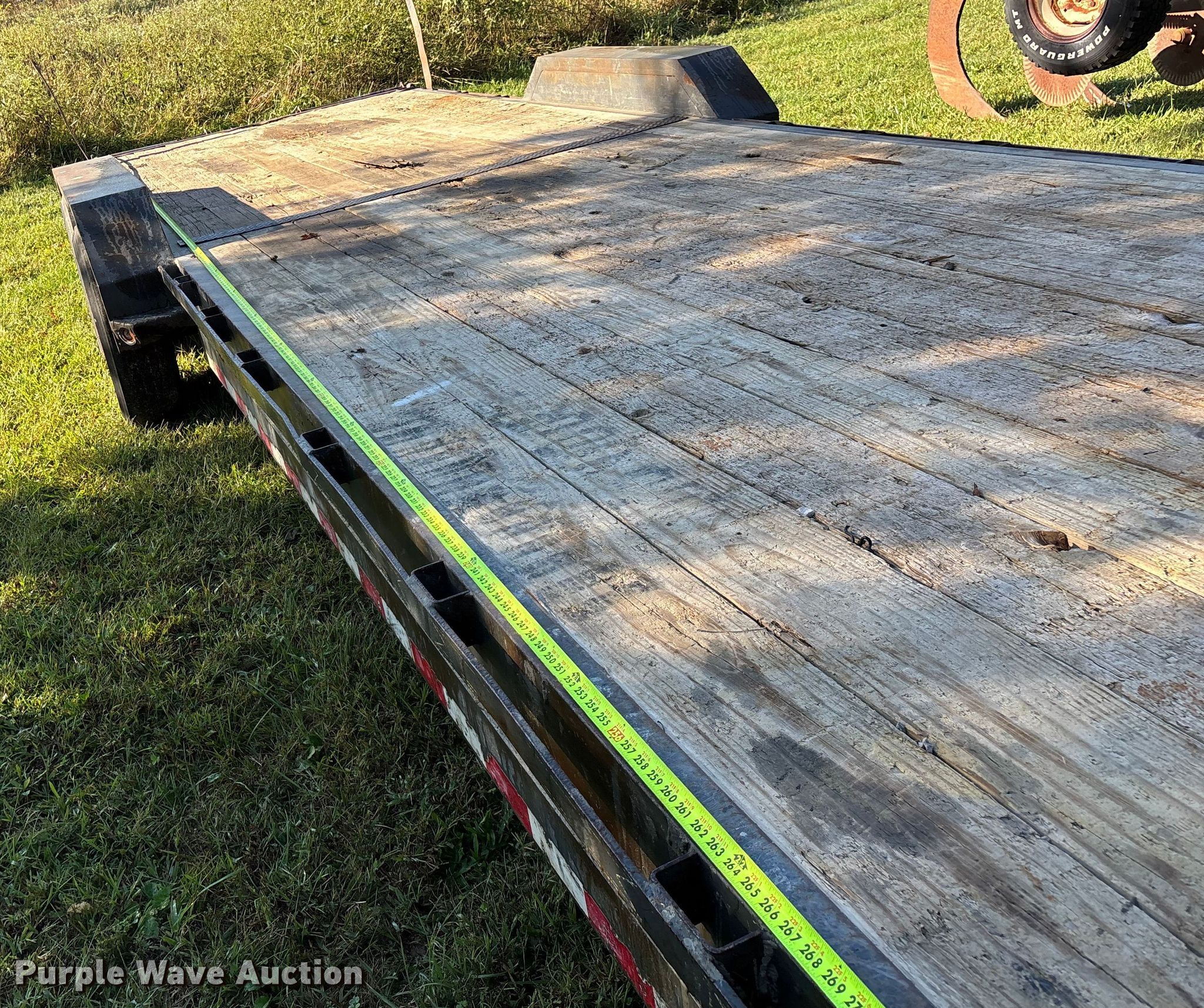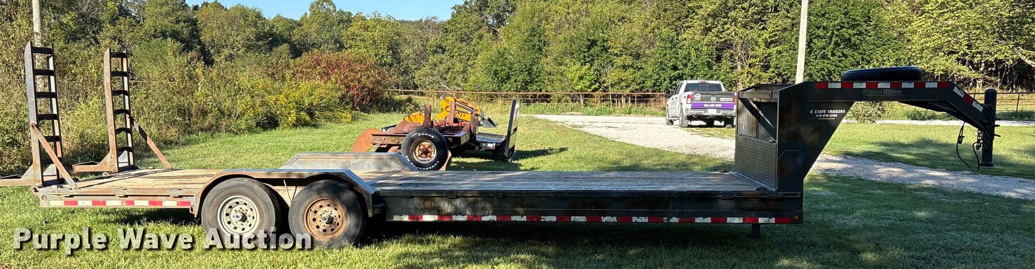 2015 Friesen Trailers equipment trailer. VIN: 4WFGN252XF1013314. Dimensions Overall Length: 33' 6", Width: 101", Deck Length: 25', Width: 81", Deck height: 25", Ramps: Manual Length: 60". Features Deck type: Wood. Chassis Hitch: Gooseneck, Landing gear: Single, Suspension: Torsion, Brakes: Electric, Axles: Tandem, GVWR: 14,000 lbs, GAWR: 7,000 lbs. Tires Steel wheels, Size: ST235/80R16. Notes Torsion axle issues, worn , Spare tire cable damaged. Missouri title. Title distribution may be delayed up to 14 days from verification of funds. Miller Service. Pierce City, MO 65723