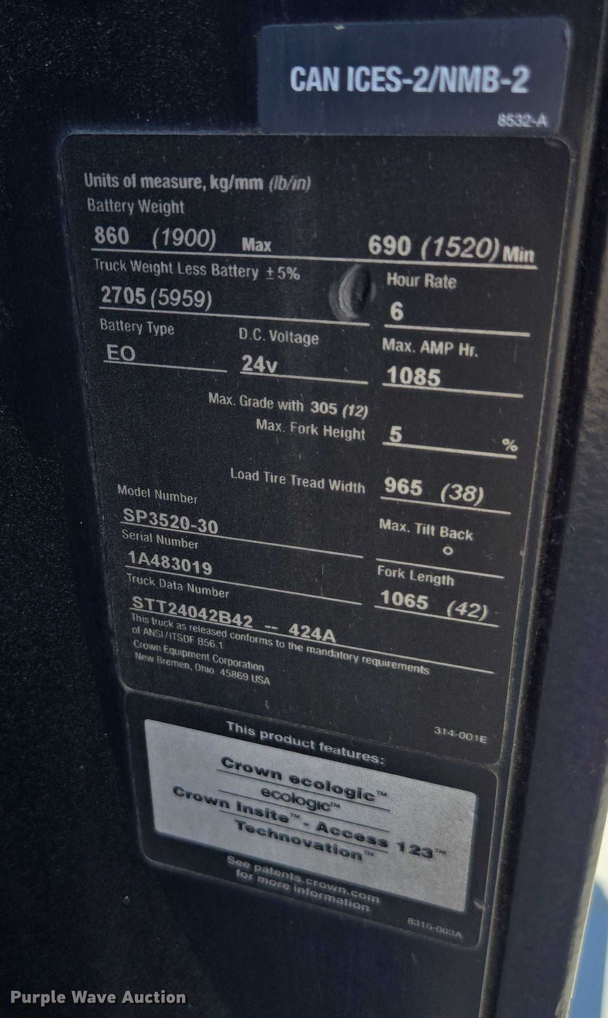 Purple Wave is selling a used Warehouse Forklift in California. This item is a 2017 Crown SP3520-30 order picker with the following: Hours: Unknown, Miles or hours may vary, unit still in use, Serial: 1A483019, Unit #: SFS2561