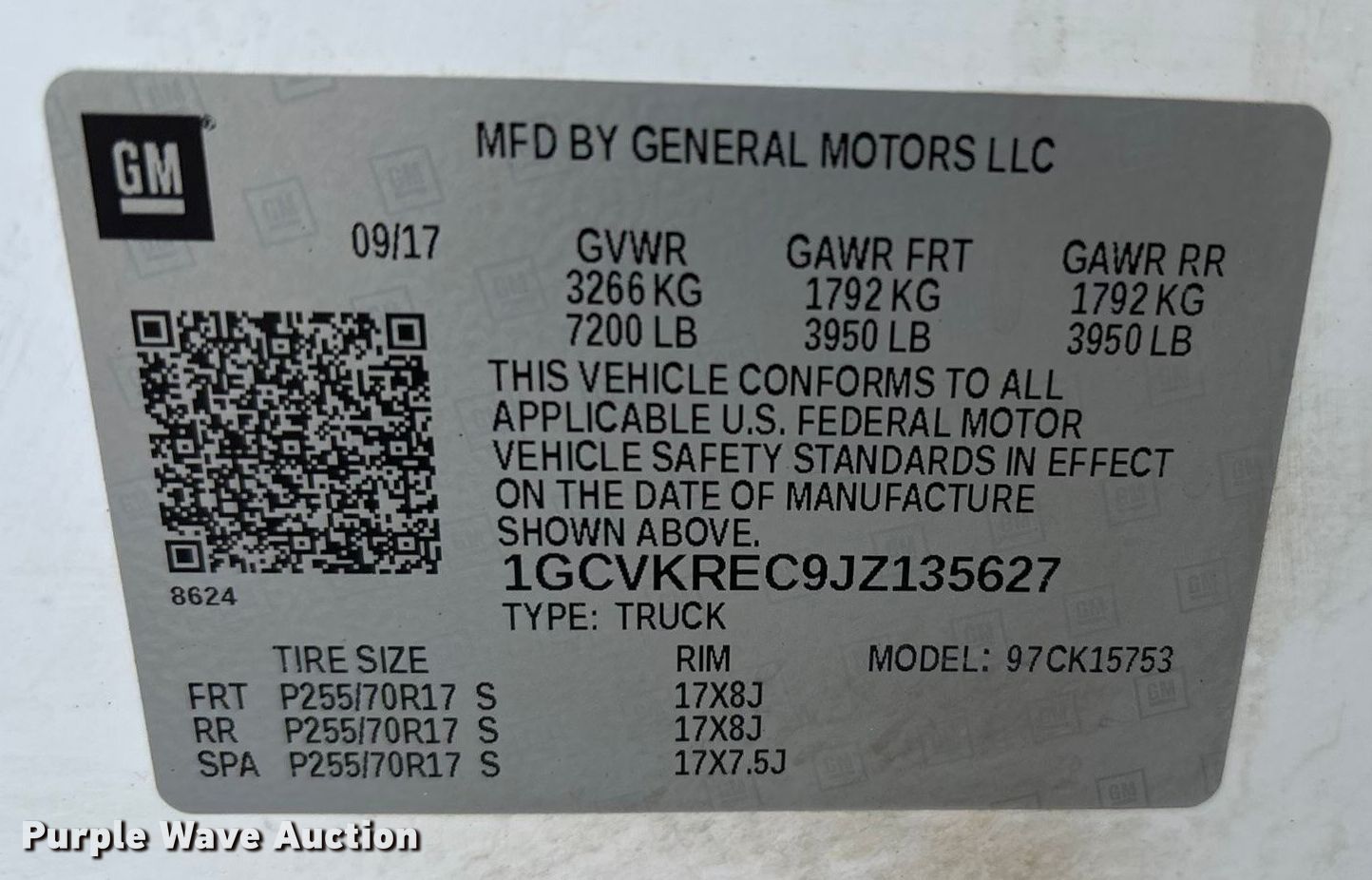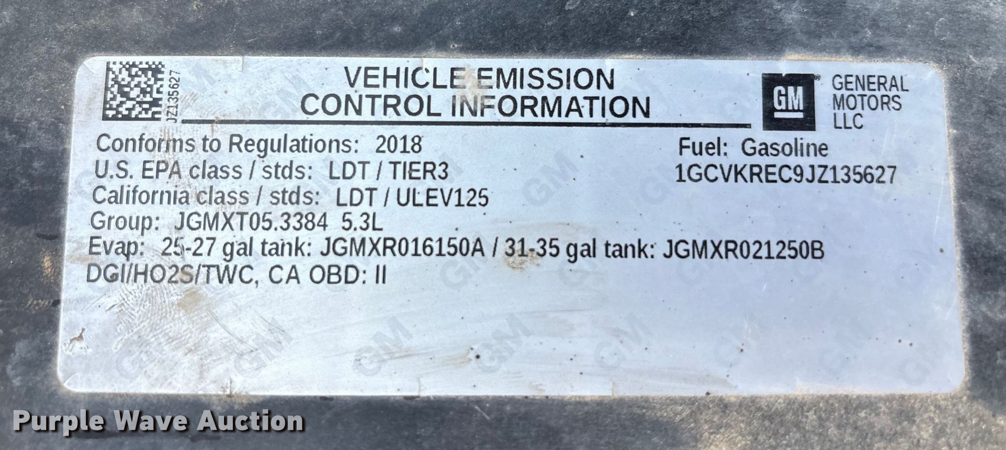 - VIN: 1GCVKREC9JZ135627