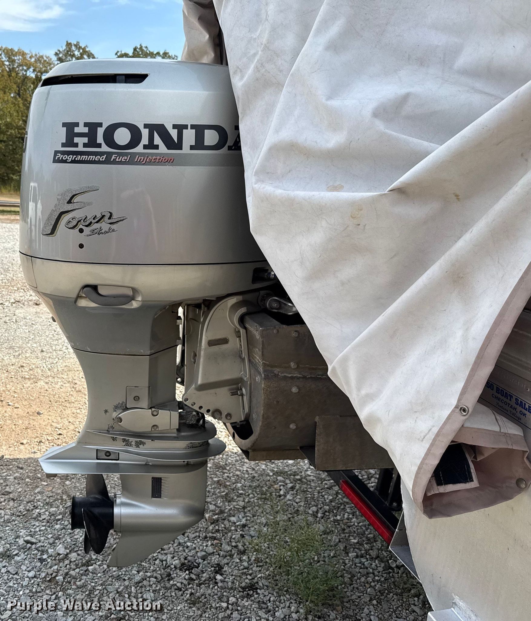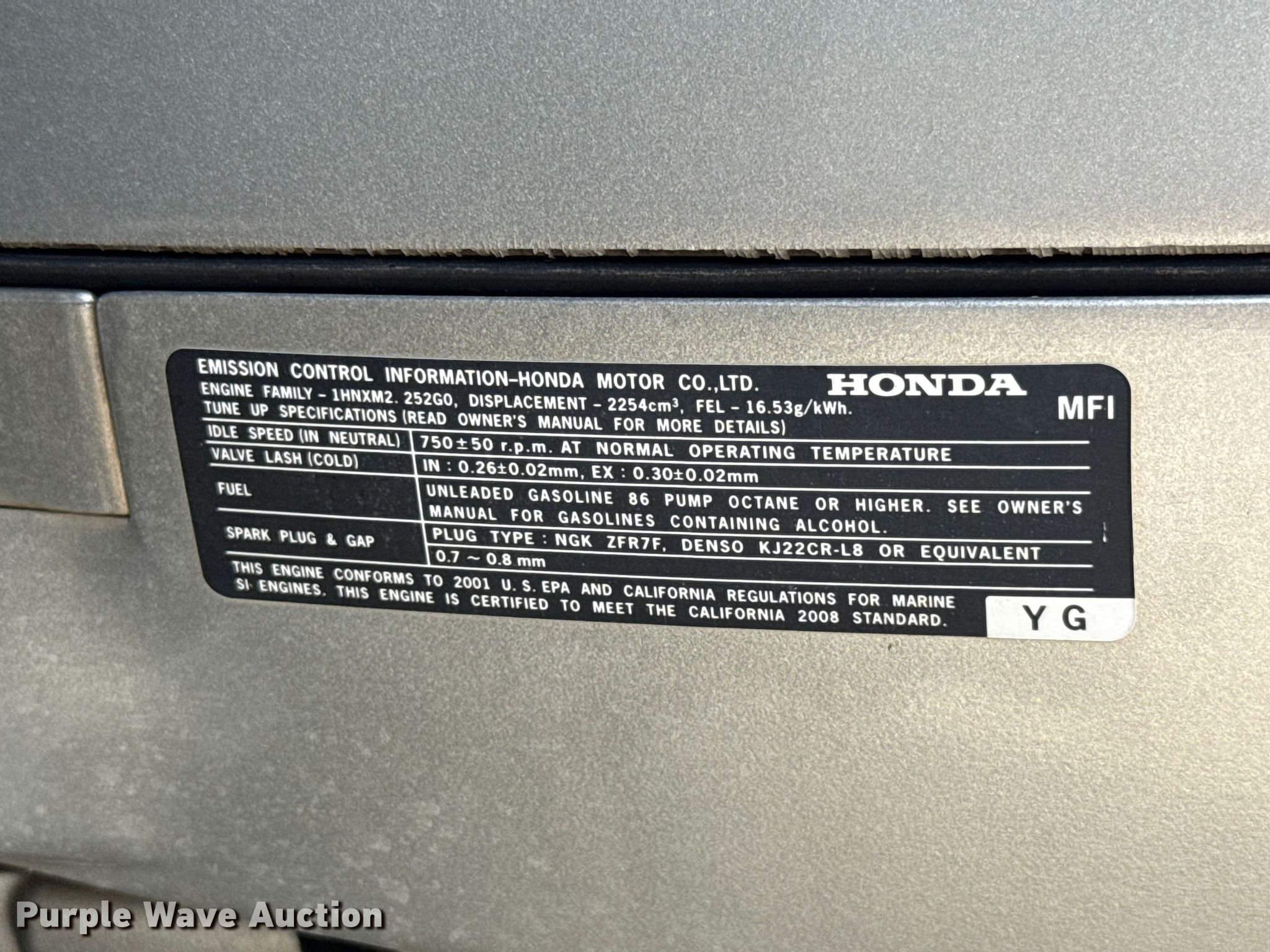 2002 Voyager VEXP22 pontoon boat. Hours: Unknown, Length: 22', Hull ID: V0Y19357C101. Engine Engine type: Outboard, 2001 Honda BF130, Serial: BZBE1200330, Displacement: 2254cm3, Cylinders: 4, Fuel type: Gas, HP: 130, Outdrive Propeller: Aluminum. Operators station Capacity Person: 14, 2,525 lbs, Depth finder: Lowrance Hook Reveal 5XSS. Features Bimini top. Trailer 2024 Mid America Trailer Pontoon PT22T/13-LED-FL-TL, VIN: 4PGBP2228RL100323, Overall length: 27', Overall width: 102", GVWR: 5,010 lbs, Ball hitch size: 2", Axles: Tandem, Tire size: ST175/80R13. Notes Possible engine issues. Boat- Oklahoma title. Motor- Oklahoma title. Trailer- Transfer of ownership documentation will be a bill of sale. Distribution of ownership documentation may be delayed up to 14 days from verification of funds.... Macomb, OK 74852