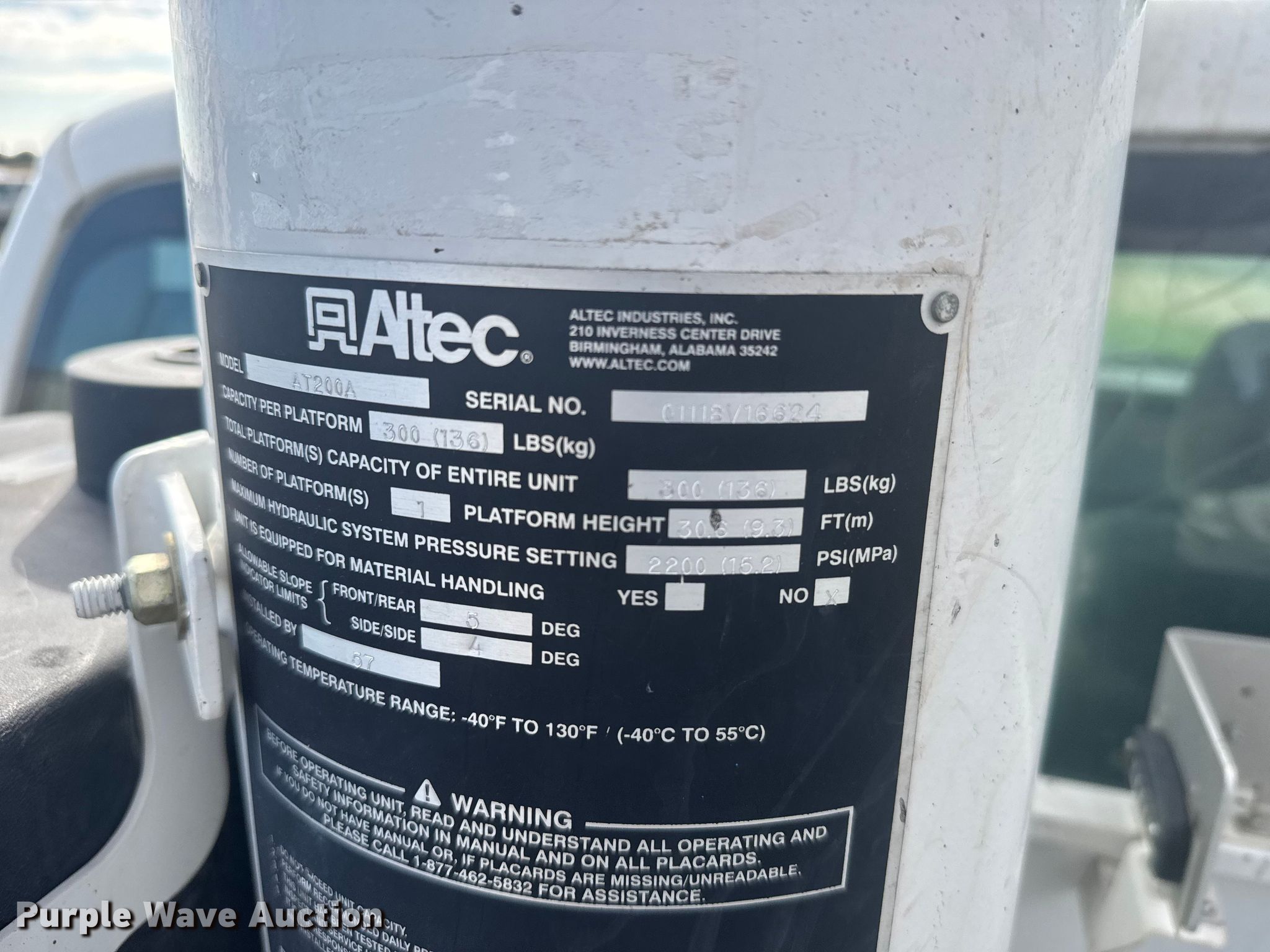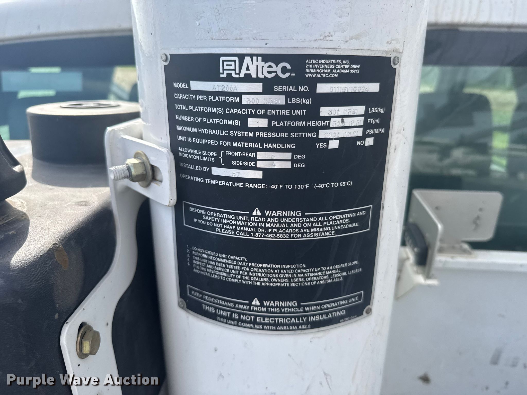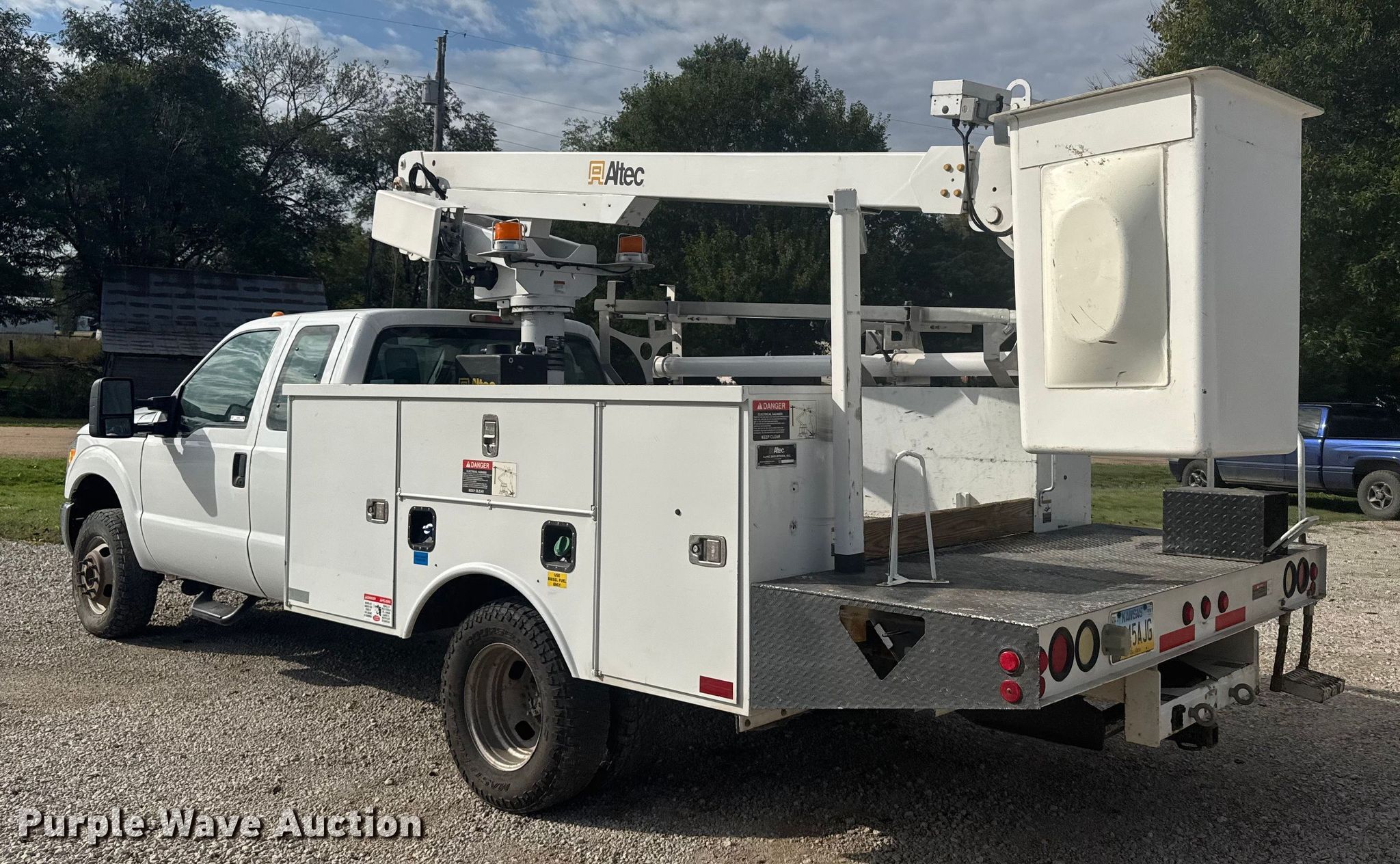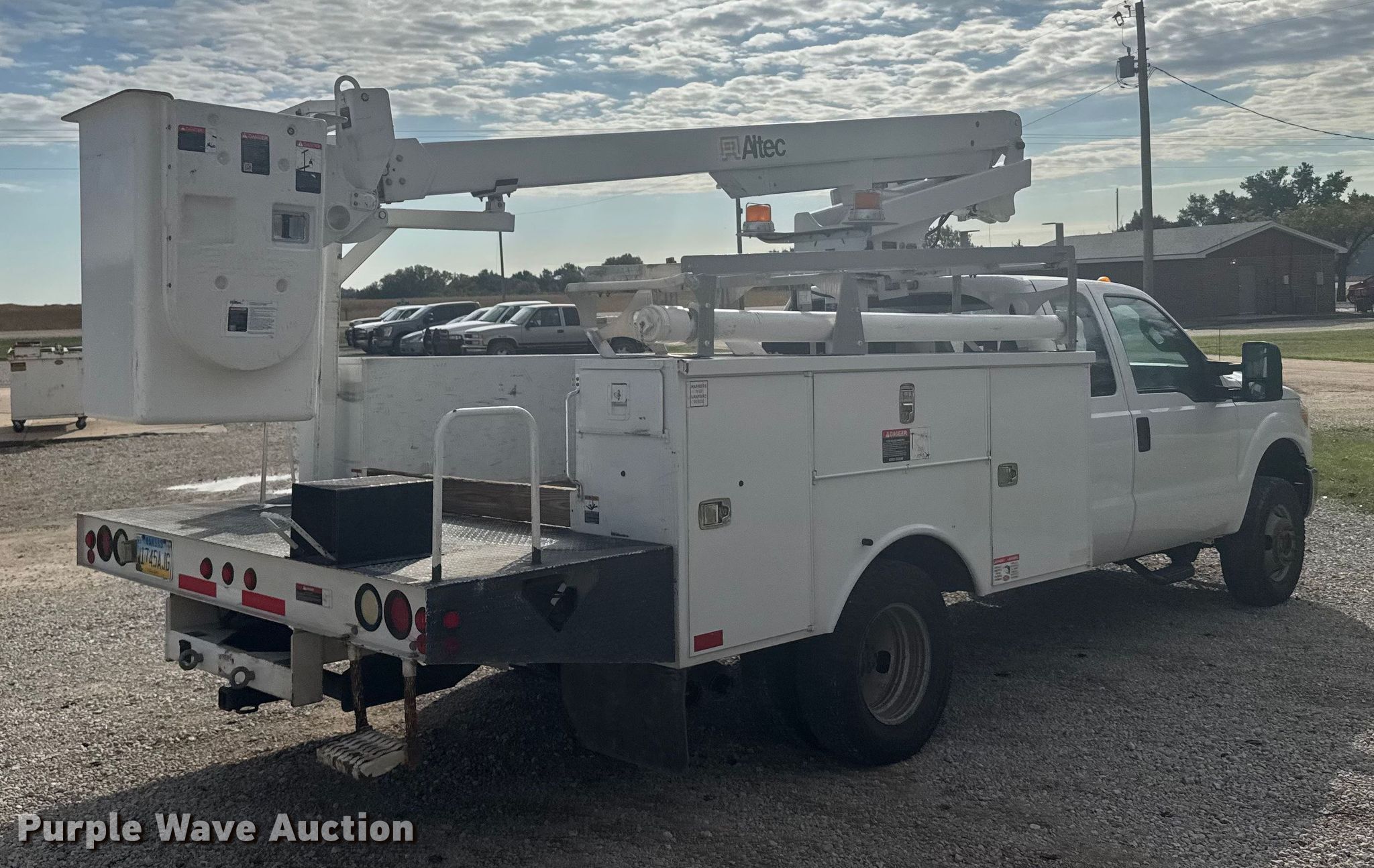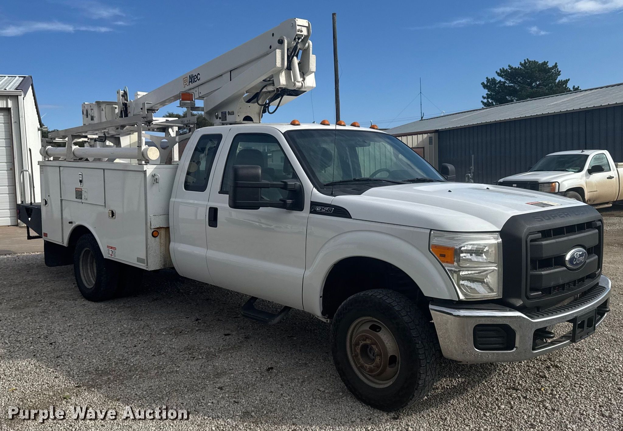 2011 Ford F350 Super Duty bucket truck. Miles: 141,736 on odometer, VIN: 1FD8X3HT8BEB76875. Engine Displacement: 6.7L, Cylinders: 8, Fuel type: Diesel. Transmission Automatic. Chassis Four wheel drive, Axles: Single, Suspension: Spring, Brakes: Hydraulic, GVWR: 13,600 lbs. Interior AC, Heat, Cruise control, Auxiliary controls, Brake controller. Features Bed Utility bed, Model: Altec, Width: 94", Boom Altec AT200A, Mast height: 30', Maximum lift capacity: 300 lbs, Maximum lift height: 35', Boom type: Telescopic, Man basket, Boom controls Ground, Platform/ basket.. Tires Size: 24570R17. Kansas title. Title distribution may be delayed up to 14 days from verification of funds. Golden Belt Telephone Assn.. Rush Center, KS 67575