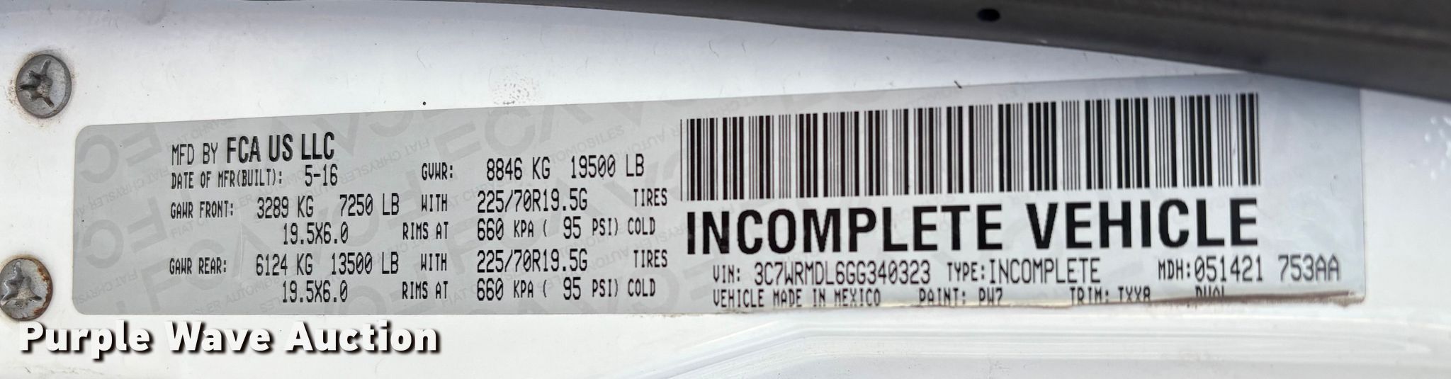 Purple Wave is selling a used Box Truck in Texas. This item is a 2016 Dodge Ram 5500 Box Truck with the following: Miles: 282,331 on odometer, VIN: 3C7WRMDL6GG340323