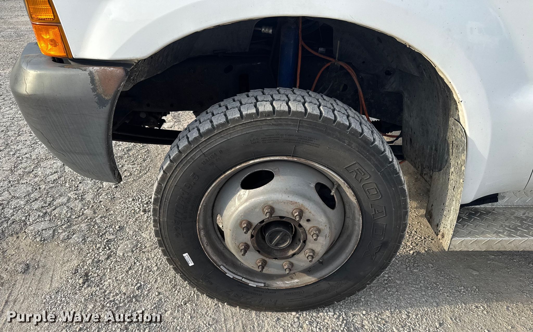 1999 Ford F550 Super Duty Crew Cab flatbed truck. Miles: 226,070 on odometer, VIN: 1FDAW57F9XEE39913. Engine Displacement: 7.3L V8 OHV, Cylinders: 8, Fuel type: Diesel. Transmission Automatic, Four wheel drive. Interior AC, Heat. Features Bed Flatbed, CM truck bed 1510304, Serial: MB00228054, Length: 9' 4", Width: 93", Hitch: Gooseneck. Tires Size: 225/70R19.5. Notes Dash warning indicator: Airbag. Missouri title. Title distribution may be delayed up to 14 days from verification of funds. Newland Paving Company. Independence, MO 64055