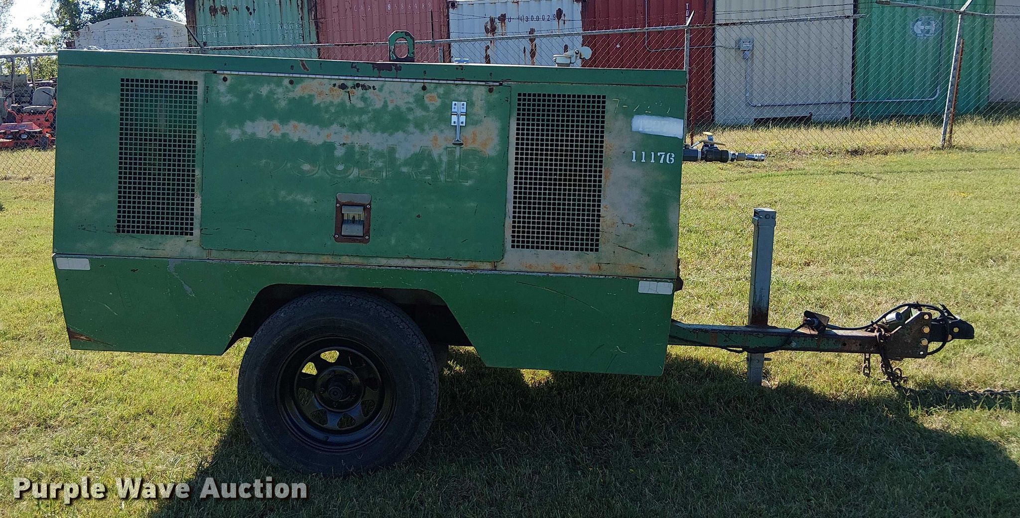Sullair 185Q air compressor. Hours: 837 on meter. Engine John Deere 4039DF001, Serial: T04039D348735P, Cylinders: 4, Fuel type: Diesel. Features Air compressor PSI: 185. Trailer 11' L x 56" W, Ball hitch size: 2 5/16", Suspension: Spring, Axles: Single, Tire size: ST205/75R15. Transfer of ownership documentation will be a bill of sale. Flint Equipment LLC. Drumright, OK 74030