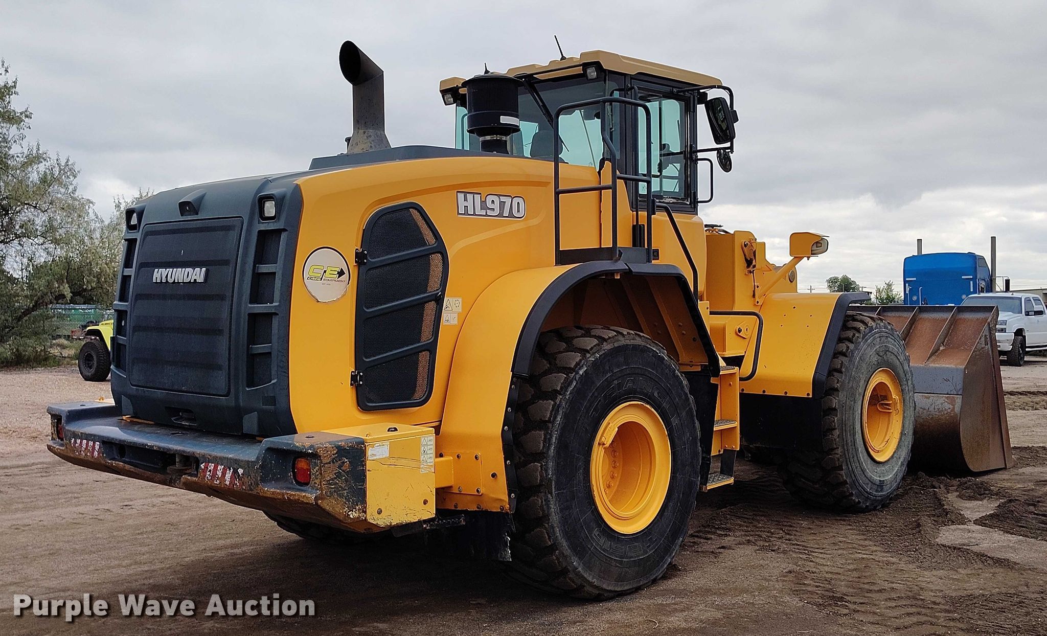 Purple Wave is selling a used Wheel Loader in Colorado. This item is a 2014 Hyundai HL970 wheel loader with the following: Hours: 9,529 on meter, Serial: HHJKHW700EG0000123