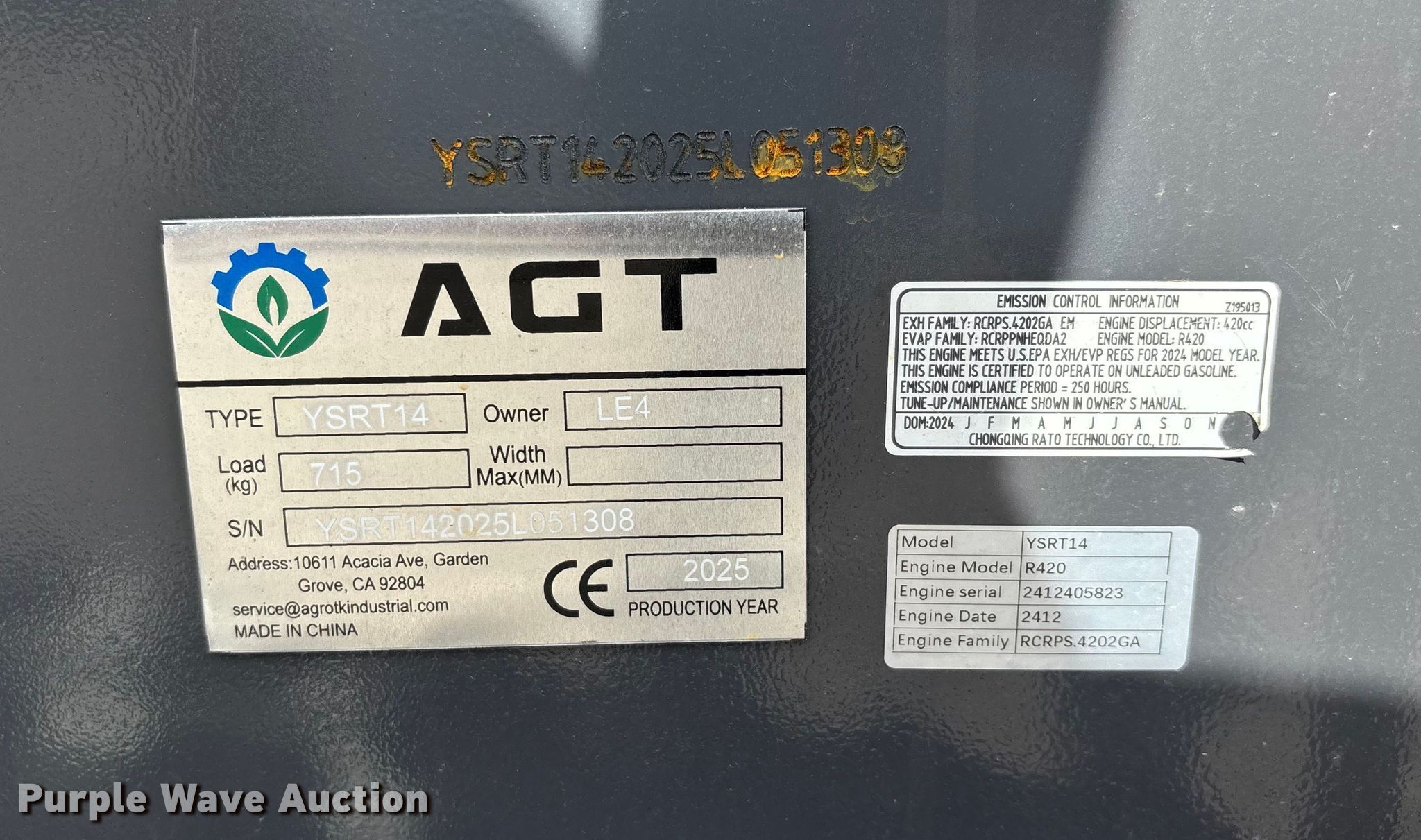 Purple Wave is selling a used Compact Utility Loader in Missouri. This item is a 2025 AGT YSRT14 compact utility loader with the following: Hours: 1 on meter, Serial: YSRT142025L051308