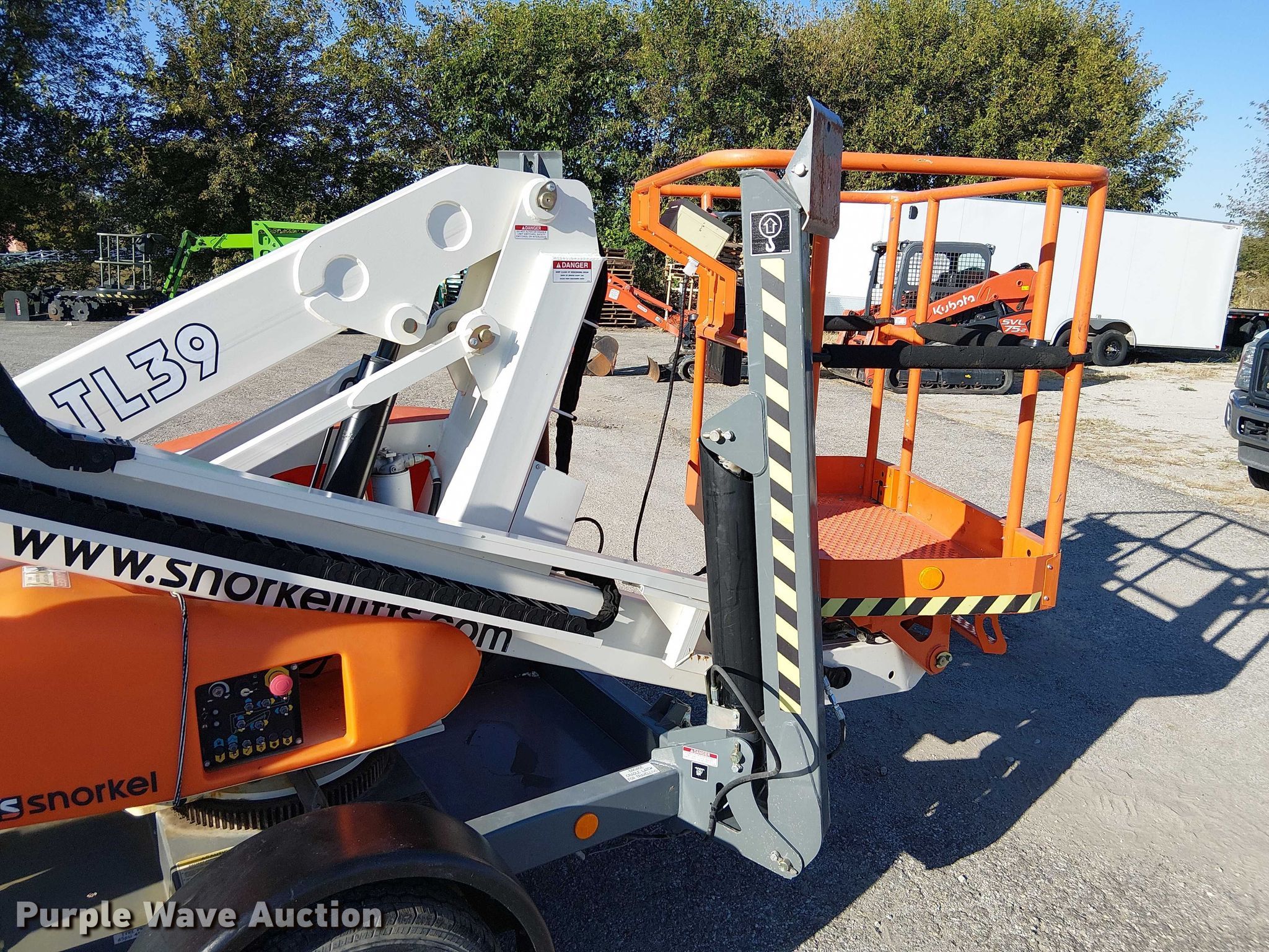 Purple Wave is selling a used Boom Lift in Missouri. This item is a Snorkel TL39 boom lift with the following: Hours: Unknown, VIN: 7A9TL3904ML003049, Serial: TL39-07-210400049