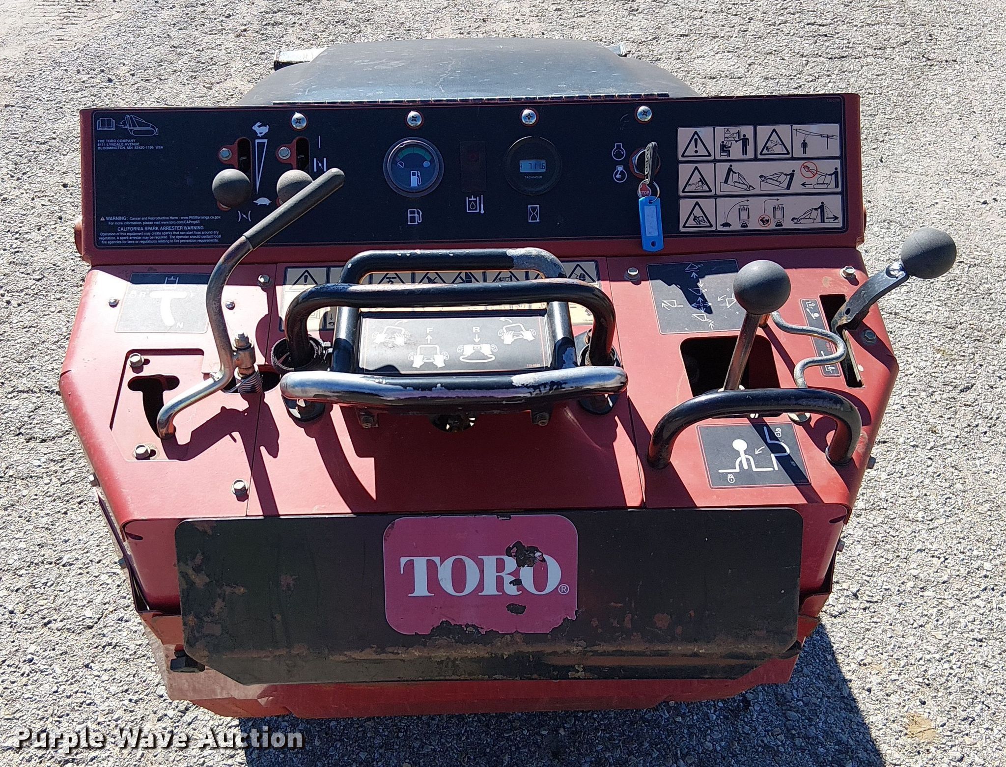 Toro Dingo TX-427 compact utility loader. Serial: 404684830. Engine Kohler CH740, Displacement: 725cc, Cylinders: 2, Fuel type: Gas. Transmission Hydrostatic. Operators station Bucket control: Hand. Features Auxiliary hydraulics, Quick coupler: Manual, Bucket Width: 34", Cutting edge: Weld-on. Tracks Width: 6". Notes Tracks damaged. NERD'S Hardware. Lexington, MO 64067