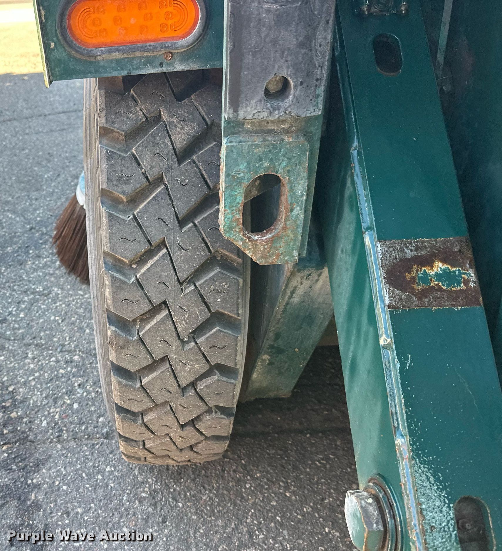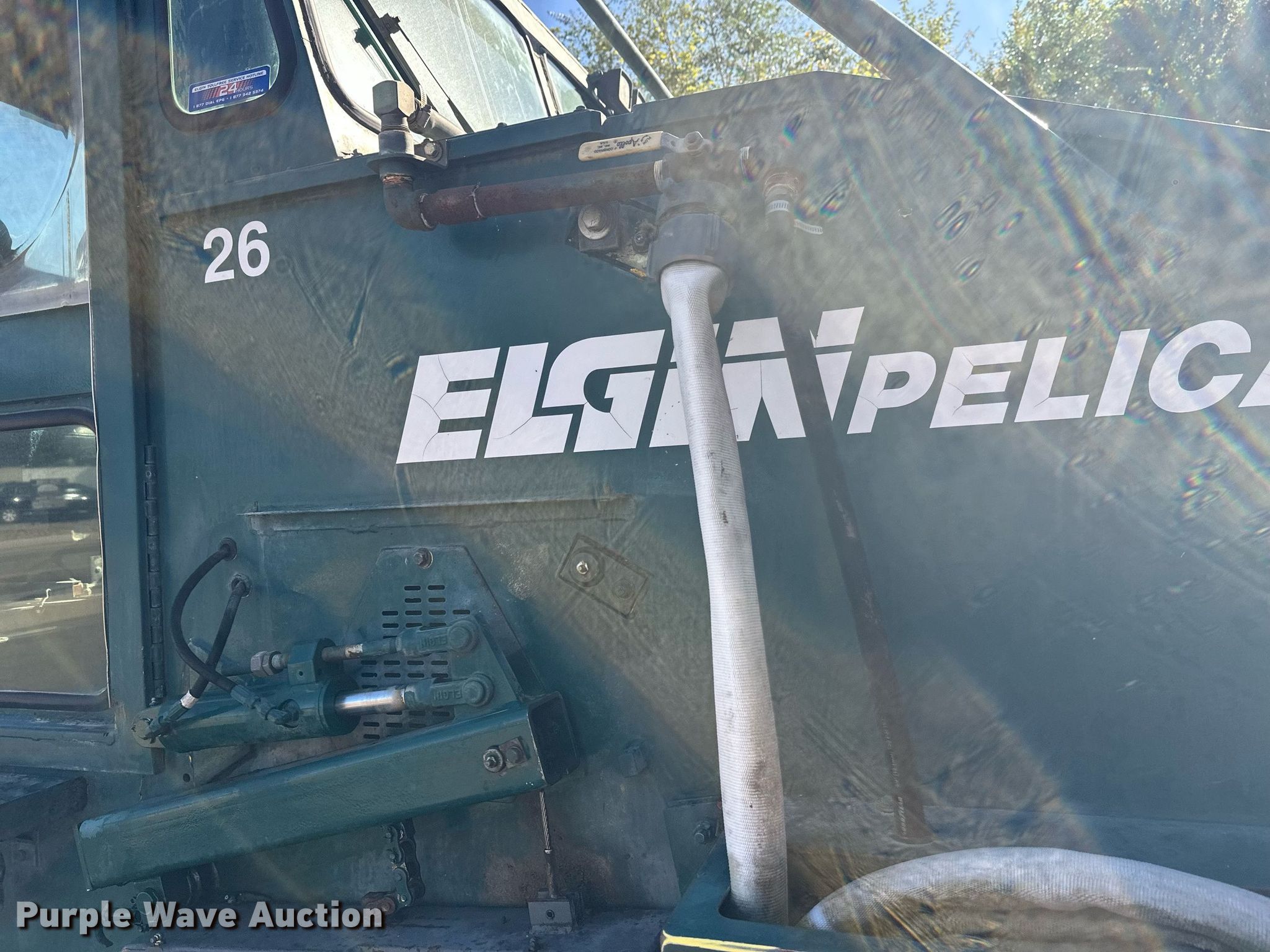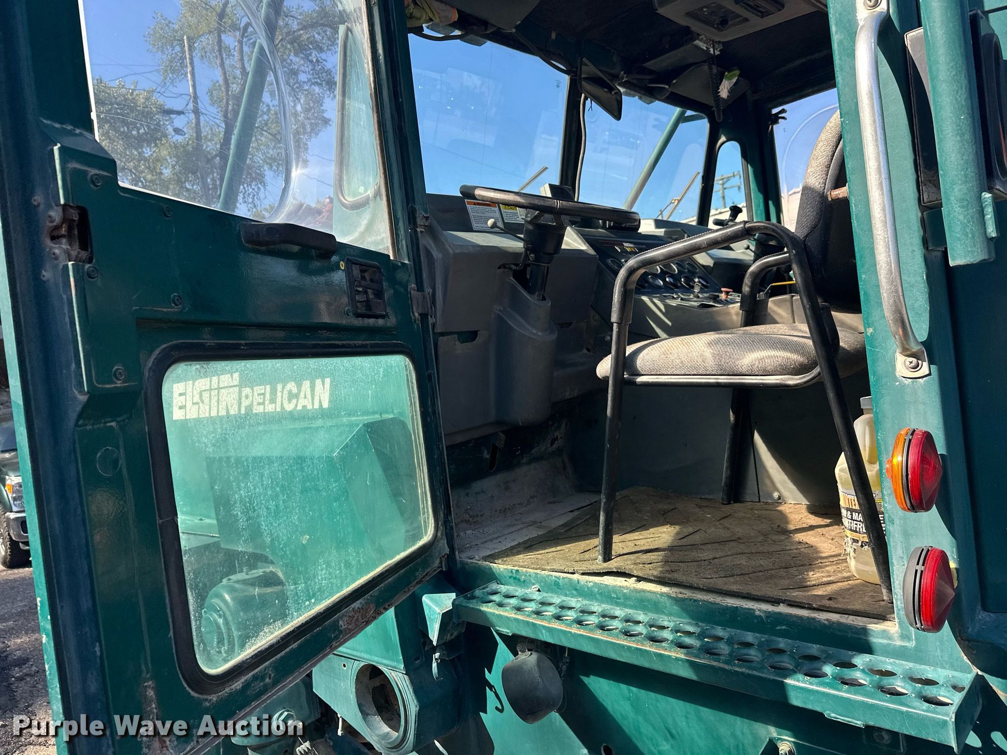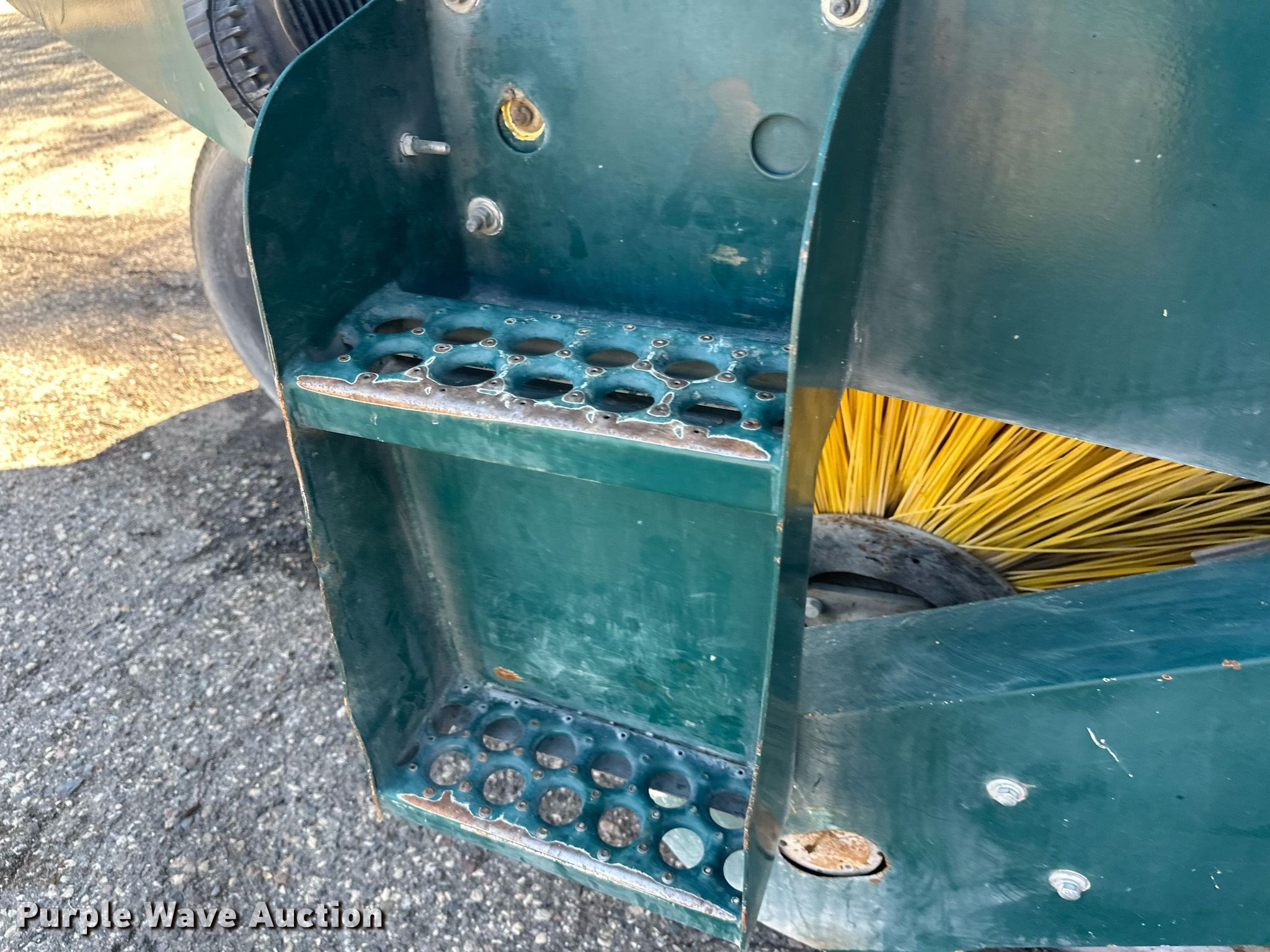 Elgin Pelican street sweeper. Hours: 15,766 on meter. Engine John Deere 4045, Displacement: 4.5L, Cylinders: 4, Fuel type: Diesel. Transmission Hydrostatic. Chassis Suspension: Spring, Brakes: Hydraulic. Operators station AC, Heat, Dual operating station. Features Sweeper bed type: Conveyor, Broom Width: 72", Right gutter broom Diameter: 24", Water spray system. Tires Front: 11R22.5, Rear: 9R17.5. Notes Parking brake removed. This is worksite support equipment and will not come with a title. Transfer of ownership documentation will be a bill of sale. Mike McPhillips, Incorporated. Lake Elmo, MN 55042