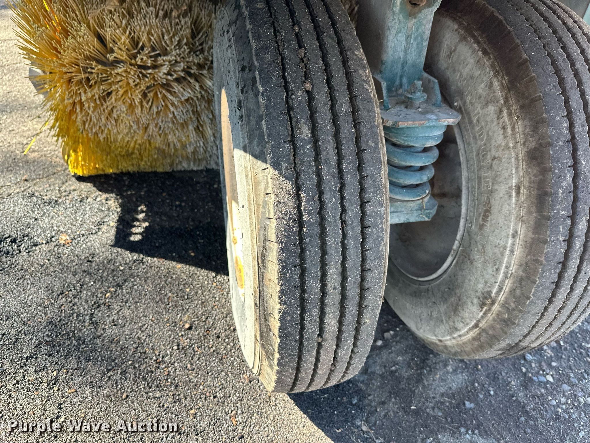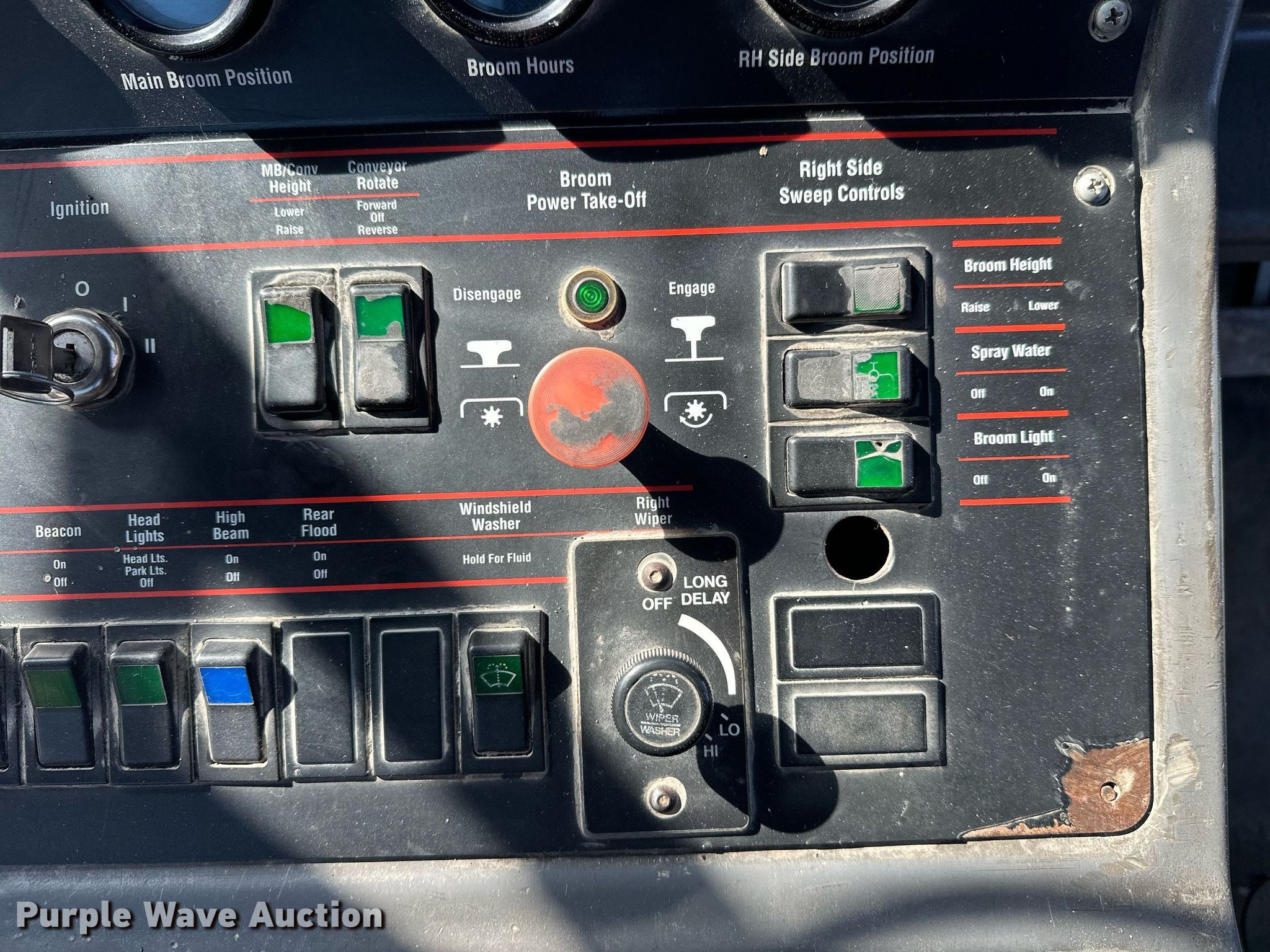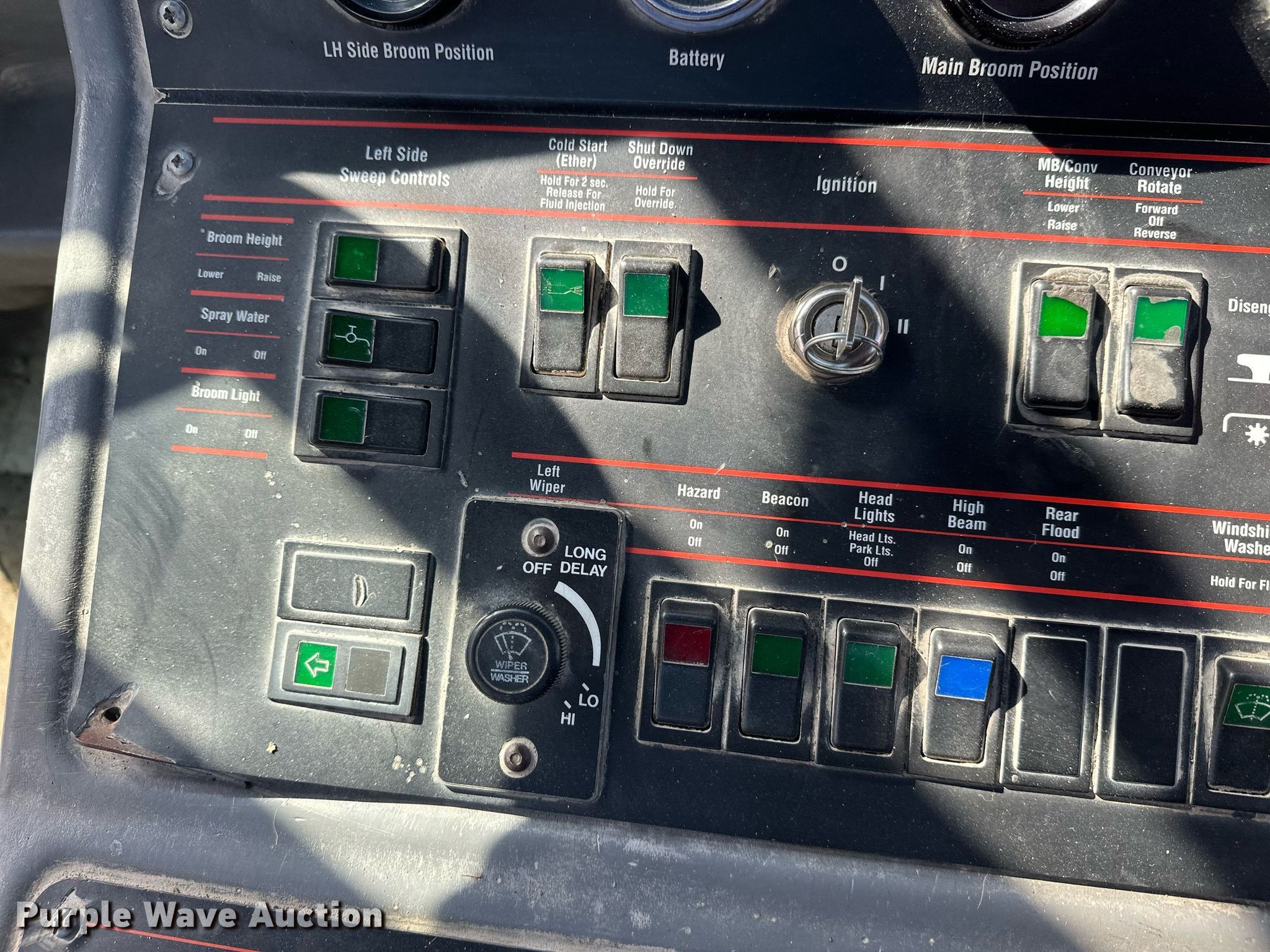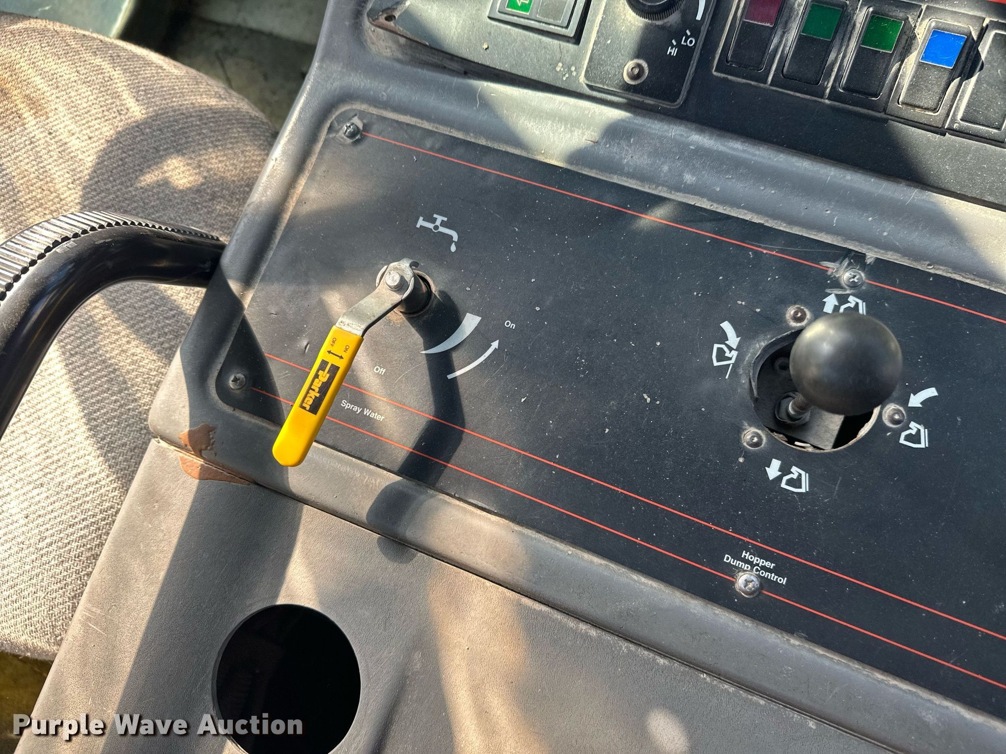 Elgin Pelican street sweeper. Hours: 15,766 on meter. Engine John Deere 4045, Displacement: 4.5L, Cylinders: 4, Fuel type: Diesel. Transmission Hydrostatic. Chassis Suspension: Spring, Brakes: Hydraulic. Operators station AC, Heat, Dual operating station. Features Sweeper bed type: Conveyor, Broom Width: 72", Right gutter broom Diameter: 24", Water spray system. Tires Front: 11R22.5, Rear: 9R17.5. Notes Parking brake removed. This is worksite support equipment and will not come with a title. Transfer of ownership documentation will be a bill of sale. Mike McPhillips, Incorporated. Lake Elmo, MN 55042