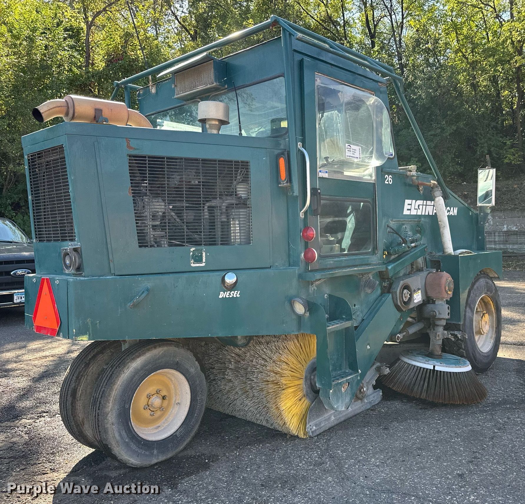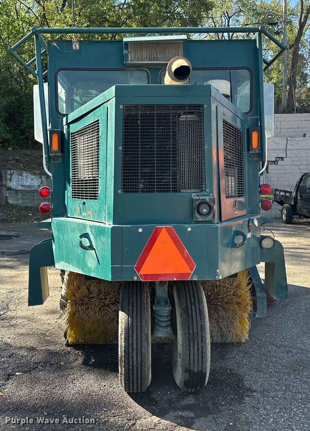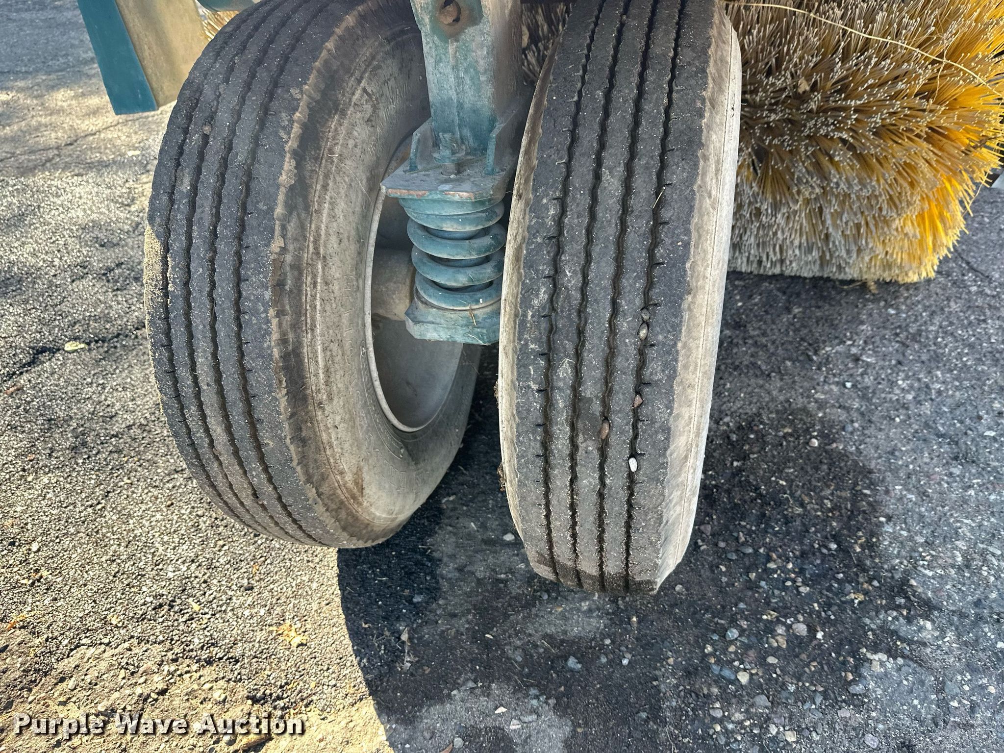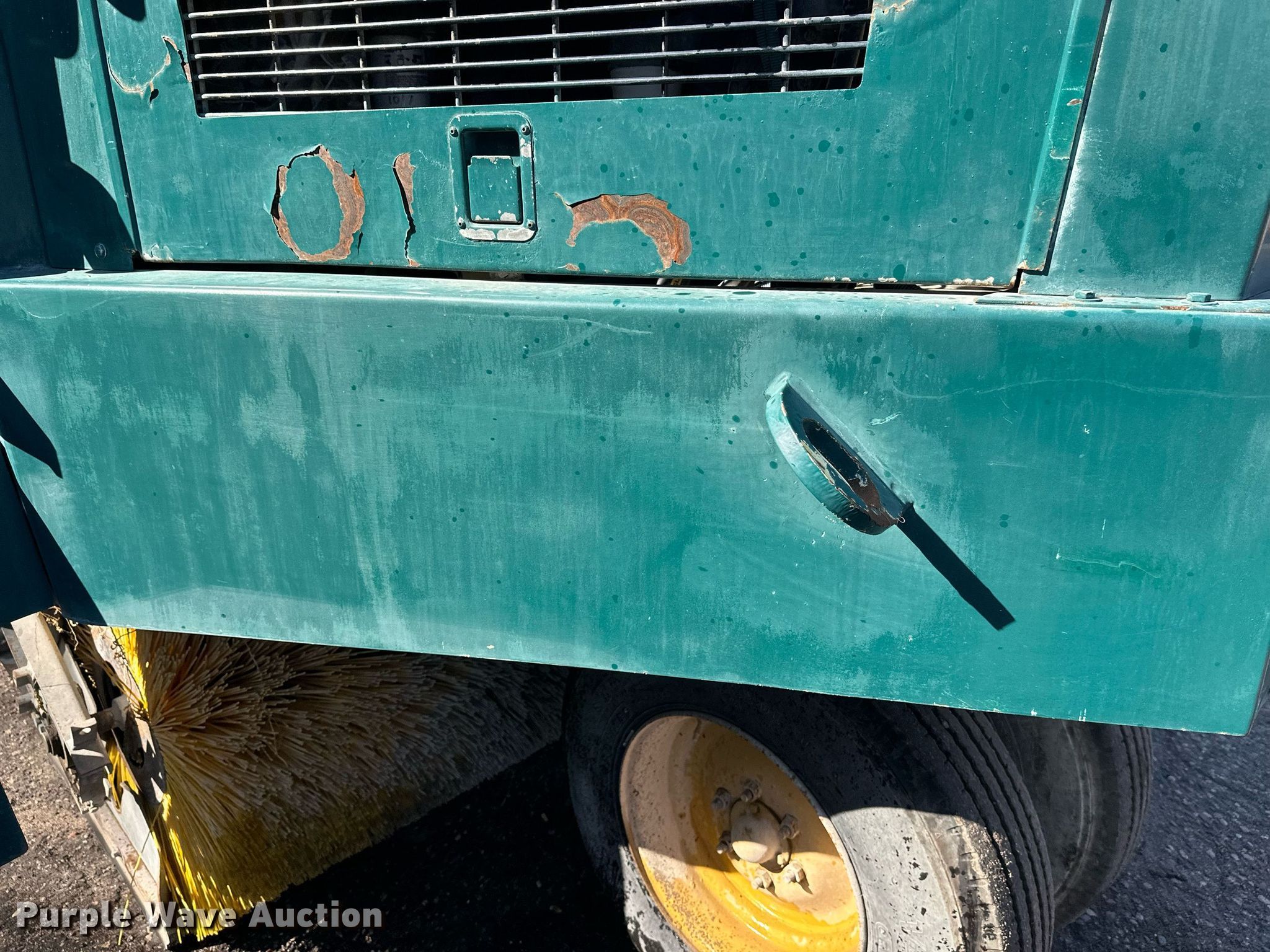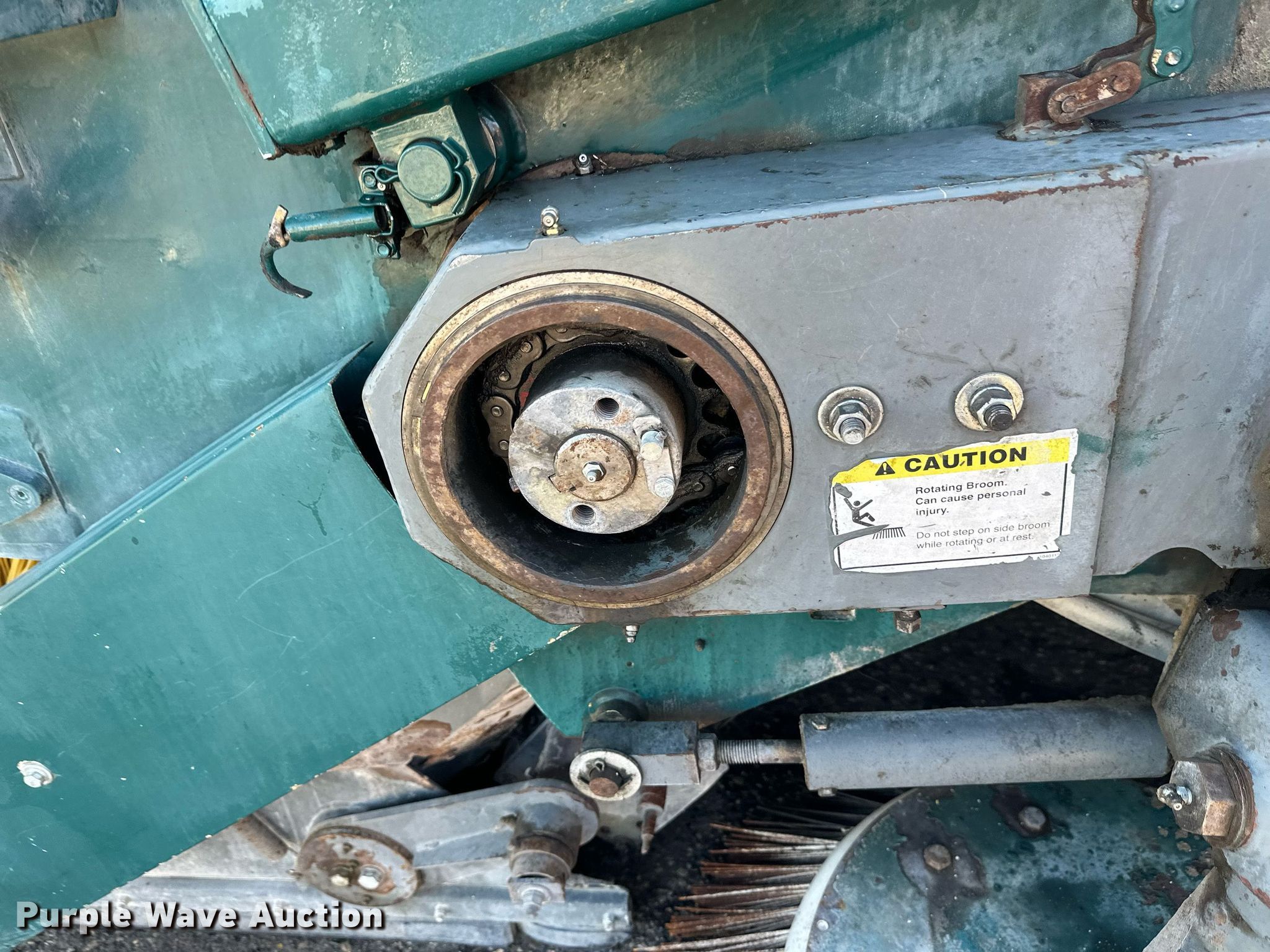 Elgin Pelican street sweeper. Hours: 15,766 on meter. Engine John Deere 4045, Displacement: 4.5L, Cylinders: 4, Fuel type: Diesel. Transmission Hydrostatic. Chassis Suspension: Spring, Brakes: Hydraulic. Operators station AC, Heat, Dual operating station. Features Sweeper bed type: Conveyor, Broom Width: 72", Right gutter broom Diameter: 24", Water spray system. Tires Front: 11R22.5, Rear: 9R17.5. Notes Parking brake removed. This is worksite support equipment and will not come with a title. Transfer of ownership documentation will be a bill of sale. Mike McPhillips, Incorporated. Lake Elmo, MN 55042