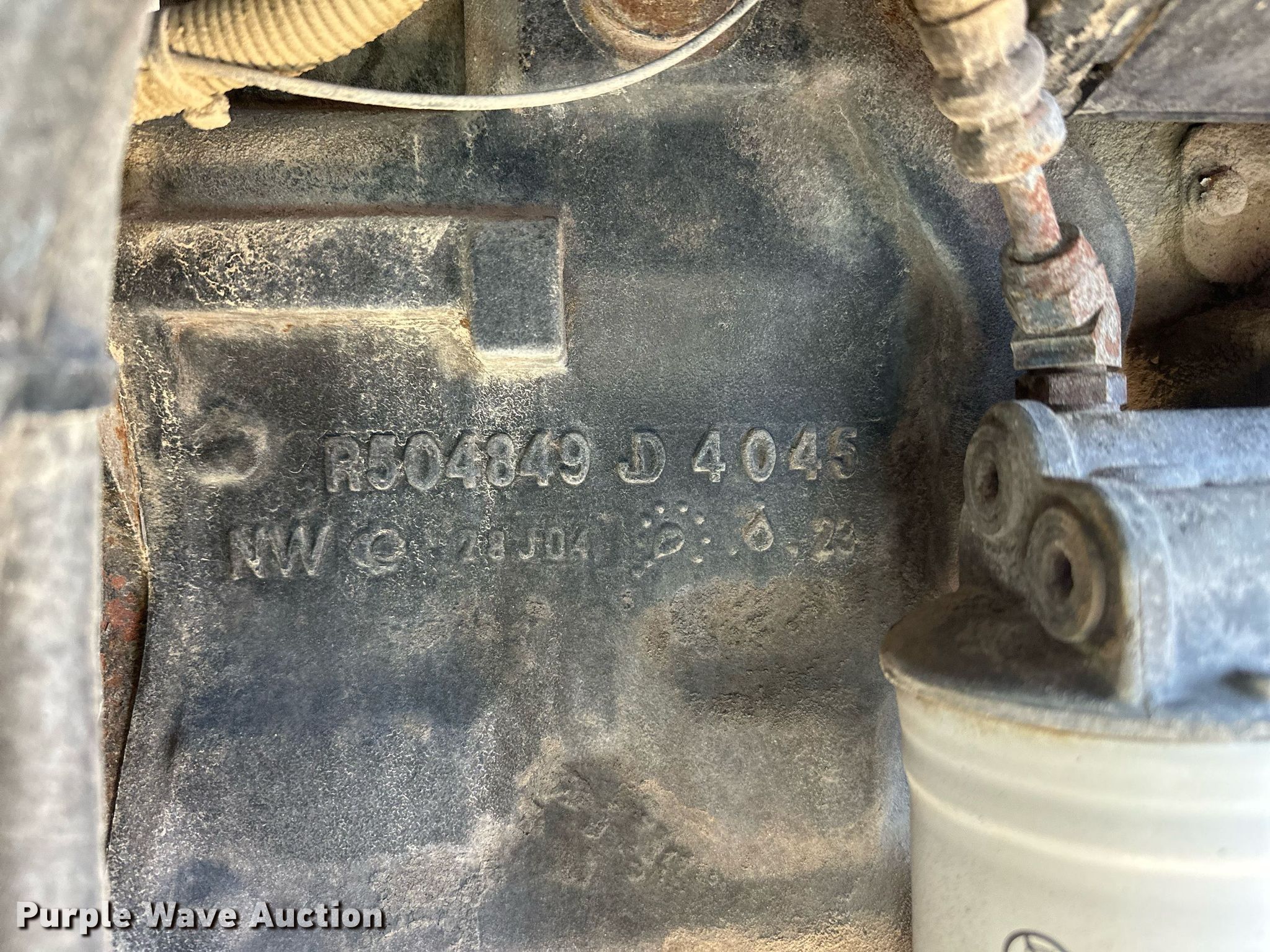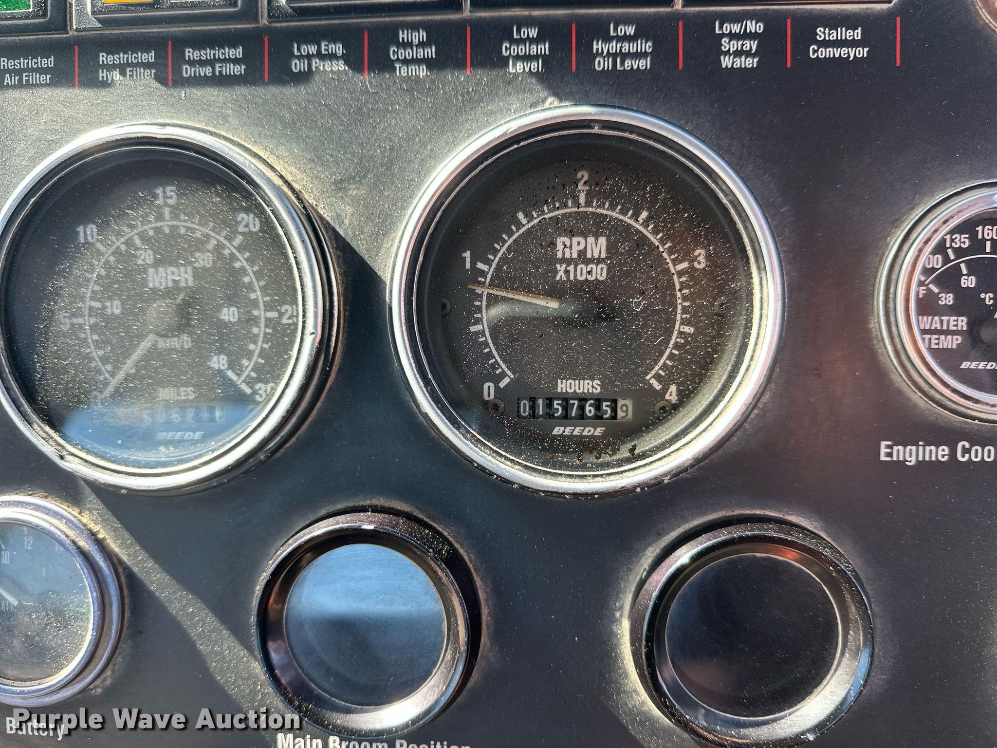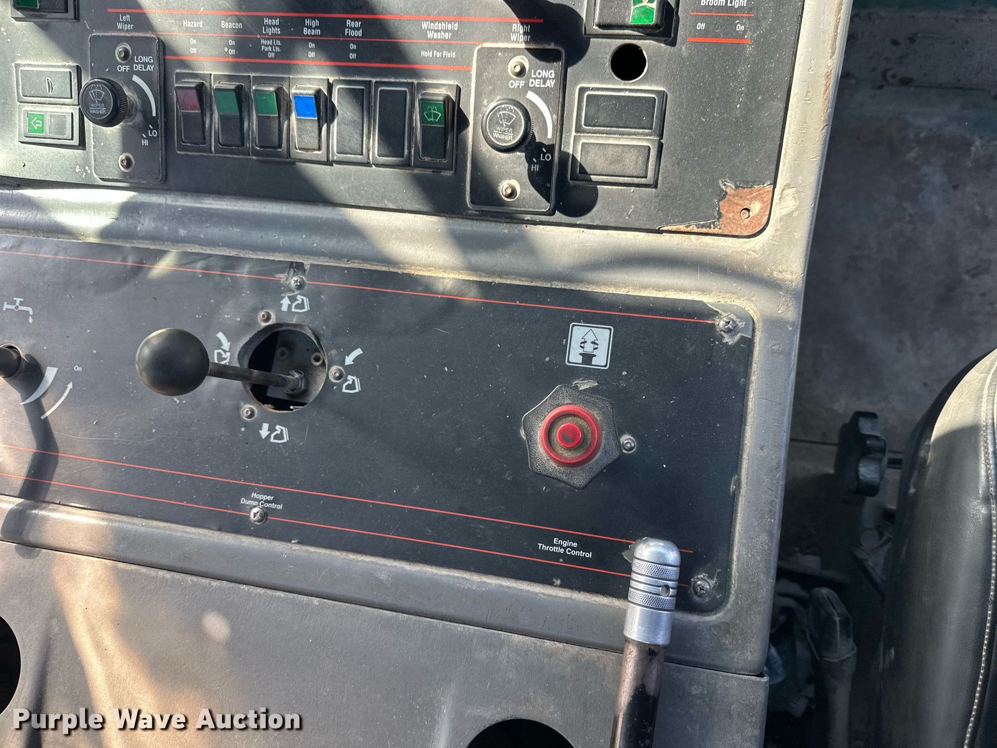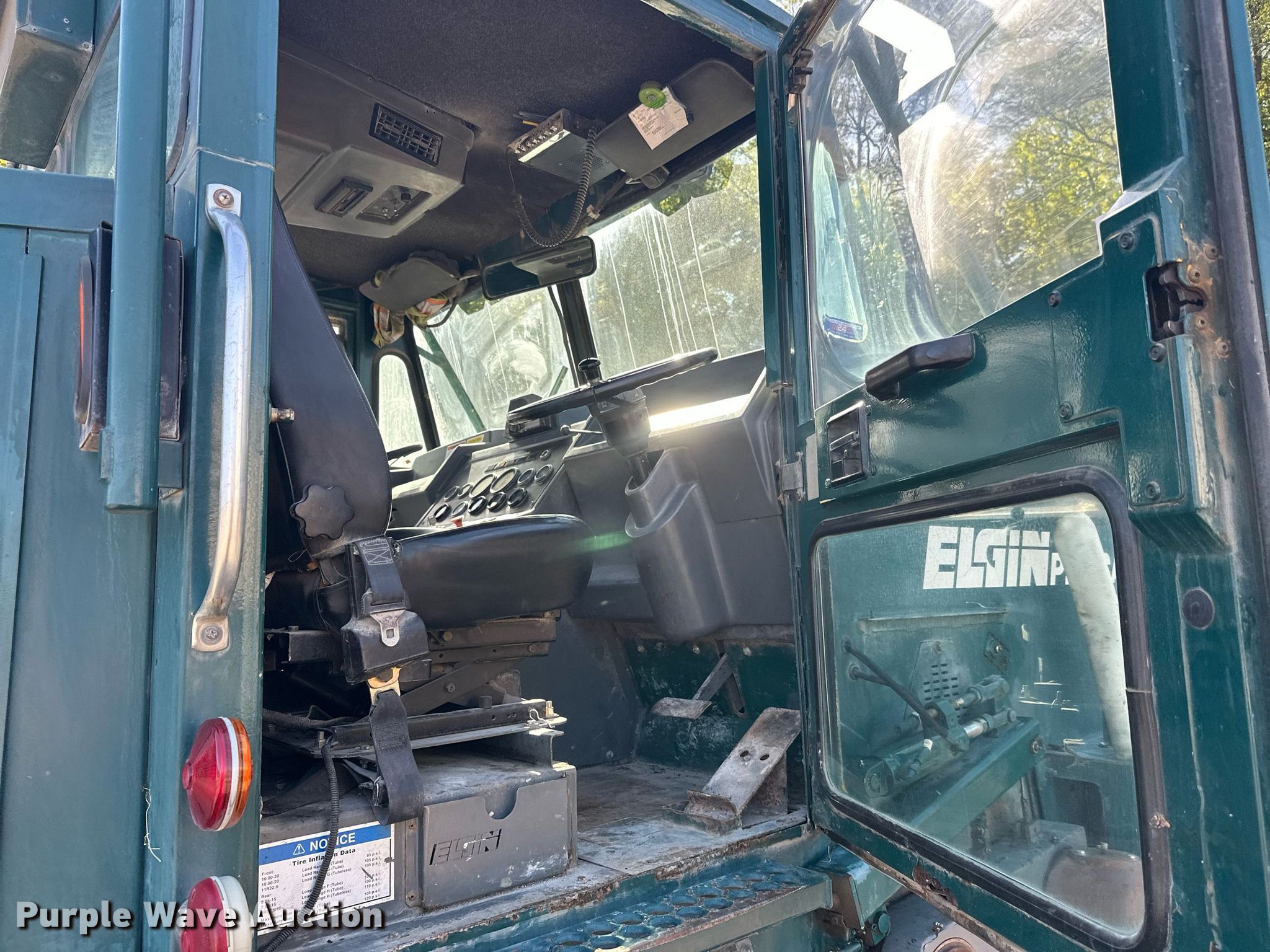 Elgin Pelican street sweeper. Hours: 15,766 on meter. Engine John Deere 4045, Displacement: 4.5L, Cylinders: 4, Fuel type: Diesel. Transmission Hydrostatic. Chassis Suspension: Spring, Brakes: Hydraulic. Operators station AC, Heat, Dual operating station. Features Sweeper bed type: Conveyor, Broom Width: 72", Right gutter broom Diameter: 24", Water spray system. Tires Front: 11R22.5, Rear: 9R17.5. Notes Parking brake removed. This is worksite support equipment and will not come with a title. Transfer of ownership documentation will be a bill of sale. Mike McPhillips, Incorporated. Lake Elmo, MN 55042