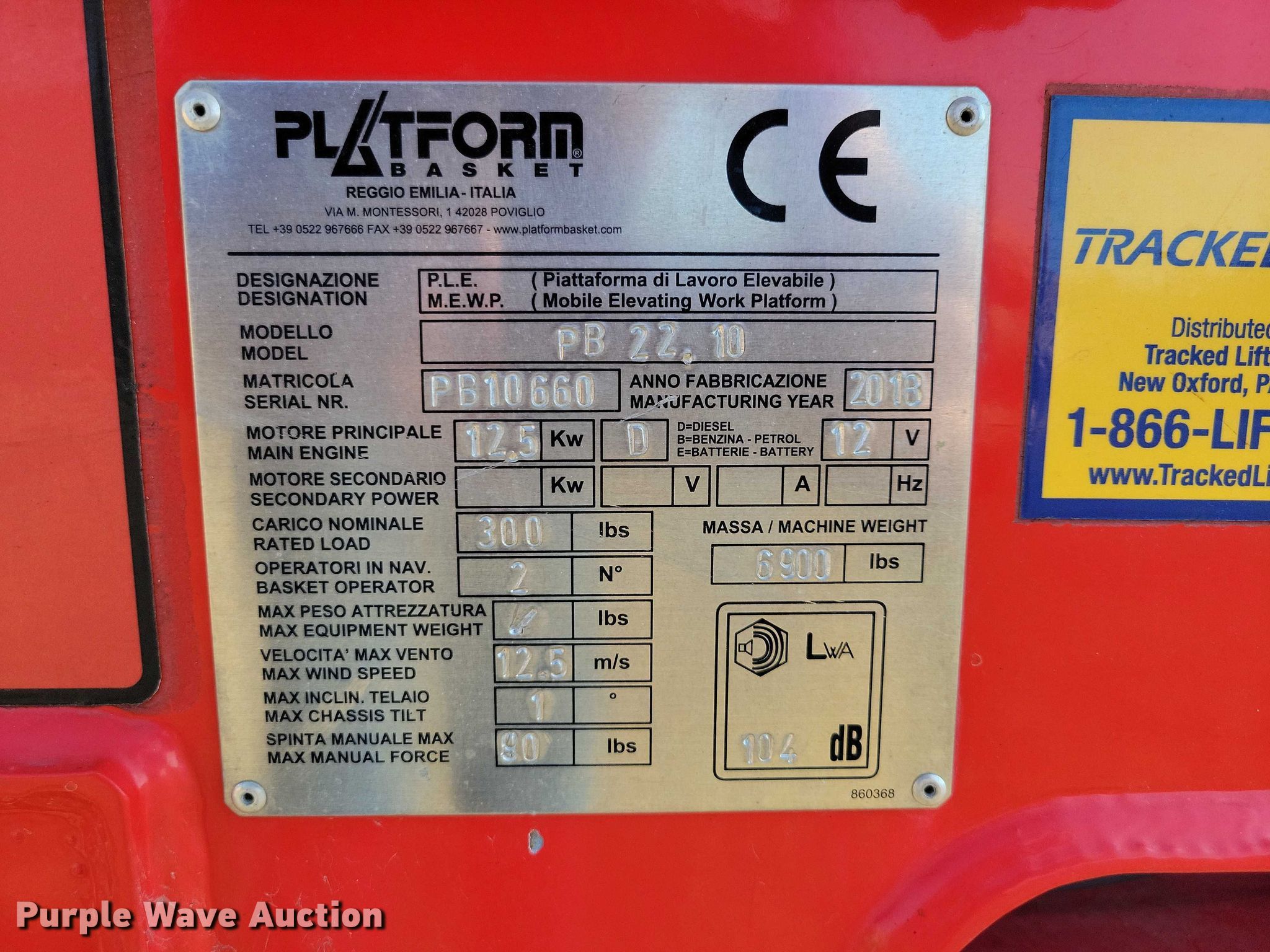 This 2018 Platform Basket PB 22.10 tracked boom lift will sell to the highest bidder regardless of price.