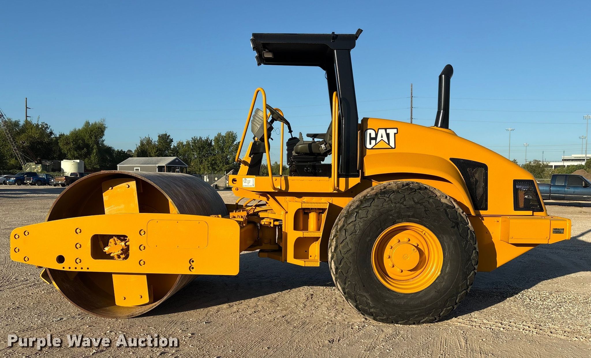 Purple Wave is selling a used Single Drum Roller Compactor in Texas. This item is a 2004 Caterpillar CS-563E single drum vibratory roller with the following: Hours: 531 on meter, Serial: CATCS563PCNG00810