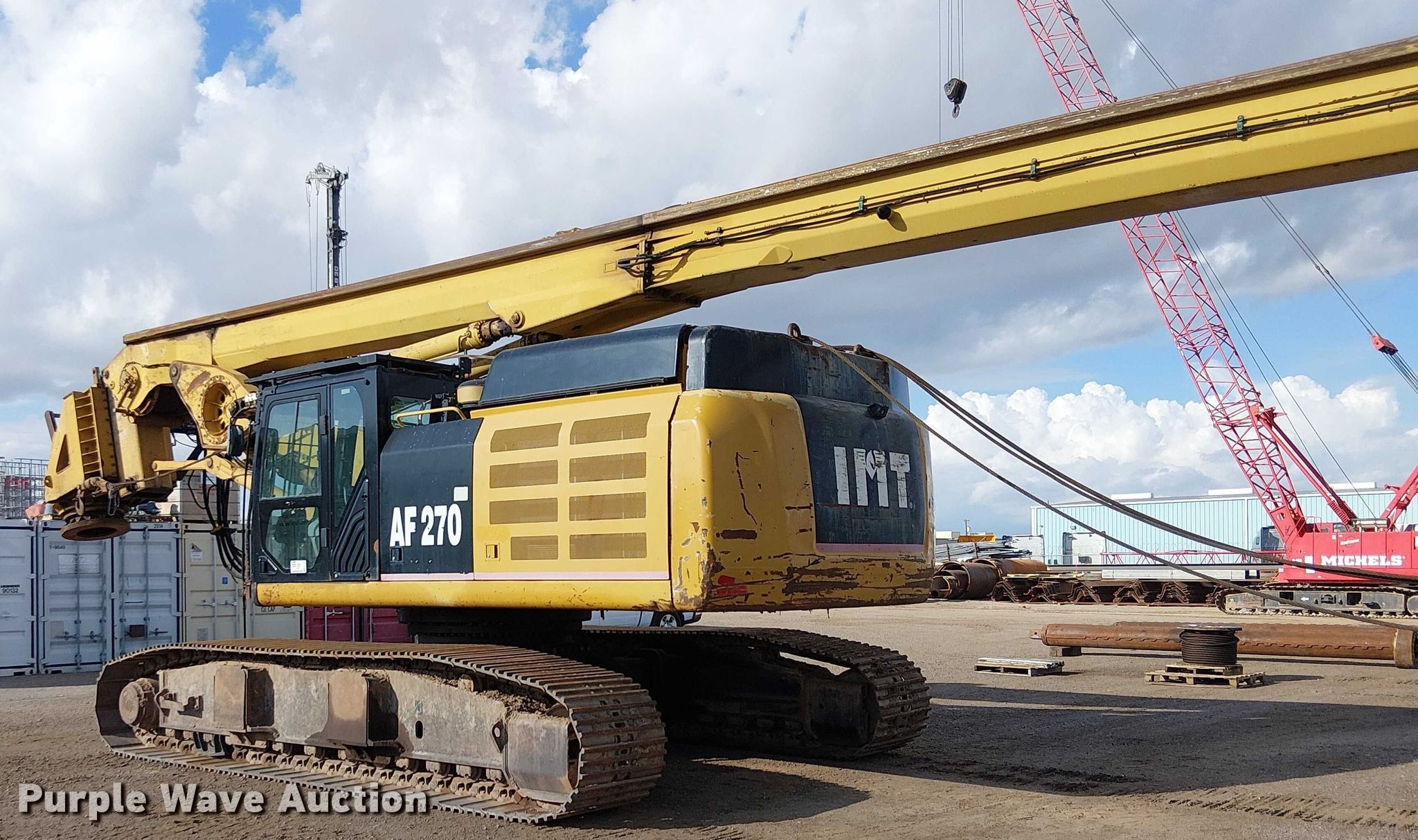 2012 IMT AF270E drilling rig. Hours: 8,482 on meter, Hours: 8,481 on second meter, VIN: CAT0349EHS3P00205. Engine Caterpillar C13, Displacement: 12.5L, Cylinders: 6, Fuel type: Diesel. Transmission Hydrostatic. Interior AC, Heat. Features Bed/ drill Serial: S3P00205, Length: 51', Width: 168", Mast height: 74', Kelly bar. Tracks Width: 31", Steel. Notes Additional parts included Winch cable, Wear plates. Michels Corporation. Peoria, AZ 85345