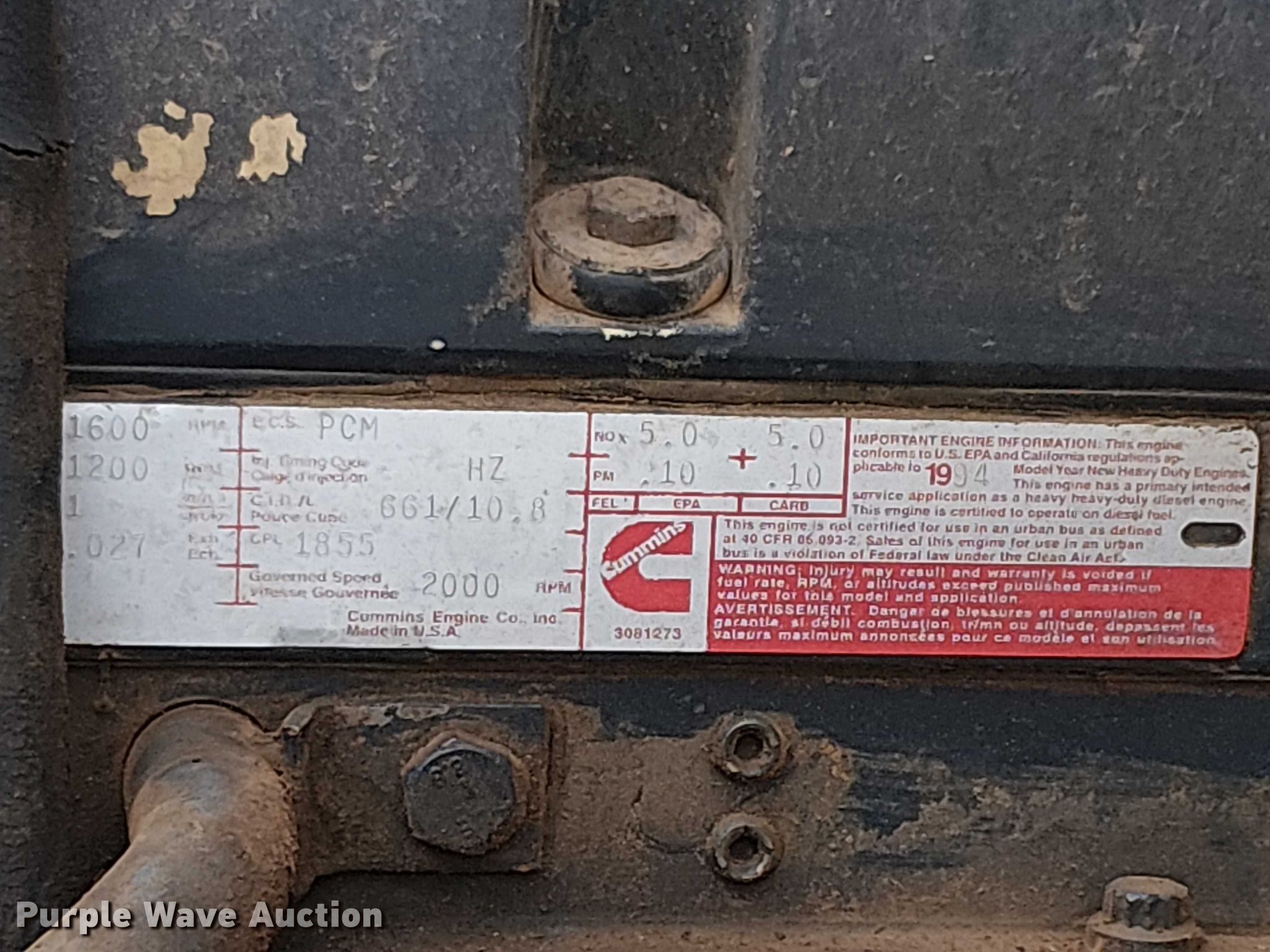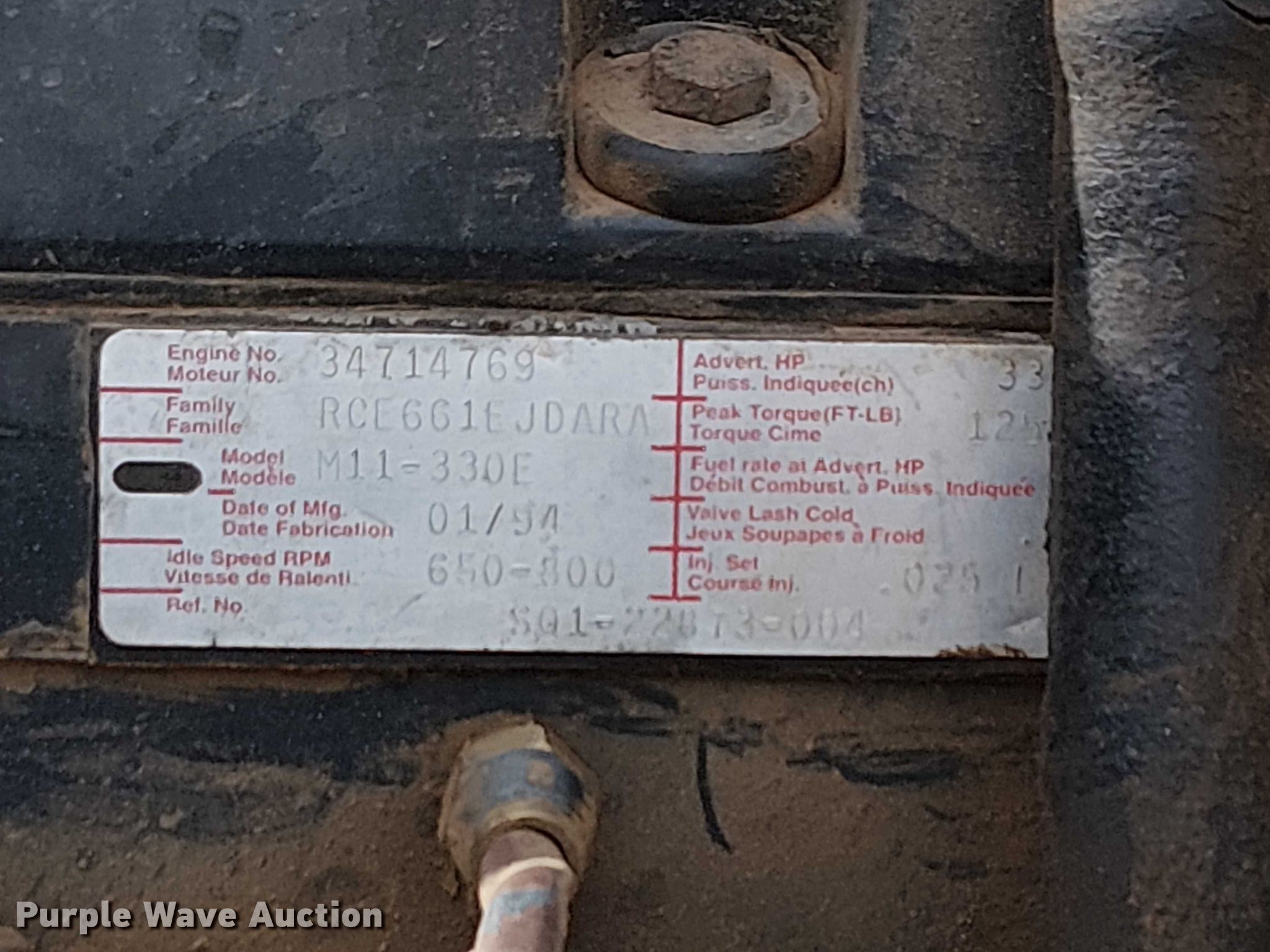 1994 Freightliner FLD120 water truck. Miles: 271,346 on odometer, Hours: 3,245 on meter, VIN: 1FUYDMCB8RP638165. Engine Cummins M-11, Displacement: 10.8L, Cylinders: 6, Fuel type: Diesel, HP: 276. Transmission Eaton Fuller, Manual, Speed: 8. Chassis Axles: Tandem, Differential lock: Inter-axle, Suspension: Air, Brakes: Air, PTO, GVWR: 52,000 lbs. Interior Cruise control. Features Bed Tank bed, Length: 15', Width: 8', Spray bar: Front, Rear, Side discharge, Top fill, Rear outlet: 3". Tires Size: 11R22.5. Notes Push button start, Windshield chipped or cracked, Key not included, Non-operational drivers window. Arizona title. Title distribution may be delayed up to 30 days from verification of funds. Offsite Sweeping. Phoenix, AZ 85034