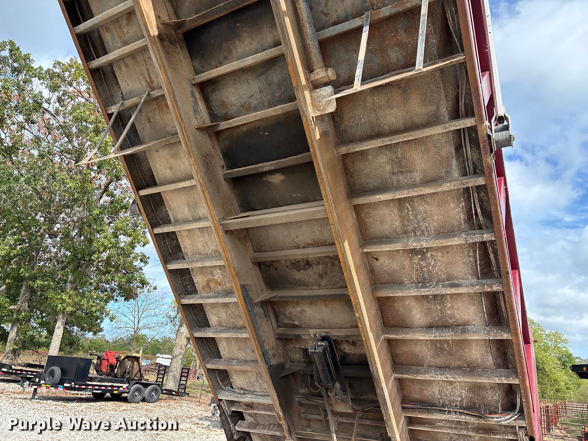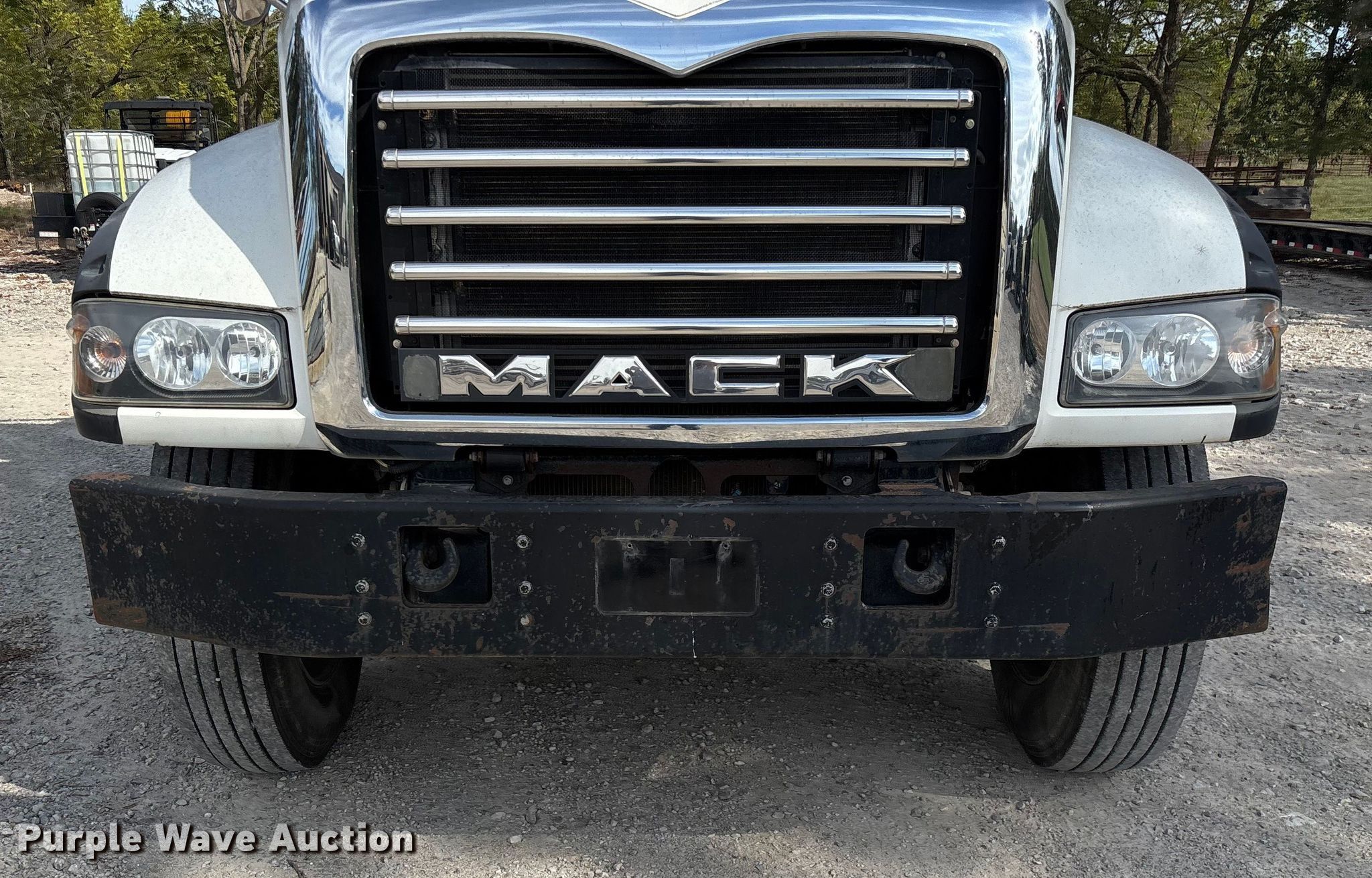 2008 Mack Granite dump truck. Miles: 294,376 on odometer, Hours: 17,901 on meter, VIN: 1M2AX04Y38M001756. Engine Mack MP7, Cylinders: 6, Fuel type: Diesel. Transmission Manual, Speed: 13. Chassis Axles: Tandem, Differential lock: Inter-axle, Suspension: Camelback, Brakes: Air, PTO, GVWR: 51,220 lbs. Interior AC, Heat, Cruise control, Brake controller. Features Bed Dump bed, Ox Bodies 13.5 FT 12-14 YDS, Serial: OB607583 AR, Length: 13' 6", Width: 8', Side height: 45", Side board height: 8", Bed type: Steel, Roll tarp, Ram: Single, End gate: Air operated. Tires Size: 11R24.5. Notes Contents not included, Bed rust damage, hole, Dash warning indicator: Electric malfunction, Windshield chipped or cracked. Missouri title. Title distribution may be delayed up to 14 days from verification of funds. Kenny Singer Construction Co.. Aurora, MO 65605