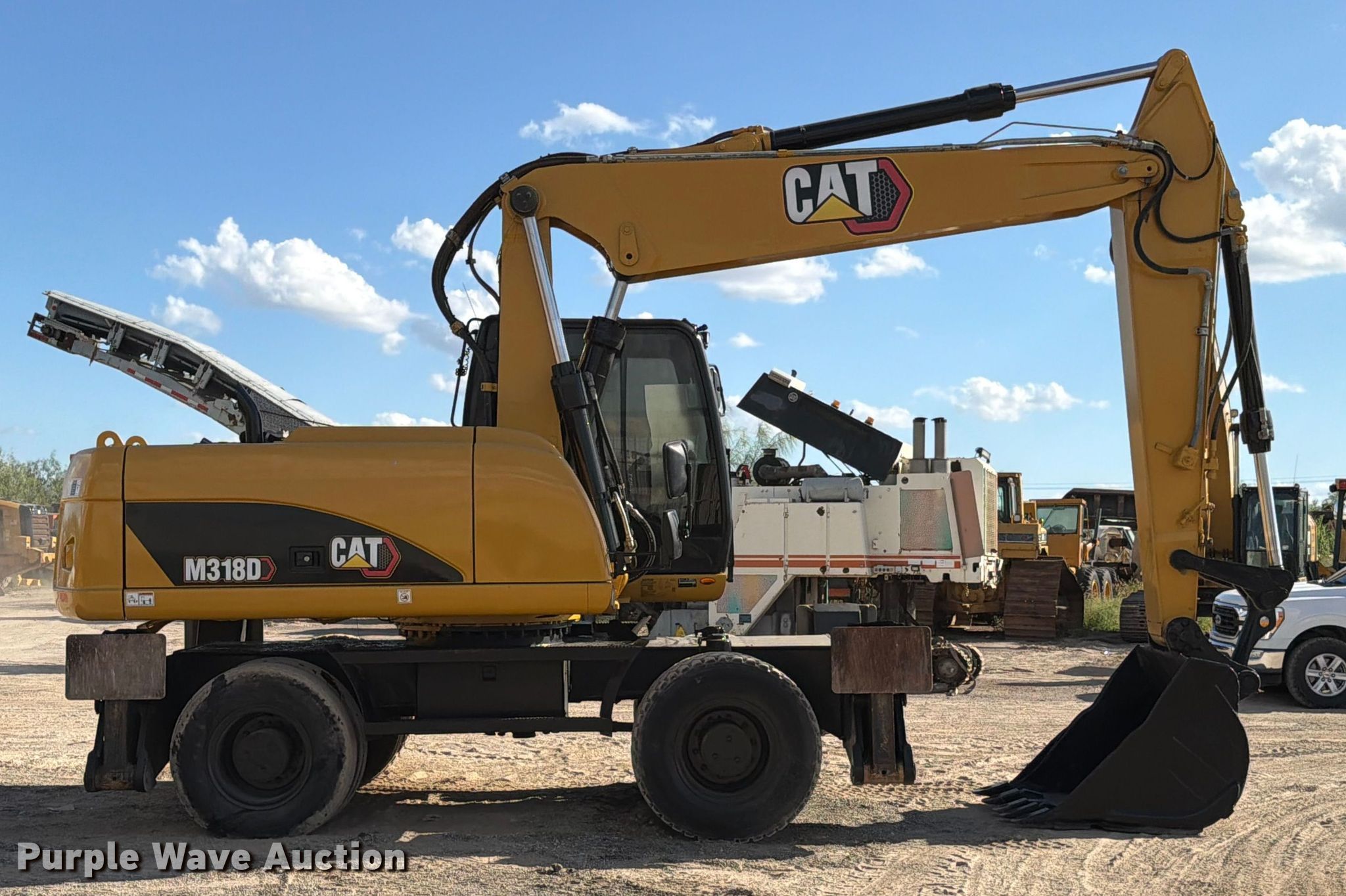 Purple Wave is selling a used Wheeled Excavator in Texas. This item is a 2011 Caterpillar M318D wheeled excavator with the following: Hours: 7,424 on meter, Serial: CATM318DJW8P05334