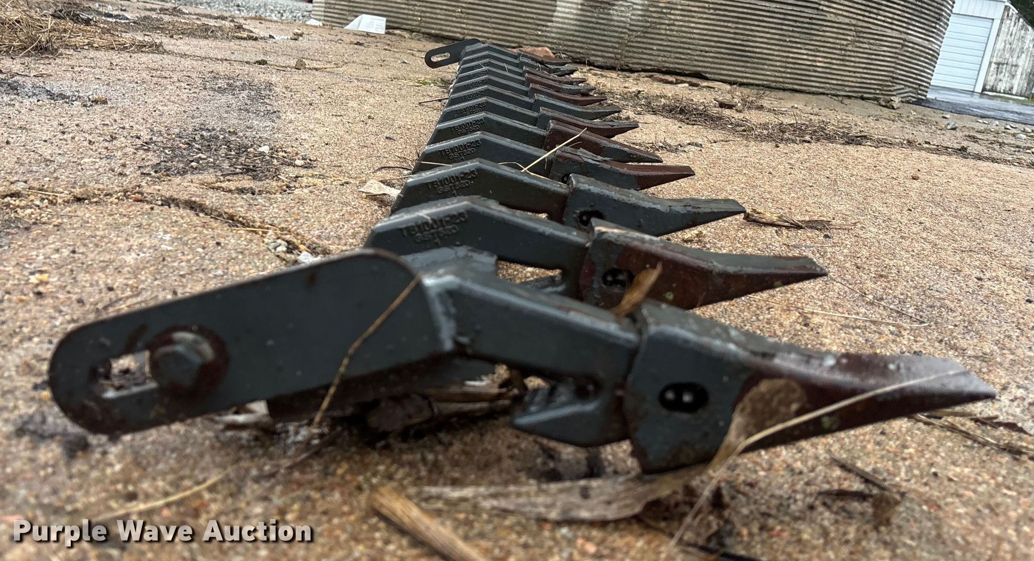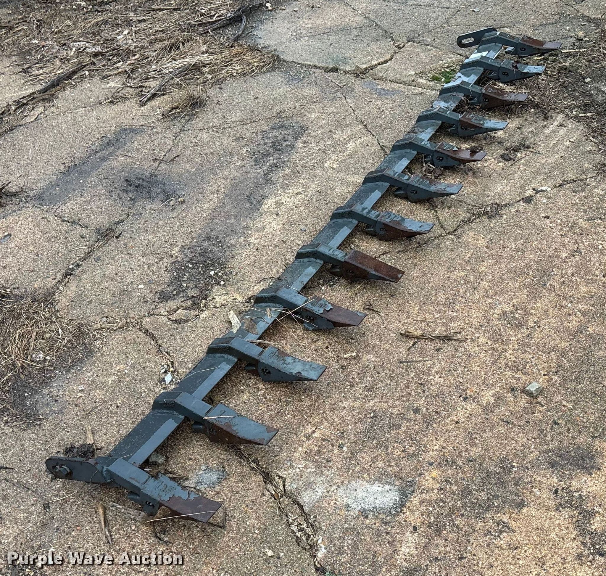 Skid steer bucket cutting edge. Overall Length: 94", Tooth spacing: 8.5". Green Valley Farms. Powhattan, KS 66527