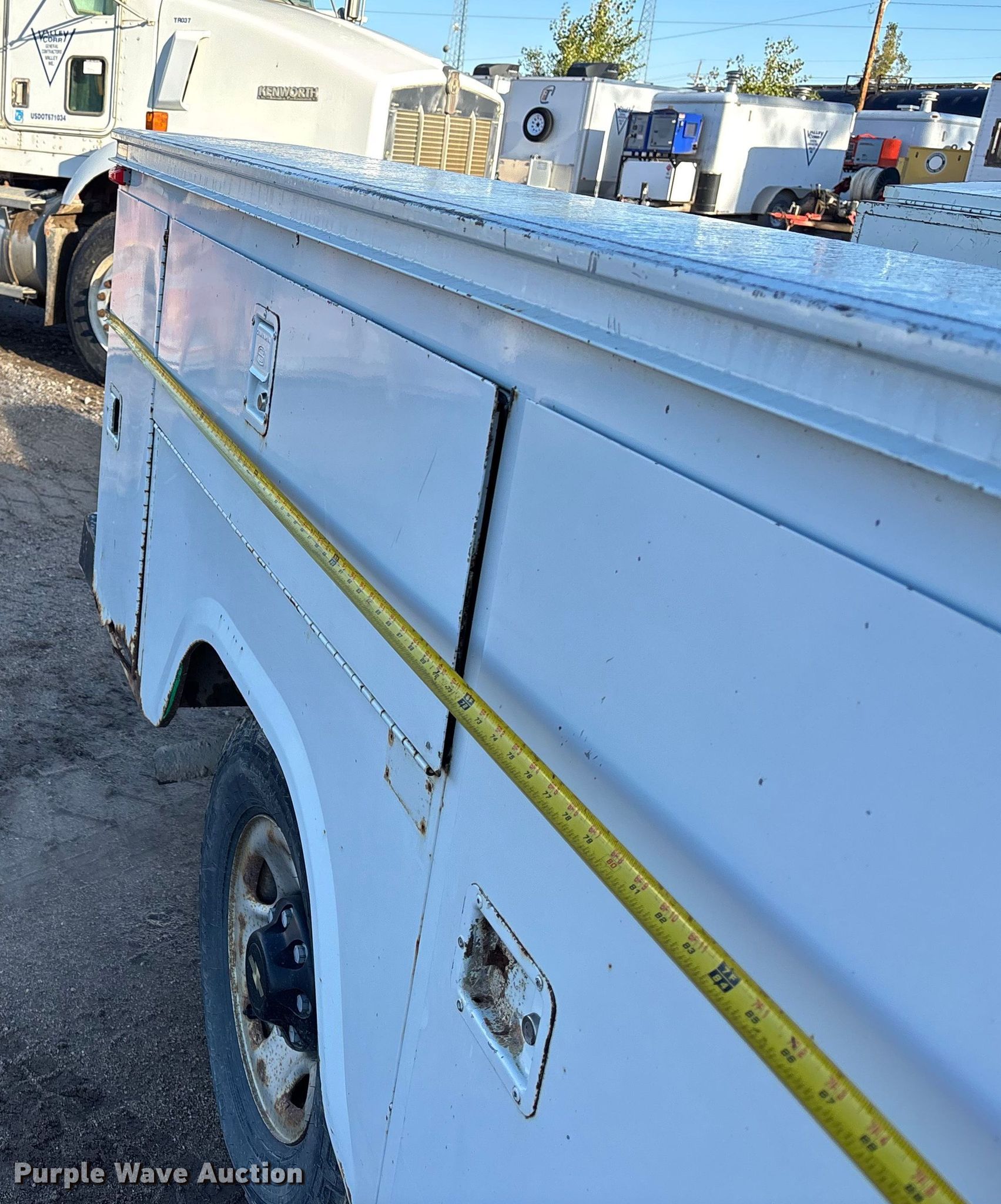 1999 Chevrolet K2500 utility bed pickup truck. Miles: 147,570 on odometer, VIN: 1GBGK24R4XR711403. Engine Displacement: 5.7L V8 OHV, Cylinders: 8, Fuel type: Gas. Transmission Automatic, Four wheel drive. Interior AC, Heat, Cruise control. Features Bed Utility bed, Omaha, Length: 8', Width: 78". Tires Size: 245/75R16. Notes Windshield chipped or cracked, Jump start required during on-site data collection, Driver side utility bed door issue, will not open, Contents included. Nebraska title. Title distribution may be delayed up to 30 days from verification of funds. Valley Corp. Valley, NE 68064