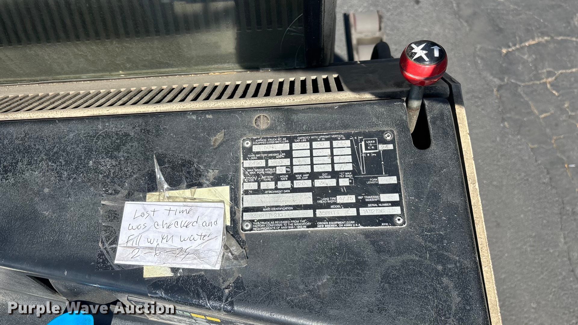 Purple Wave is selling a used Warehouse Forklift in California. This item is a Crown 35RRTT order picker with the following: Hours: 4,483 on meter, Serial: 1A112196