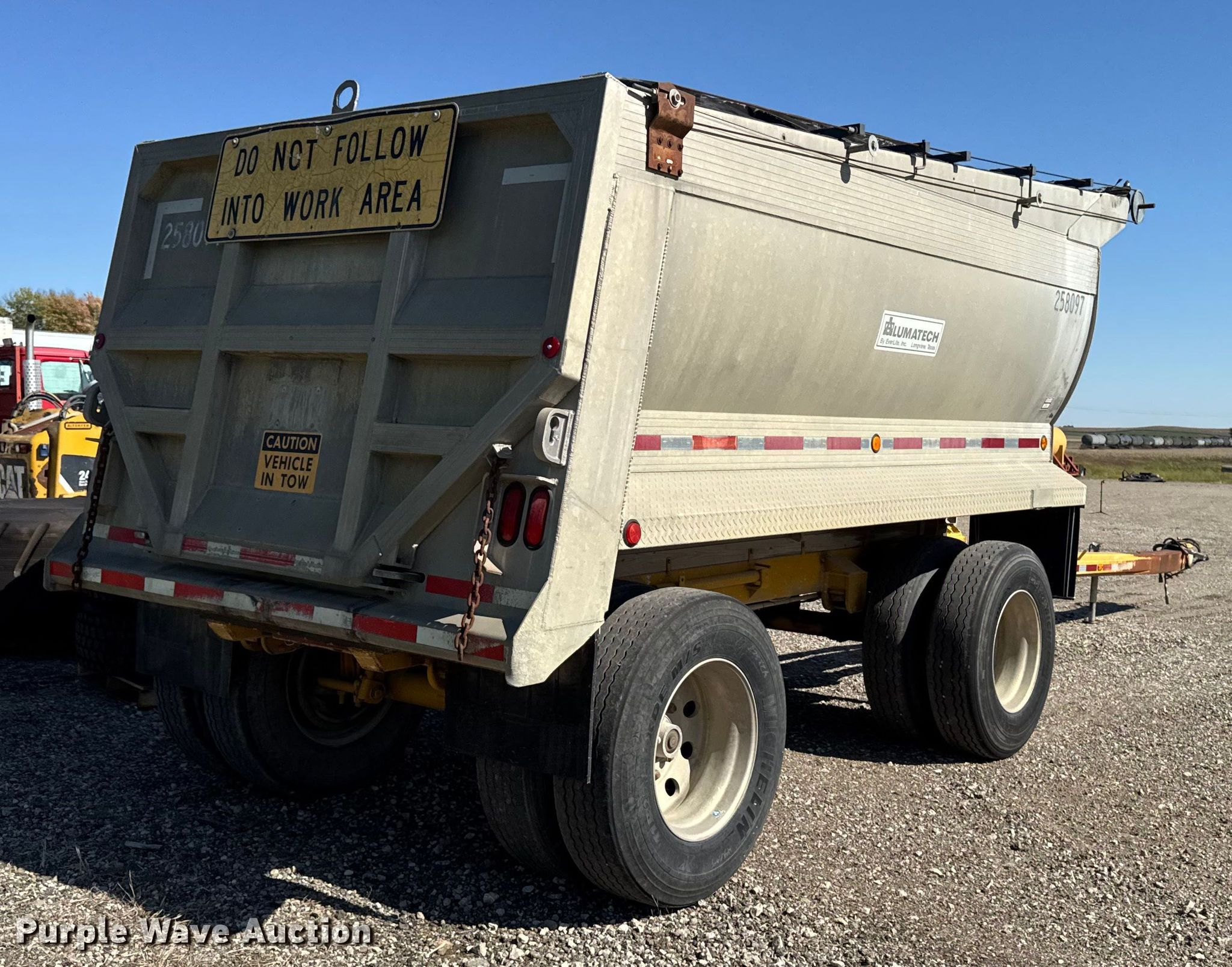 1997 Hawkeye 309 end dump pup trailer. VIN: 1H9AD3029VD309103. Dimensions Overall Length: 35', Width: 96", Body Length: 14', Width: 96", Side height: 64". Features Body type: Aluminum, Ram: Single, End gate: Air operated, Roll tarp. Chassis Hitch: Pintle, Landing gear: Single, Suspension: Spring, Brakes: Air, Axles: Tandem. Tires Aluminum wheels, Size: 11R22.5. Iowa title. Title distribution may be delayed up to 14 days from verification of funds. Manatt's, Inc.. Brooklyn, IA 52211