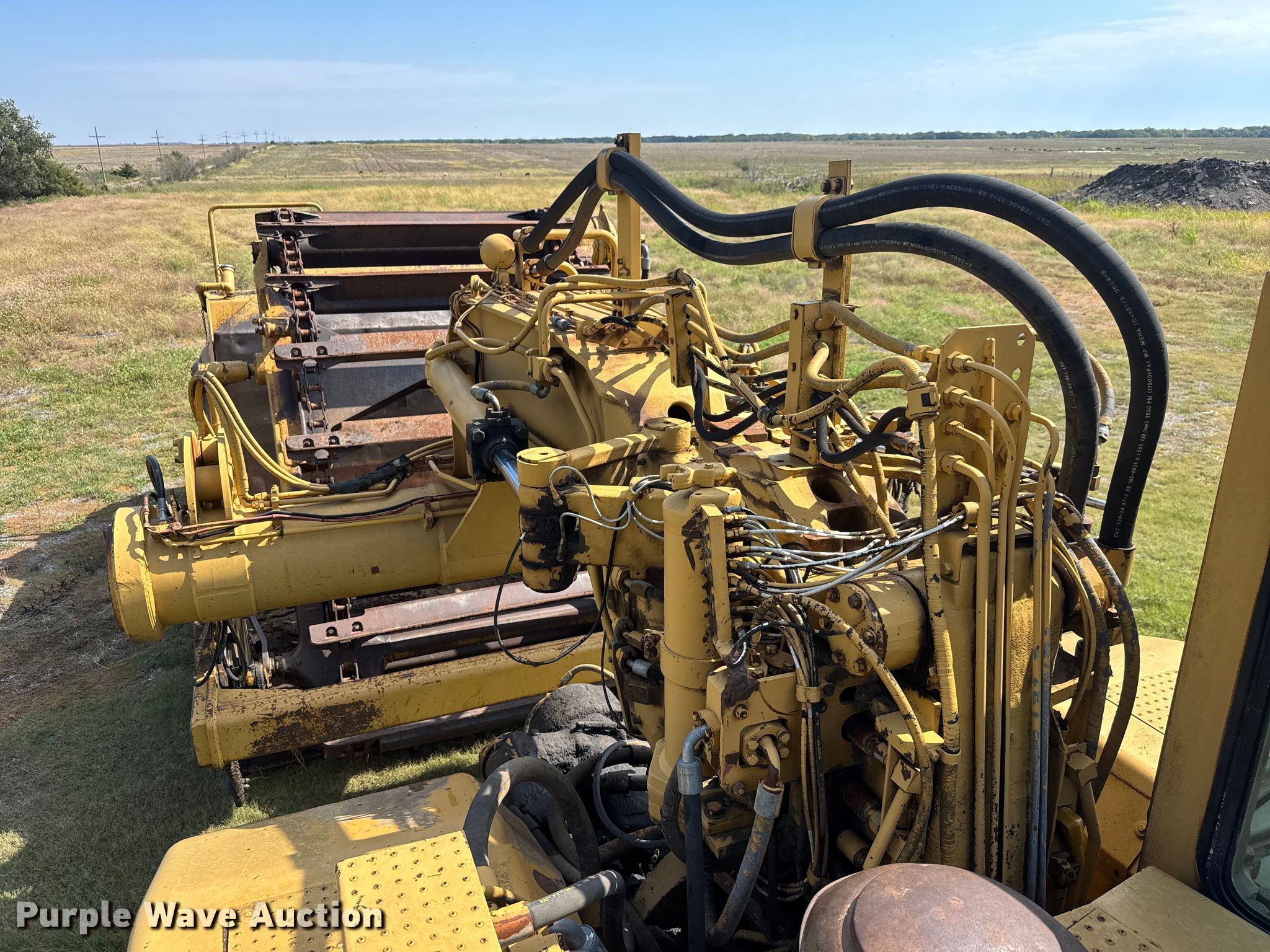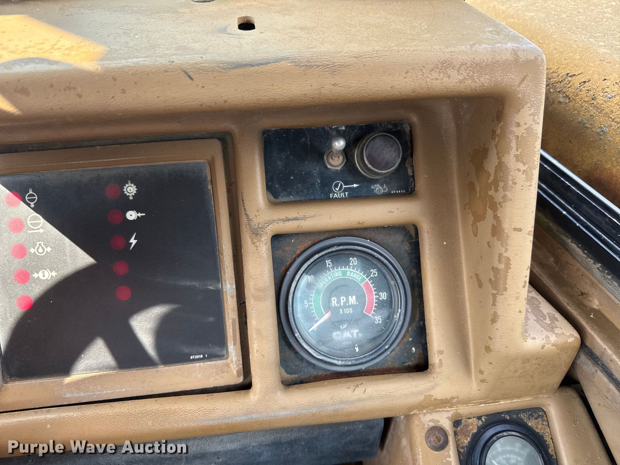 1987 Caterpillar 623E elevating scraper. Hours: 10,503 on meter, Serial: 6CB00673. Engine Caterpillar 3406, Cylinders: 6, Fuel type: Diesel. Transmission Powershift, 8F - 1R. Chassis Brakes: Air. Operators station Enclosed cab, AC, Heat. Features Cushion hitch, Elevator reverse, Hydraulic lift, Scraper controls: Lever controls No. of controls: 3, Rear push block, Hitch: Rear. Tires Front: 29.5R35. Notes Door missing, Glass cracked, Unknown operating condition of AC. Harder Gravel & Dirt Svc. El Dorado, KS 67042