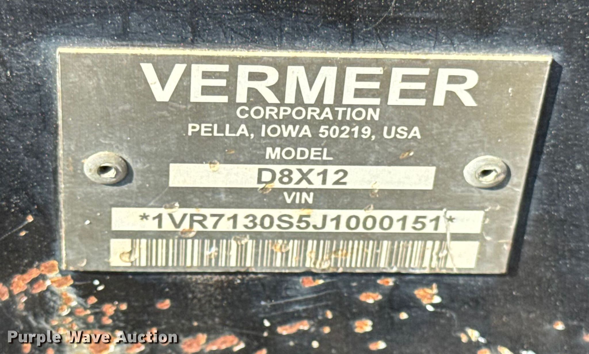 Purple Wave is selling a used Directional Boring Unit in Illinois. This item is a 2018 Vermeer D8x12 directional boring unit with the following: Hours: 1,741 on meter, Serial: 1VR7130S5J1000151