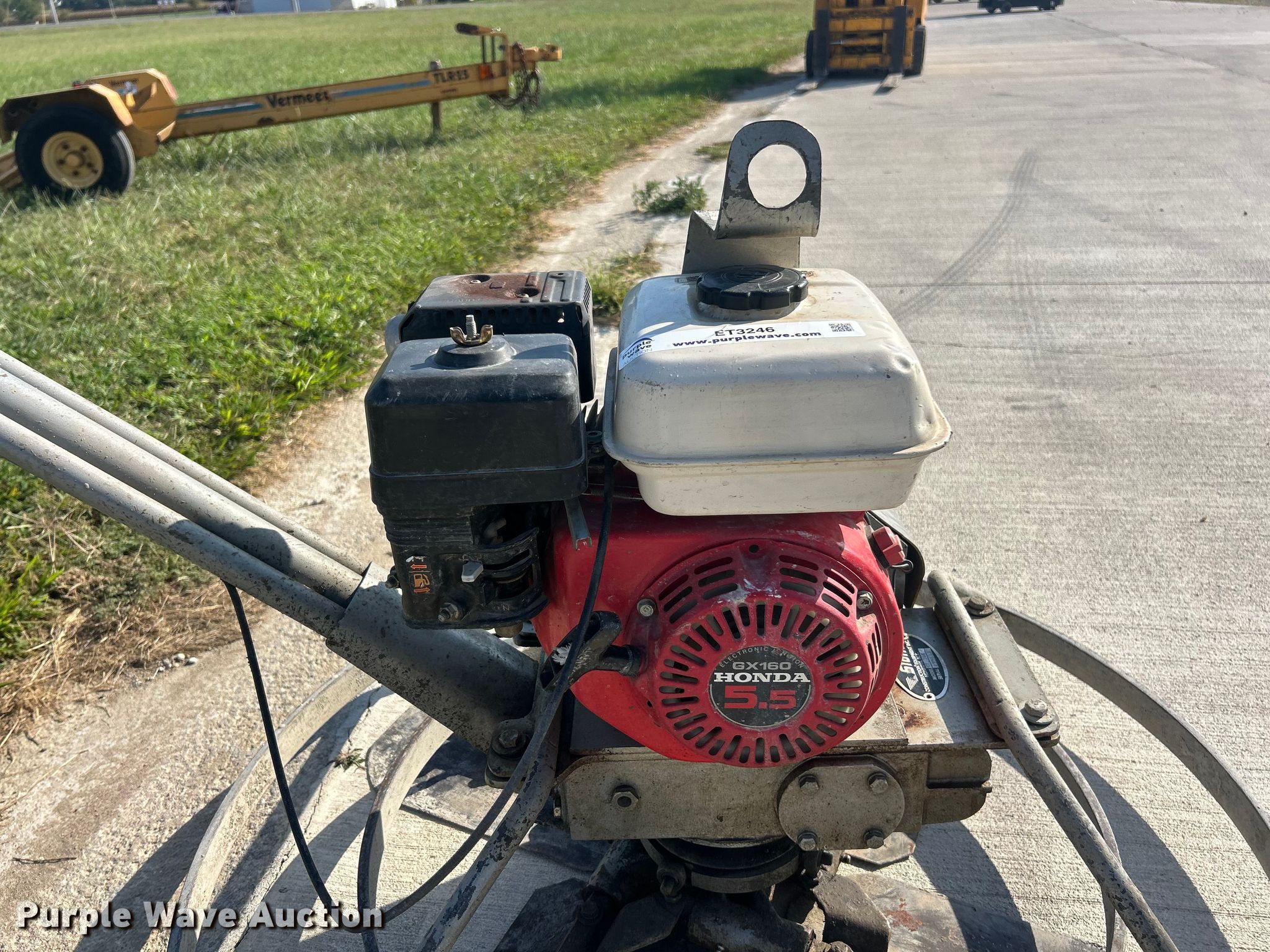 Stone CF364 power trowel. Serial: 4396167. Engine Honda GX160, Cylinders: 1, Fuel type: Gas, HP: 5.5. Features Diameter: 36", Blade length: 14". Vandalia, IL 62471