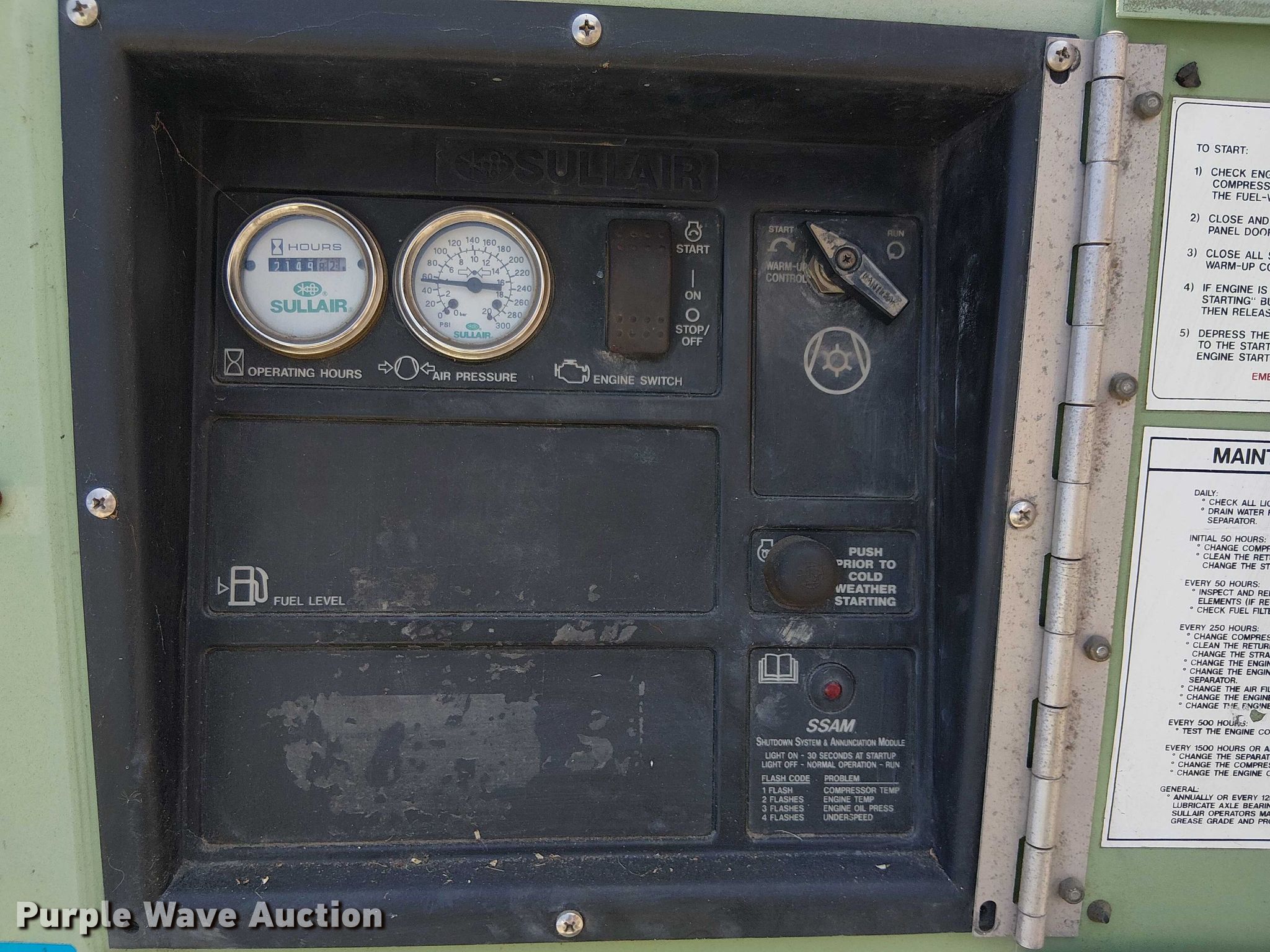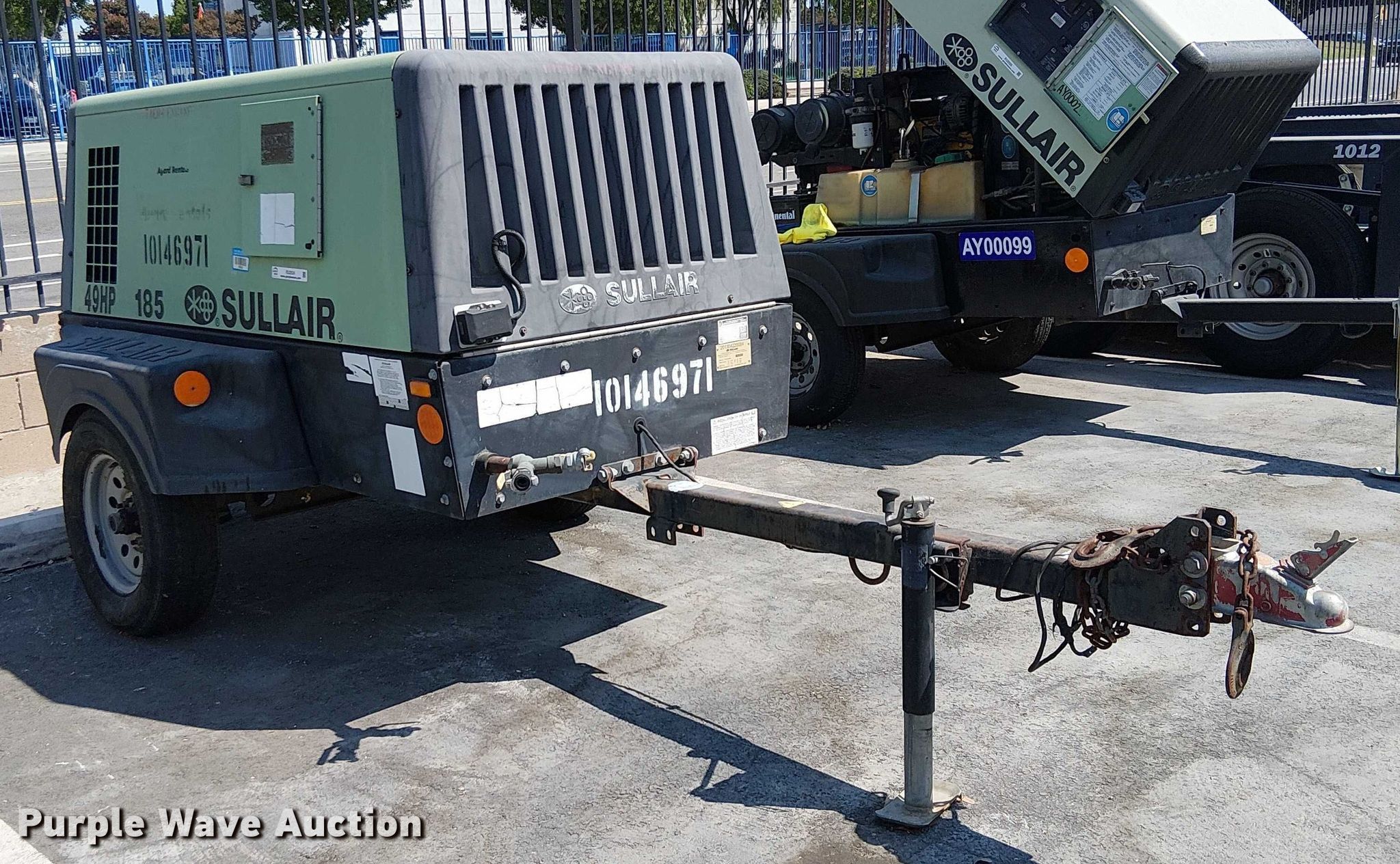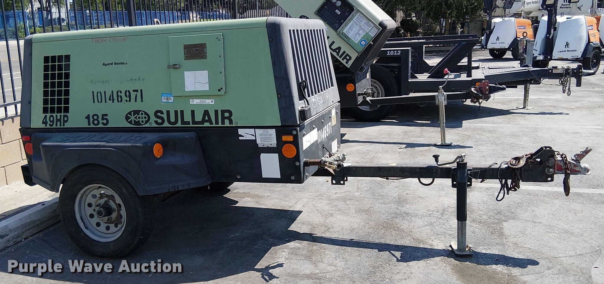 Purple Wave is selling a used Air Compressor in California. This item is a 2013 Sullair 49HP185DPQ JDi4 air compressor with the following: Hours: 2,150 on meter, Serial: 201304220084