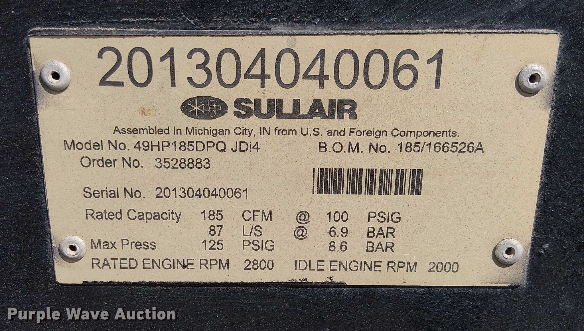 2012 Sullair 49HP185DPQ JDi4 air compressor | Thursday November 06 Construction Equipment Auction