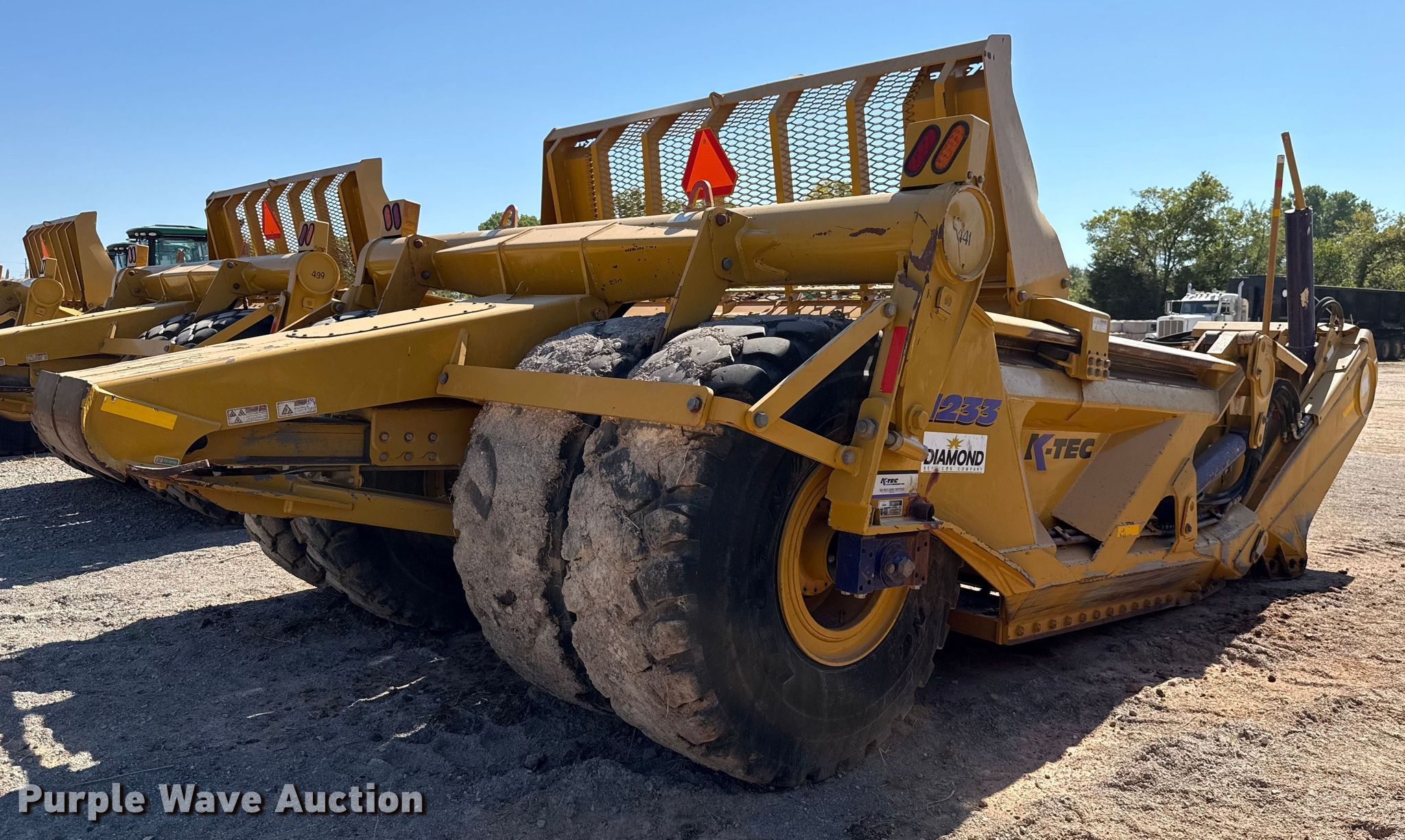 K-Tec 1233 scraper. Features. Bowl capacity: 33 cu.yd., Cushion hitch, Hydraulic lift, Rear push block, Hitch: Scraper. Tires Size: 26 5R25, Brand: Linglong. Diamond Services Co. Oklahoma City, OK 73127