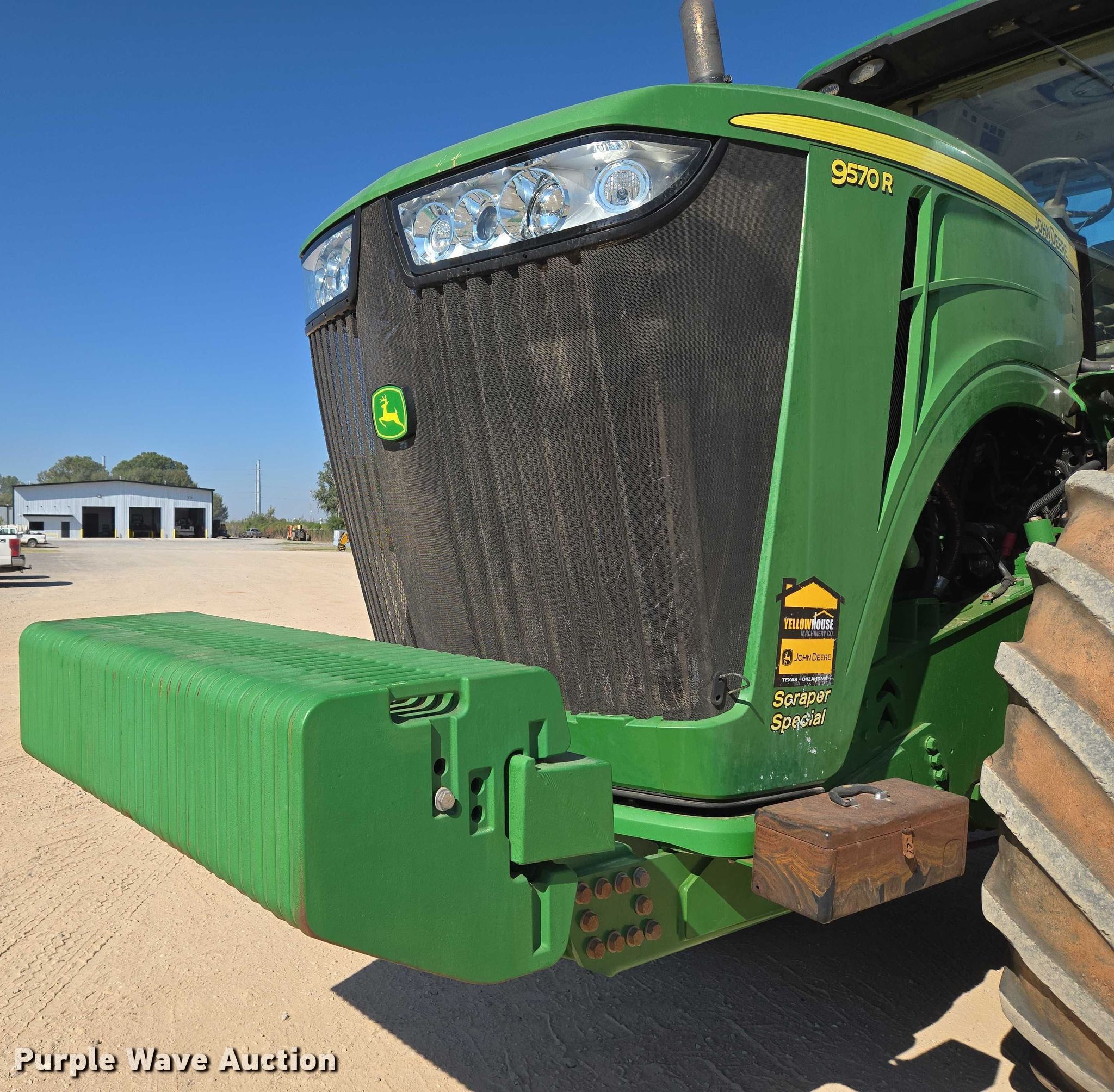 Purple Wave is selling a used Articulated 4-Wheel Drive Tractor in Oklahoma. This item is a 2018 John Deere 9570R Scraper Special 4WD tractor with the following: Hours: 5,492 on meter, Serial: 1RW9570RHJE060427