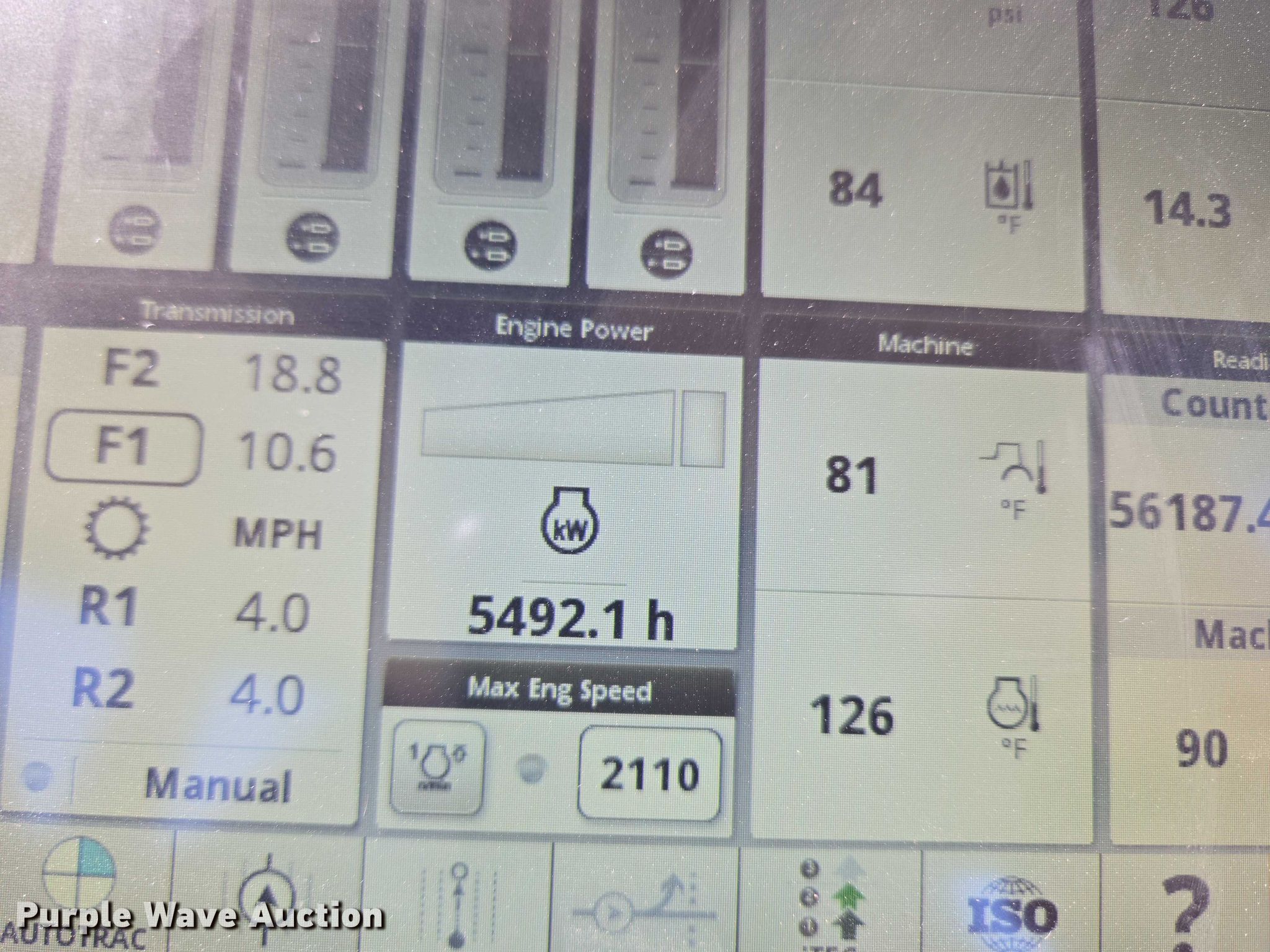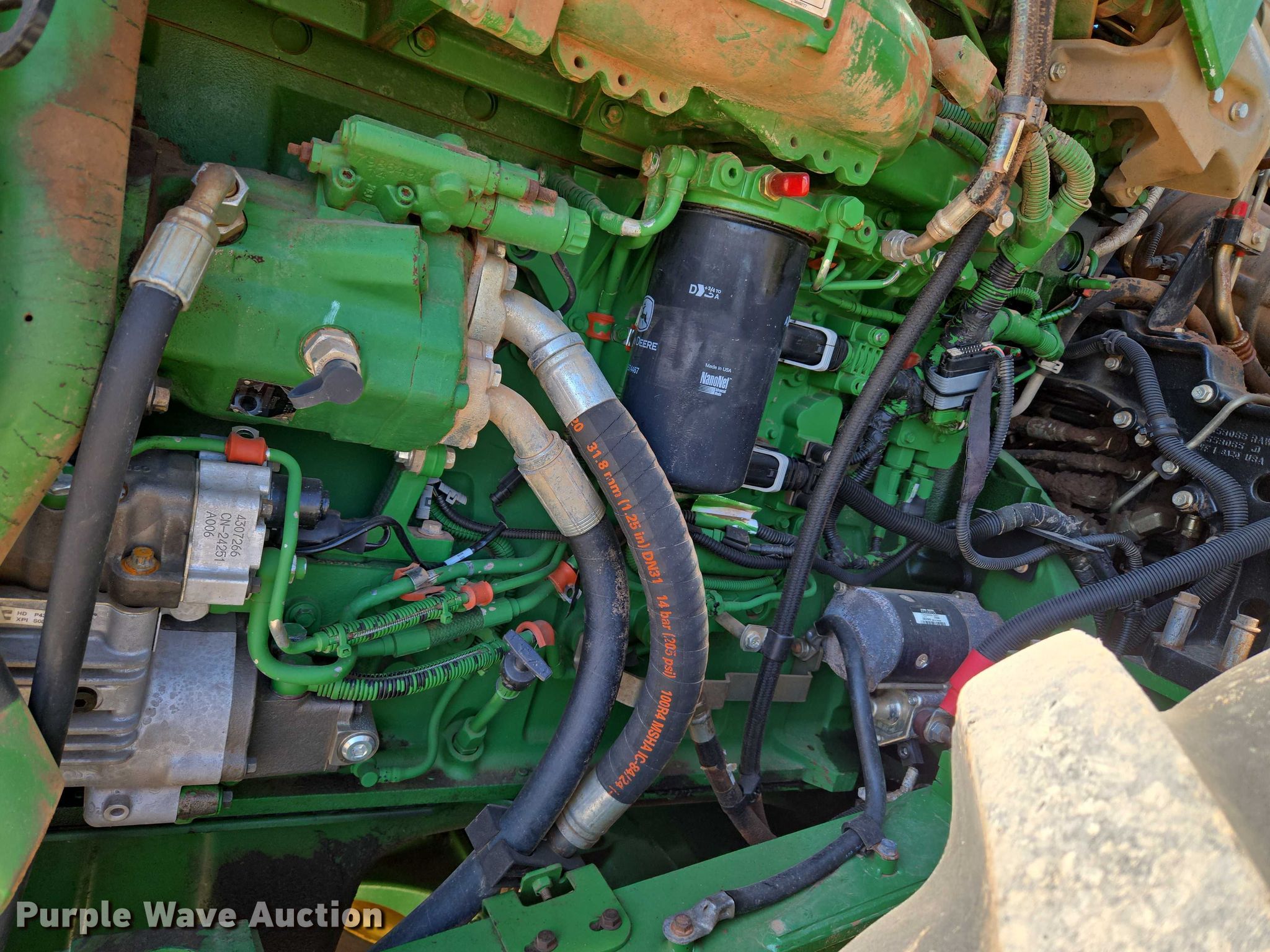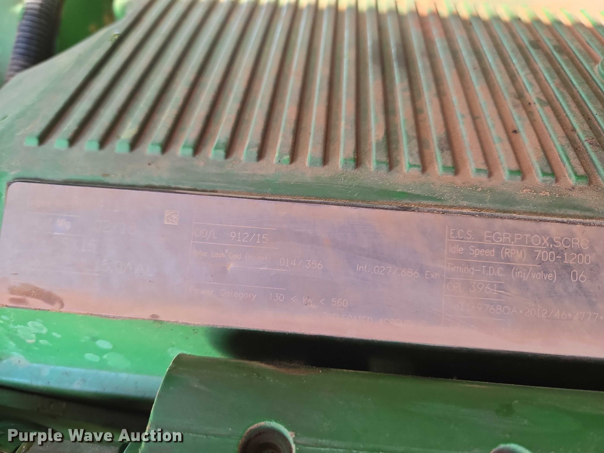 2018 John Deere 9570R Scraper Special 4WD tractor. Hours: 5,492 on meter, Serial: 1RW9570RHJE060427. Engine Cummins QSX15, Serial: 80041107, Displacement: 15.0L, Cylinders: 6, Fuel type: Diesel. Transmission Powershift, 18F - 6R, Differential lock. Operators station AC, Heat, Display John Deere. Features Seven pin outlet, ISOBUS outlet, Hydraulic remote sets, Suitcase weights: 36. Tires Size: 710/70R42, Wheel weights: 8, Duals, Front duals. Notes Glass cracked. Diamond Services Co. Oklahoma City, OK 73127