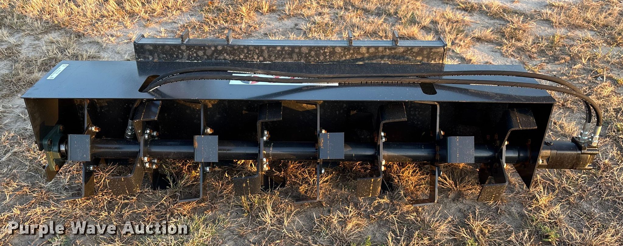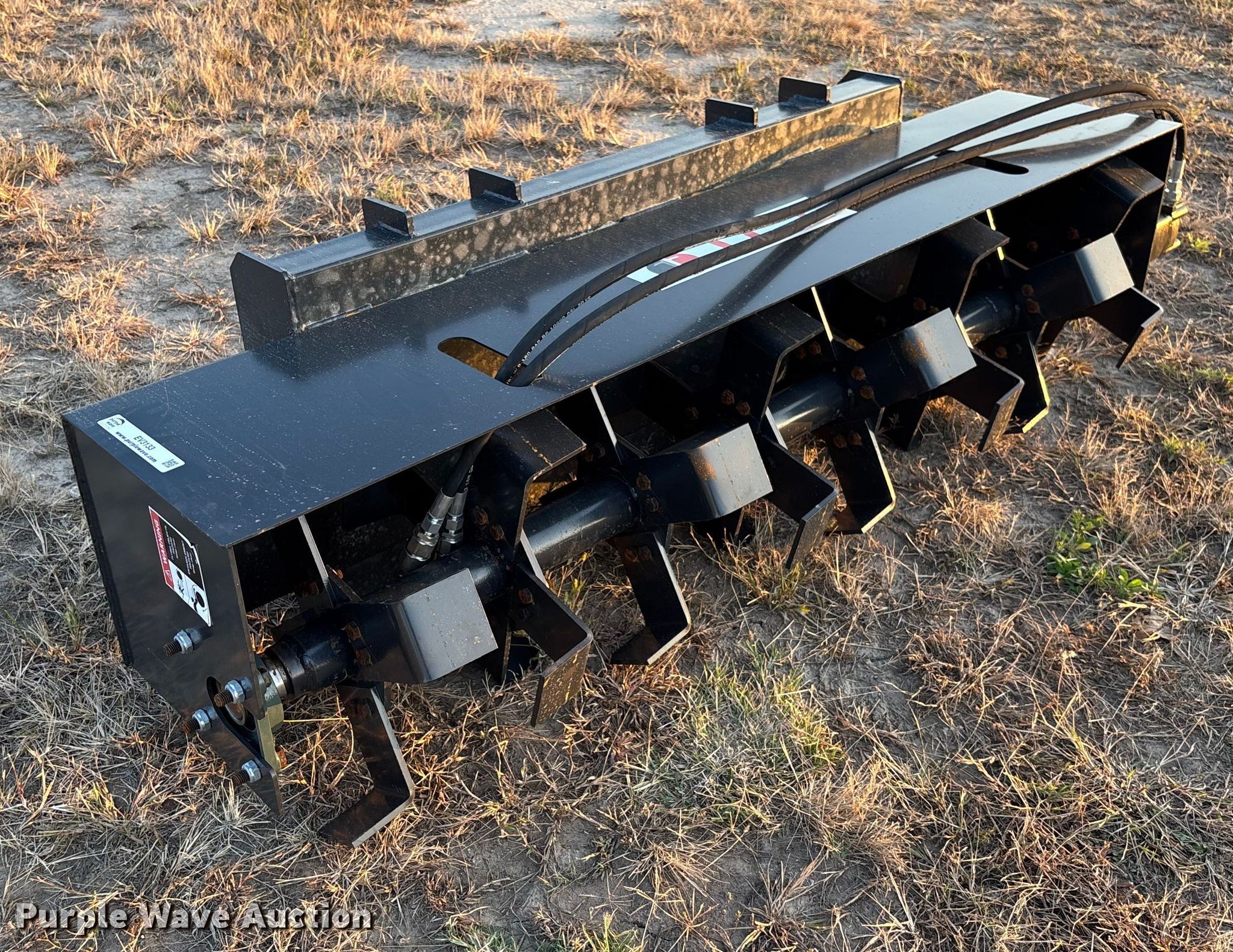 Purple Wave is selling a used Skid Steer Attach. in Kansas. This item is a JCT skid steer tiller with the following: Width: 72"